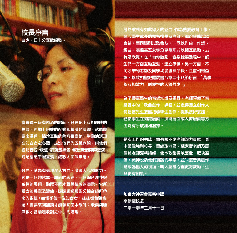 主唱:畢綺玲老師 作曲:畢綺玲老師 填詞:李德慰老師 編曲:黃偉強校長