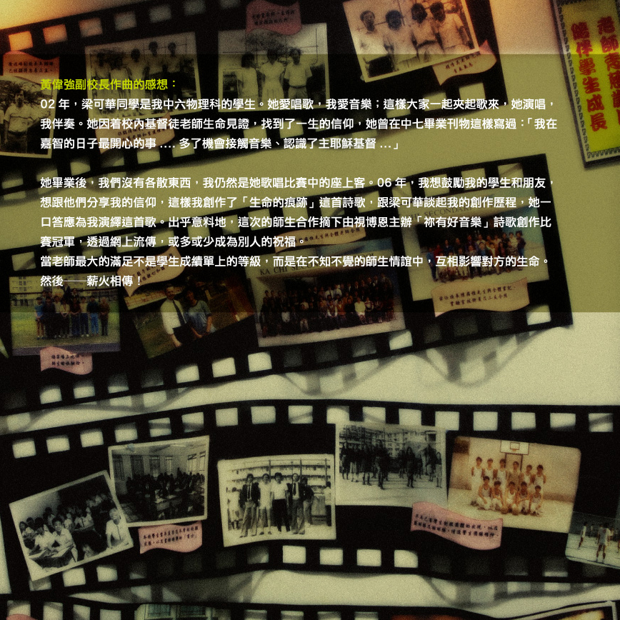 主唱:梁可華同學 作曲:黃偉強校長 填詞:楊秀華小姐 編曲:何建基先生