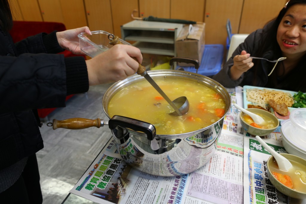 多謝一班家長在嚴冬送上兩大鍋熱騰騰的木瓜雪耳豬肉湯,他們除了放入靚湯材料外,更投入大量時間及愛心,才熬成這鍋香噴噴的靚湯,再次感謝他們對本校上下同工的關心及愛護。