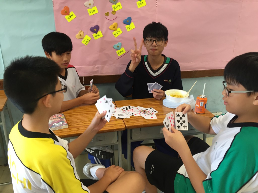 在老師及輔導領袖生帶領下,於午間時段透過多元化的活動,讓新生融入「嘉」中,適應中學的新生活。簡單的紙牌遊戲,可以訓練學生對數字的敏感度,加強學生在學科上的技能,營造愉快的學習環境。