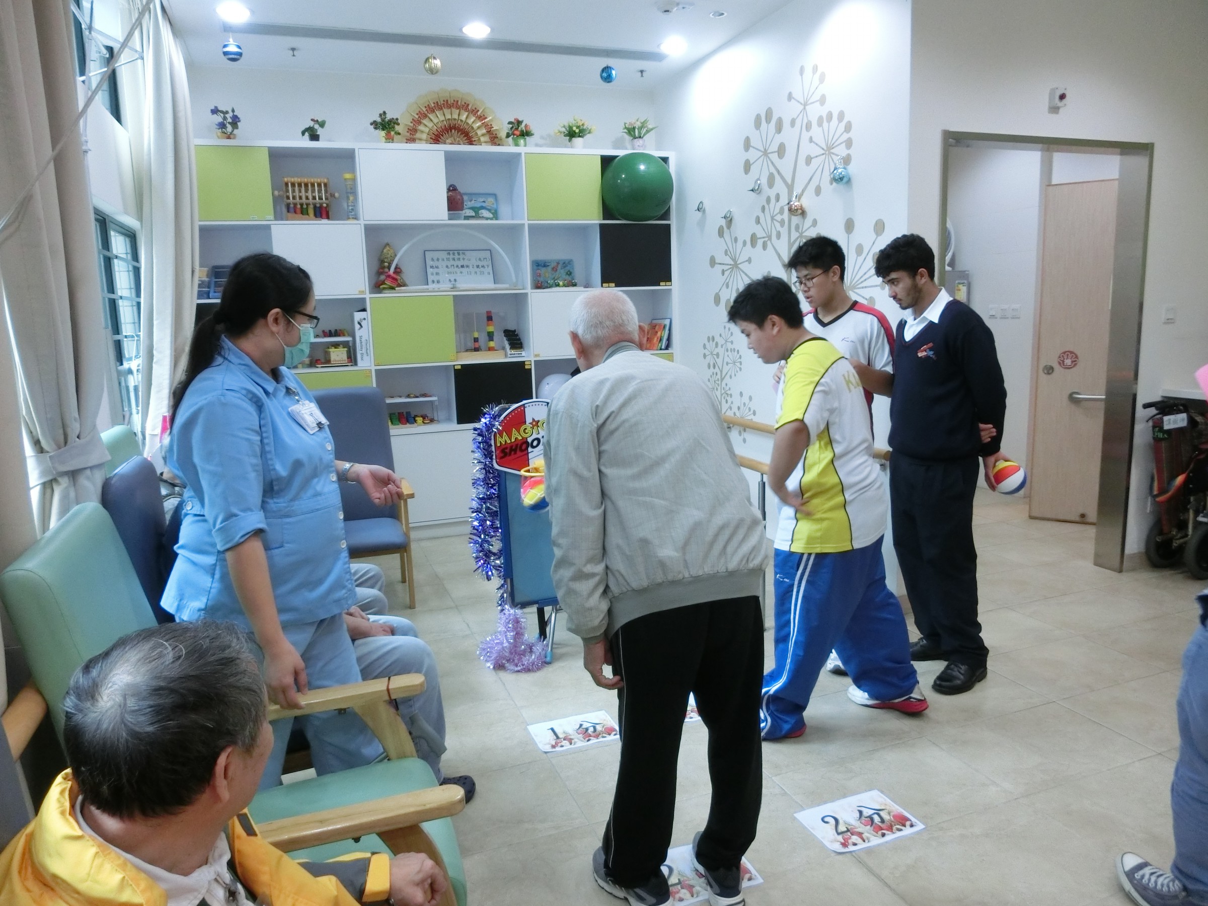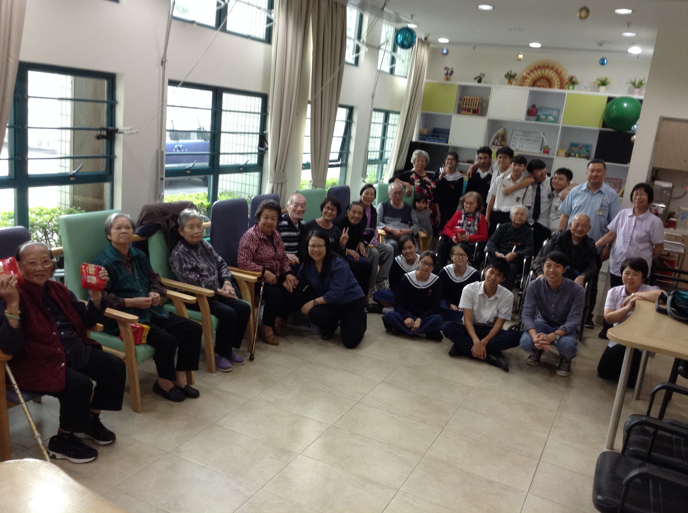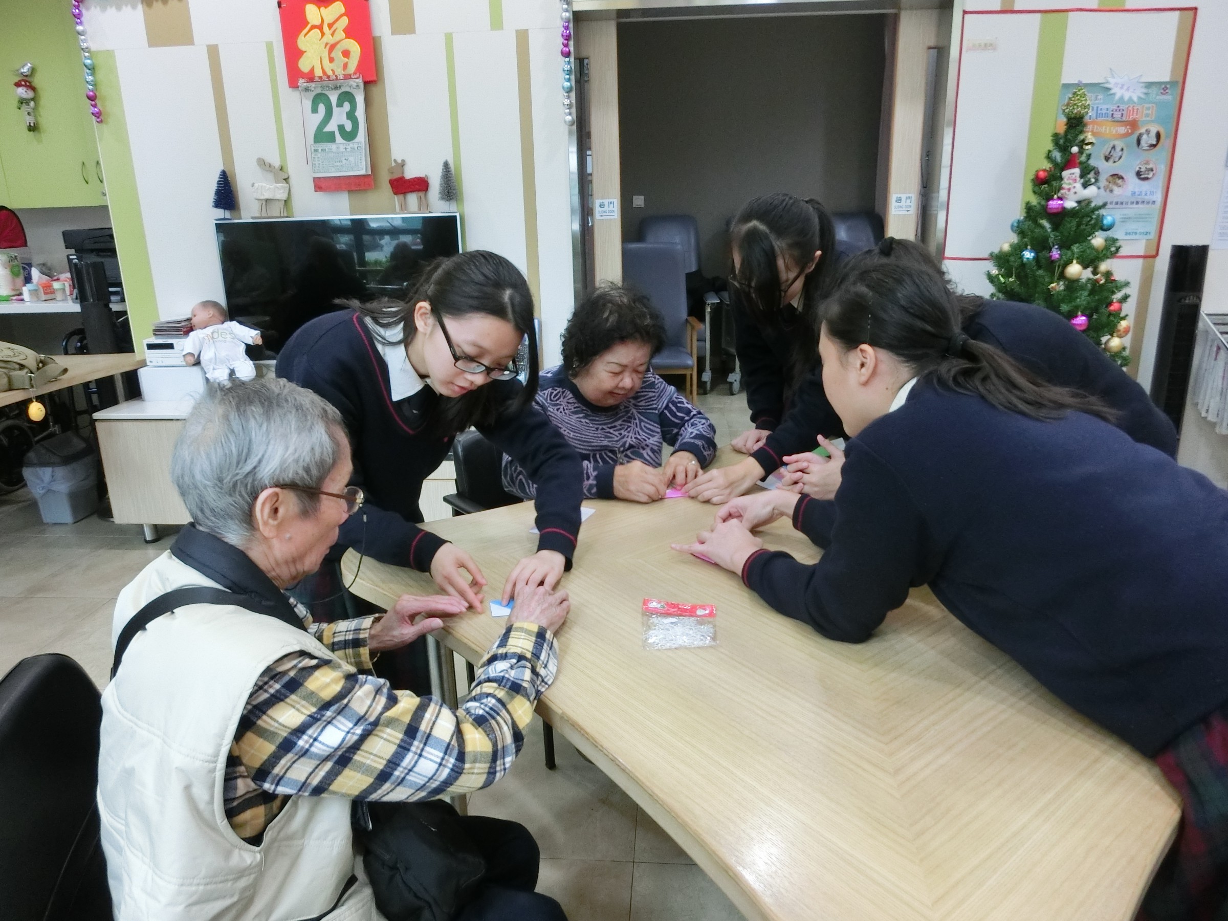 在12月23日,學生們背上結他,手携禮物和遊戲工具,帶著笑容和愛心到達「博愛醫院長者日間護理中心」。一開始,長者們就被學生的歌聲打動了,同學們亦被他們投入玩樂的氣氛而感動呢!