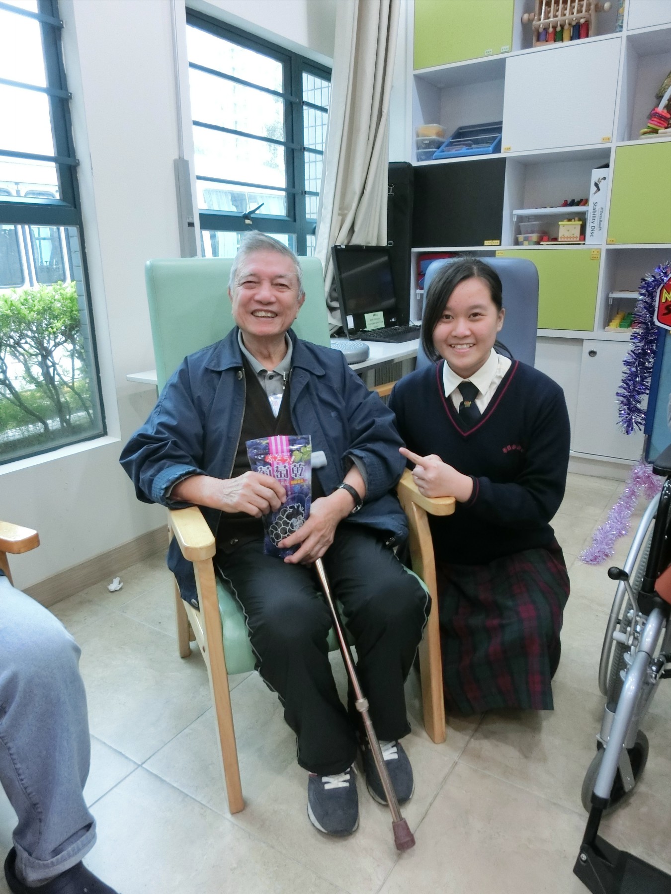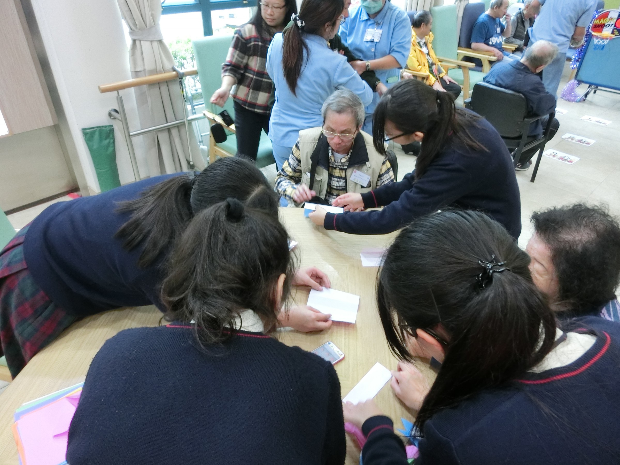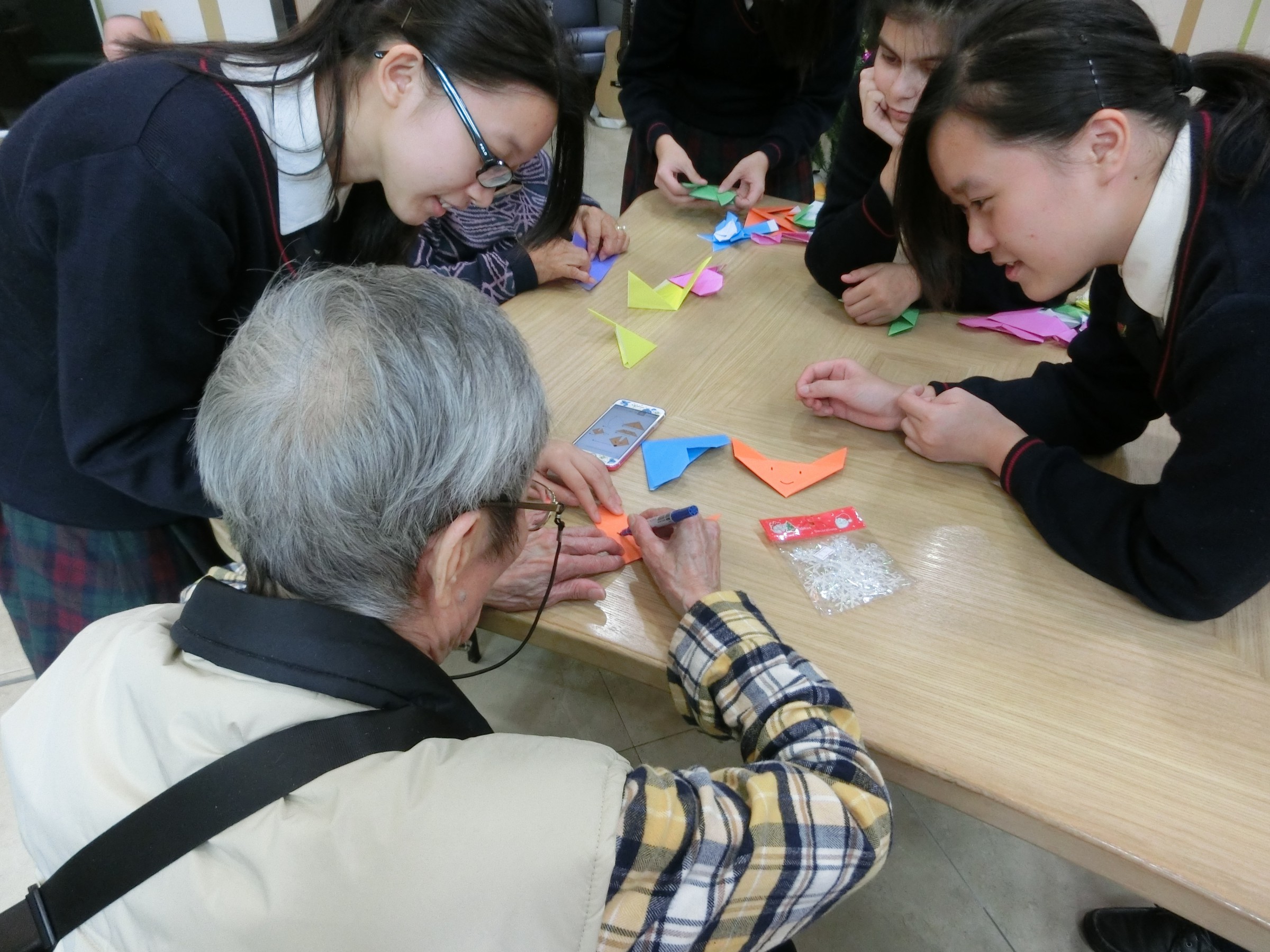 在12月23日,學生們背上結他,手携禮物和遊戲工具,帶著笑容和愛心到達「博愛醫院長者日間護理中心」。一開始,長者們就被學生的歌聲打動了,同學們亦被他們投入玩樂的氣氛而感動呢!