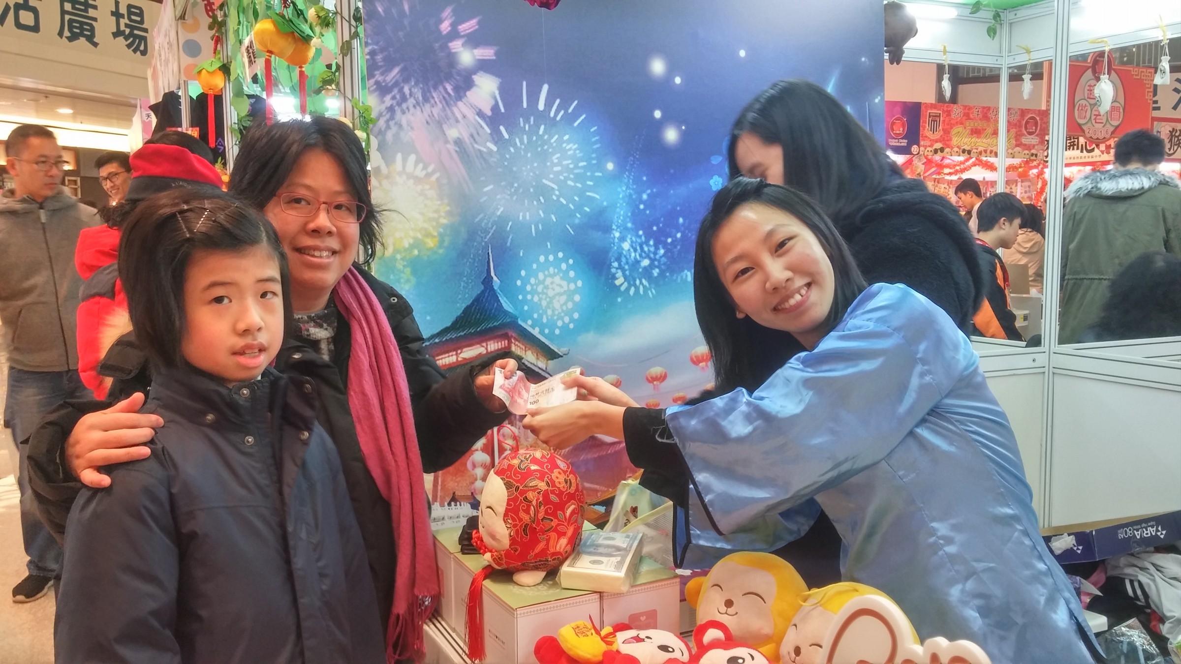 而梁嘉麗老師和中四級企業、會計與財務概論選修科同學亦參予擺賣年宵攤位,一嘗做老闆的滋味,本校更派出舞蹈隊作現場表演,給多商場遊人觀賞。現場有四十一間中學參加擺攤,場面盛大。在展銷期間校長、副校長、多位老師、家長、親友及本校同學親臨到場購買貨品,以示支持,為同學們打氣。是次活動能令學生藉此發展潛能,鍛鍊自信心及口才,學習營商之道。