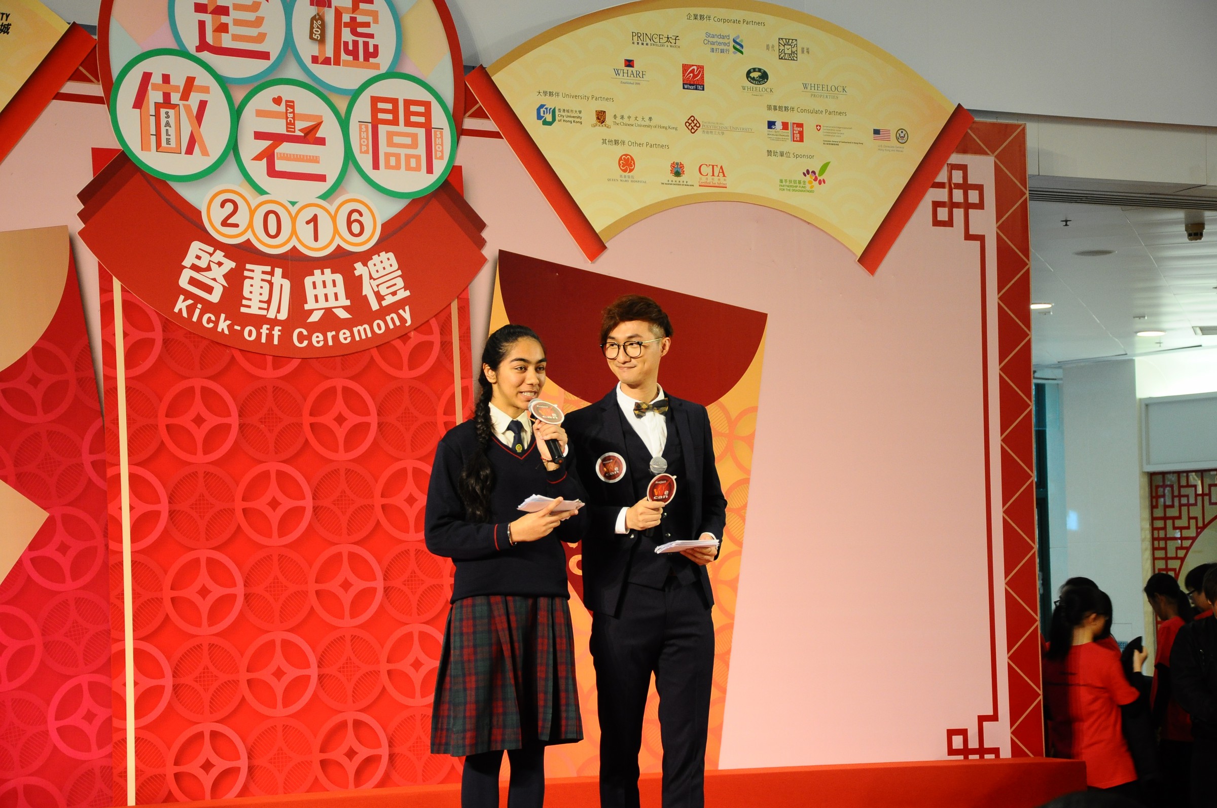 Project We Can學校起動計劃的聯校「趁墟做老闆」年宵攤位活動正式舉行,一連三日由22/1至24/1假荷里活廣場舉行。本校中五級古可永擔任司儀,與有線電視主播嚴崇天先生共同主持開幕典禮。當天出席人士包括多間公司負責人,如九龍倉、海港城、英皇珠寶、連卡弗及多間領事館等,而超過四十間學校校長亦有出席開幕禮。