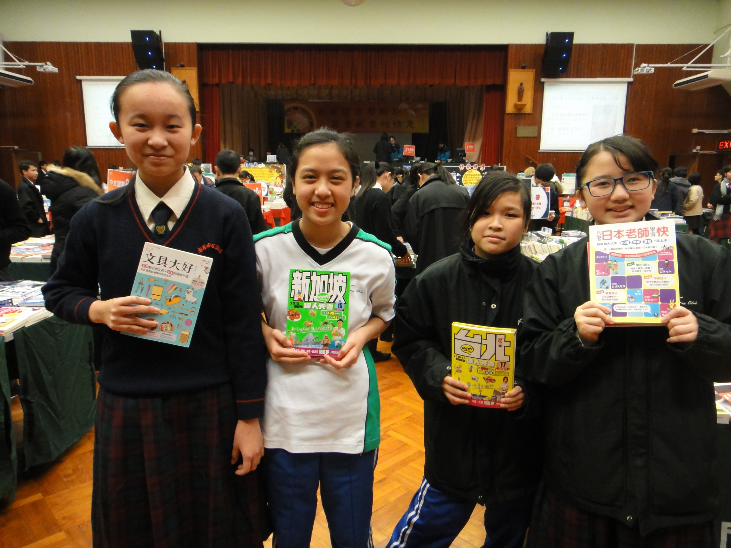 當抵達友校禮堂門口,人潮湧湧,大家萬分雀躍,期待儘快進入書展會場,尋覓心水好書,當老師講完集合時間,大家瞬間四散,果然書展內容豐富、禮堂一邊正進行工作坊,同學擔任小導師教授製作立體小書;另一邊,有同學大排長龍,等待用英語向外藉英語老師介紹好書,索取紀念品!不消一會兒,我校的閱讀大使已滿載而歸,把一本本圖書給陳老師結脹後,大家可取回家閱讀至復活節假期後才歸還!這就是對我校閱讀大使的獎賞呢!