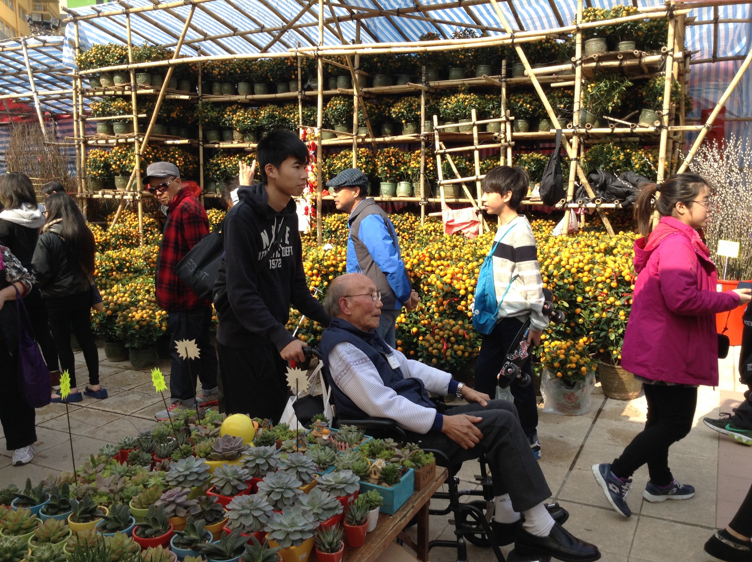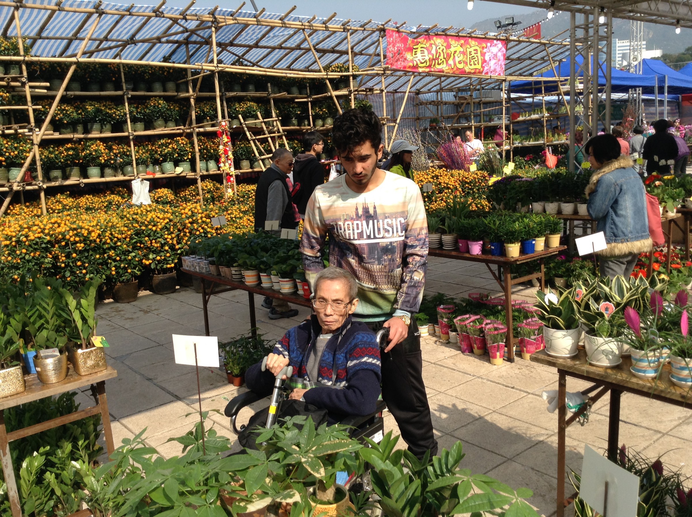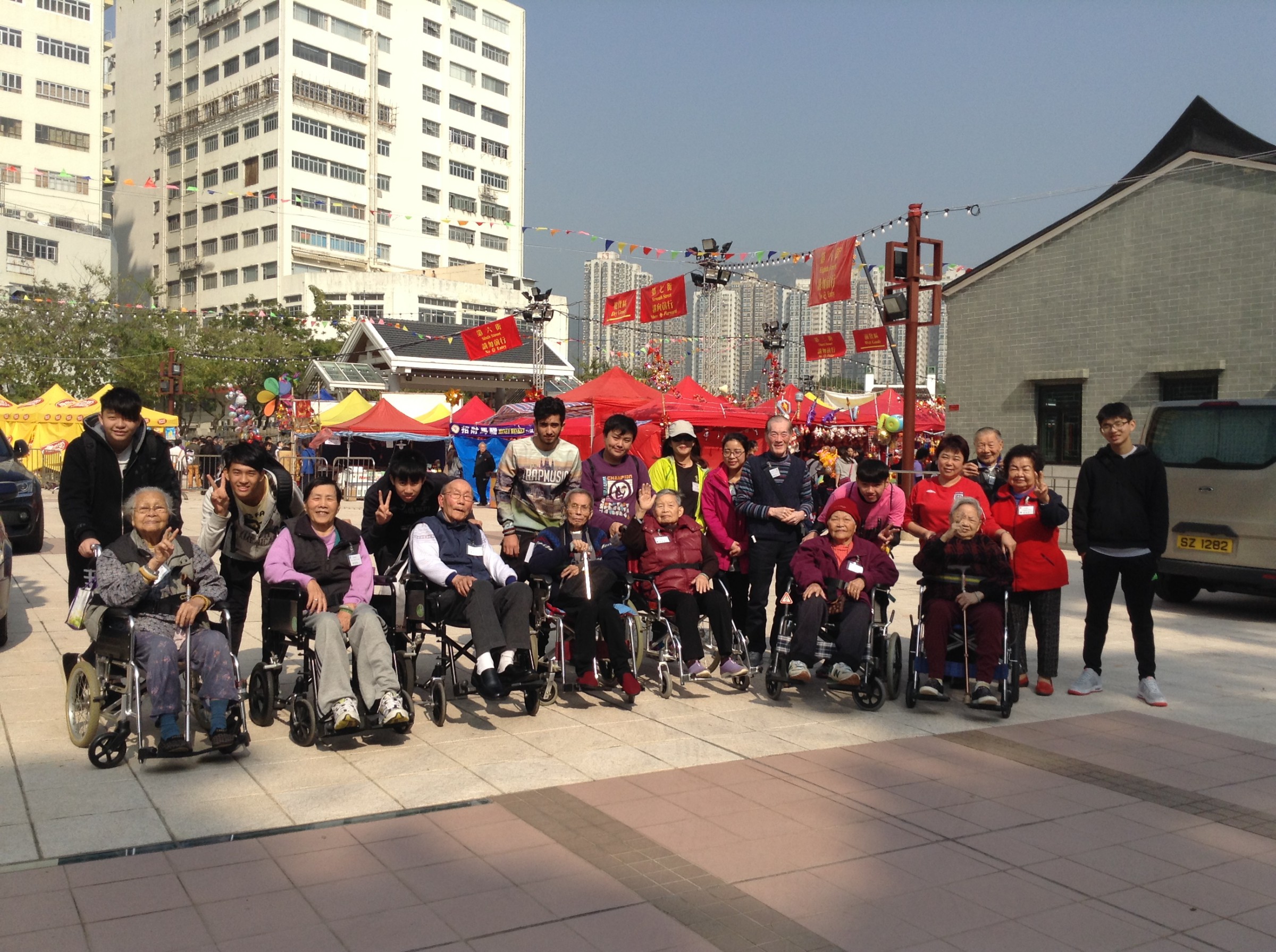 當天下午,7位學生於屯門花市整裝待發,迎接乘坐復康巴士到臨的長者們。大家分配好崗位後,便帶著微笑緩緩地推著長者遊覽整個花市。那天,陽光相當充沛,汗流浹背的學生們不單沒有半句怨言,更懂得主動關心長者會否被猛烈的陽光所傷。嘉智學生們帶給了長者溫暖的陽光和快樂的新春。