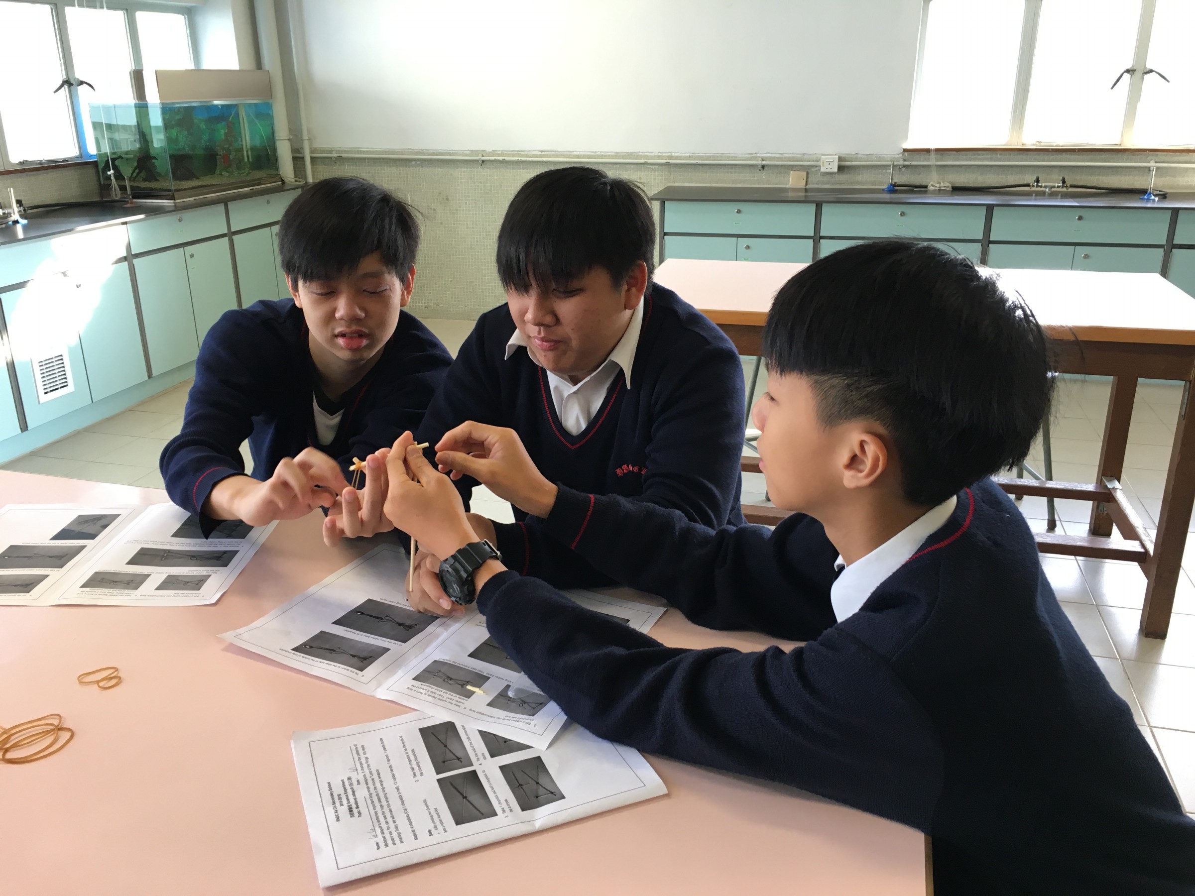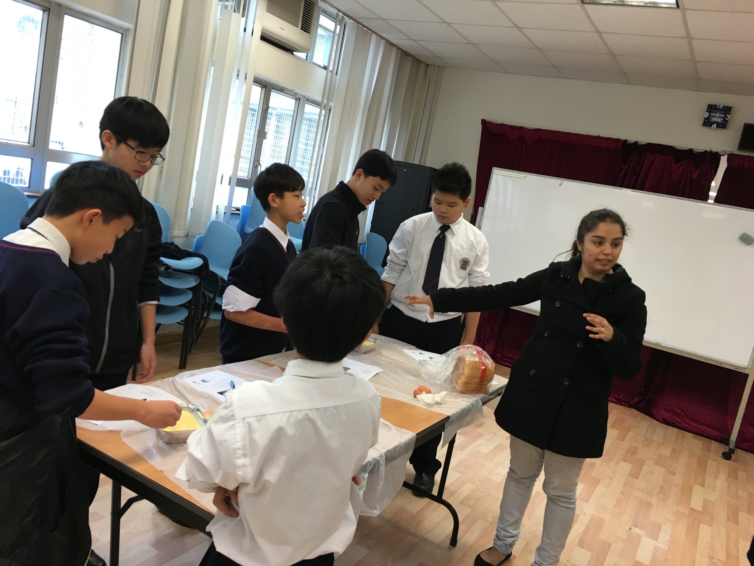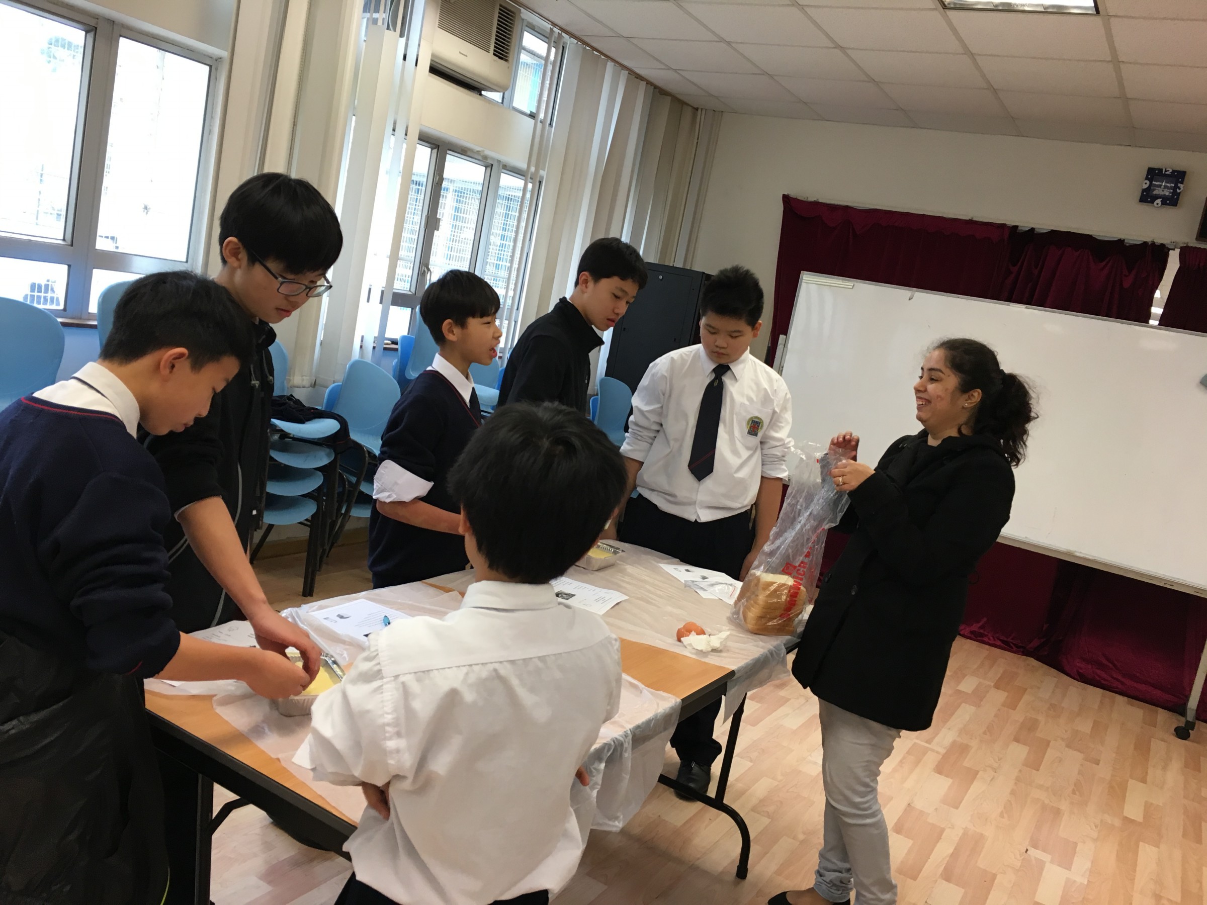 F.1 to F.3 students enjoyed and learnt English through hands-on learning experience, like baking pudding and building medieval catapult, with NET teachers in EEC.