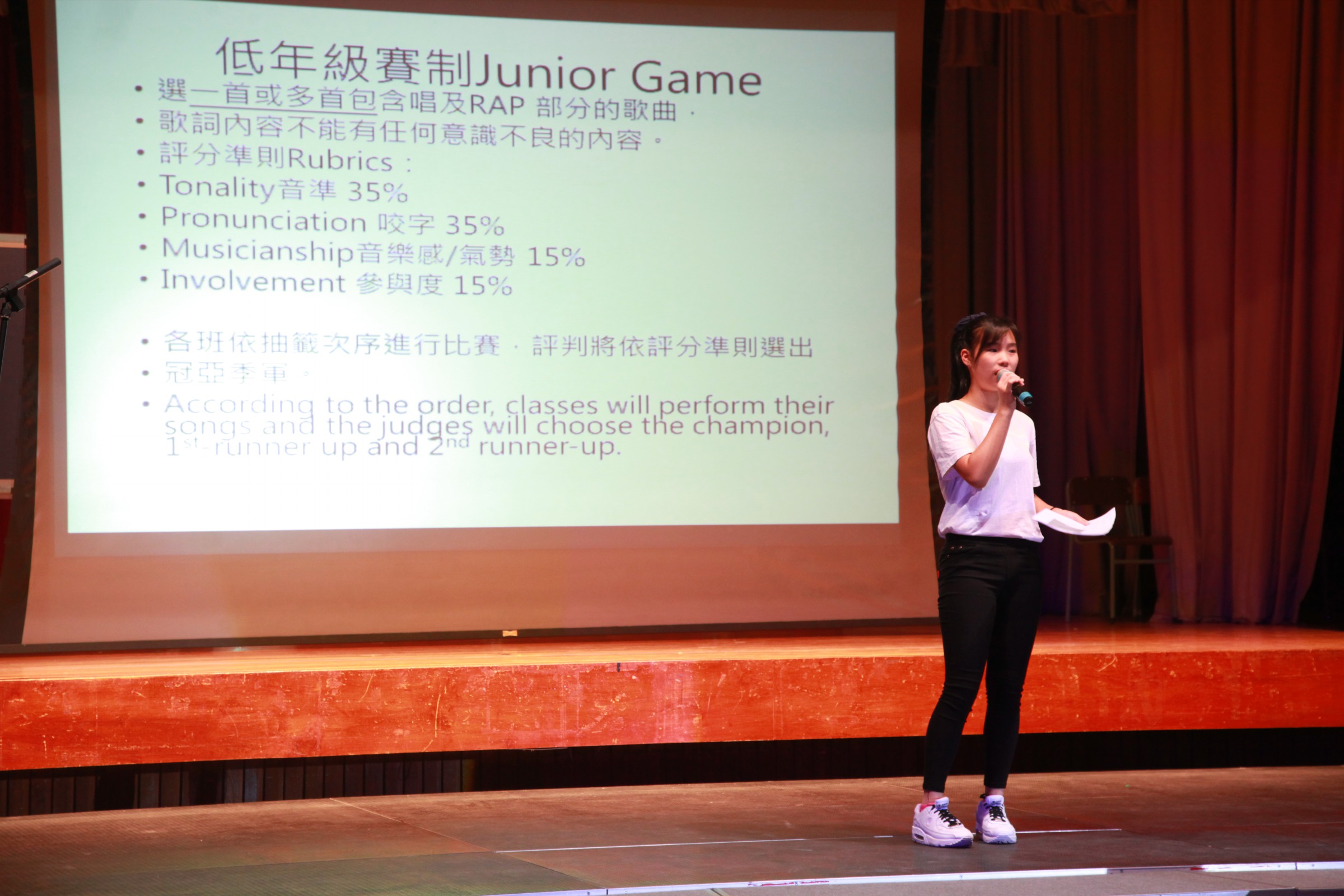 一年一度的嘉之巨星又到了,當天我們的學生紛紛化身成為超級巨聲,使出渾身解數,在台上勁歌熱舞,氣氛高漲熱烈,十分精彩。賽制分為初級組和高級組兩個組別,低年班必須要有RAP的元素,高年班則要有指定歌曲串連。通過是次比賽,學生表現出團結和多才多藝的表演才能,很值得我們欣賞!