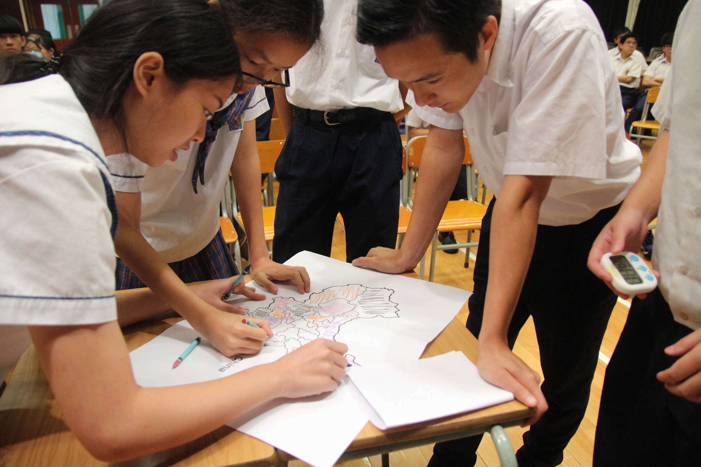 地球有危險呀!本校數學科和通識科的老師合作,舉辦「通數無雙盃」,由李德慰老師和黃智仁老師化身成為美國隊長和IRON MAN,合力保衛地球。通過一些比賽比併,來增加學生對通識和數學的知識,學生反應熱烈投入,最後由勝出的學生戴上美國隊長的面具,打敗怪獸!