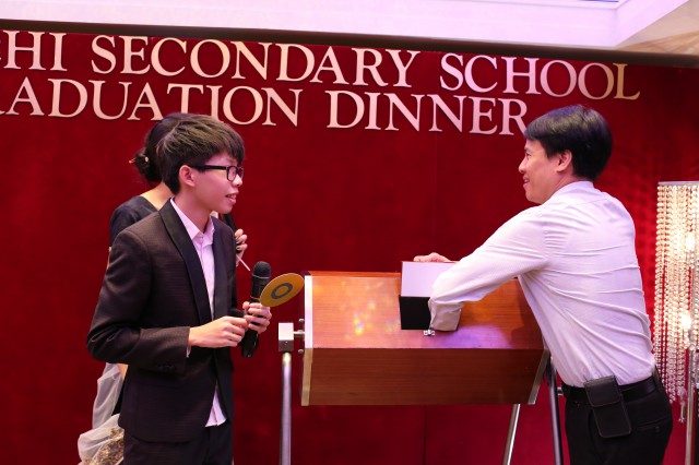 中六畢業同學為答謝老師們六年以來的悉心教導,邀請了全體老師到九龍8度海逸酒店出席畢業聚餐。在畢業聚餐時,畢業同學致辭多謝老師,又送出紀念品給敬愛的老師,並衷心對老師們表達謝意,場面溫馨又感動,師生互動交談溝通,表現出平日課堂以外的可愛、活潑的一面。在活動上,師生打成一片,歡樂滿載。祝願中六畢業生百尺竿頭,更進一步。