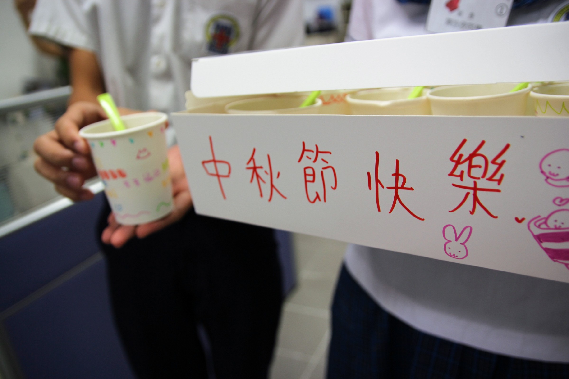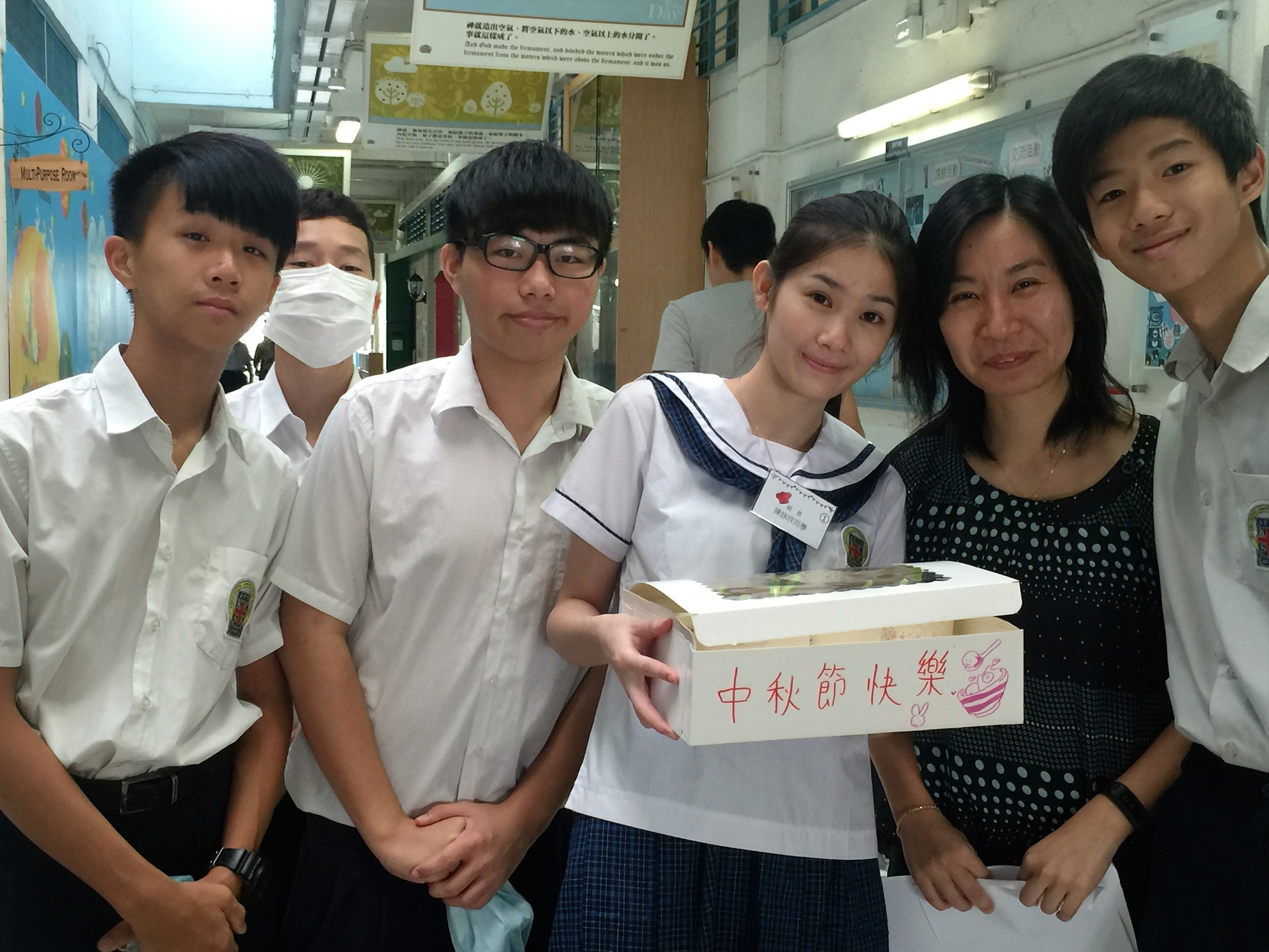 九月十五日中四級級會舉辦愛心湯圓慶團圓活動,全體同學親手製作愛心湯圓,親手派送給任教的老師,及互相送贈,從中令同學明白要懂得感恩付出,關心身邊人,愛心湯圓散落在校園每個角落,溫馨甜蜜。