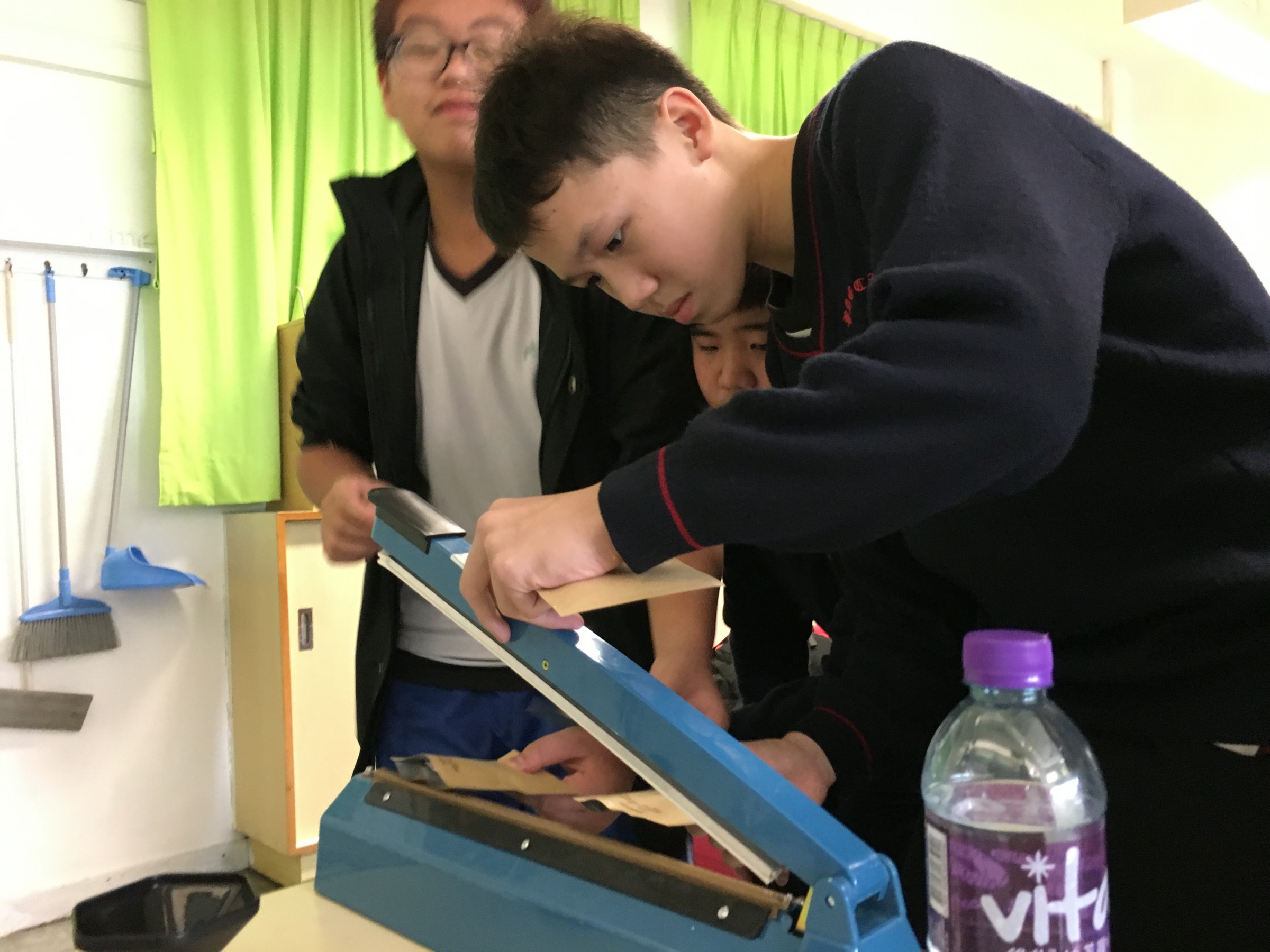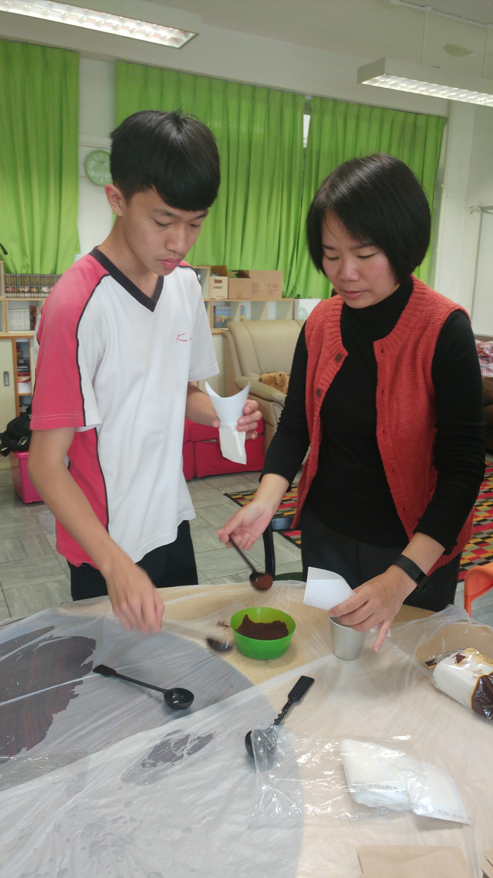 是次午間活動,Cyrus跟社工一同製作旅行裝手沖咖啡包,過程簡單,大家分工合作,希望快點嚐嚐自己的作品,亦有同學將製成品送予老師和朋友,表達那份關懷的心意。