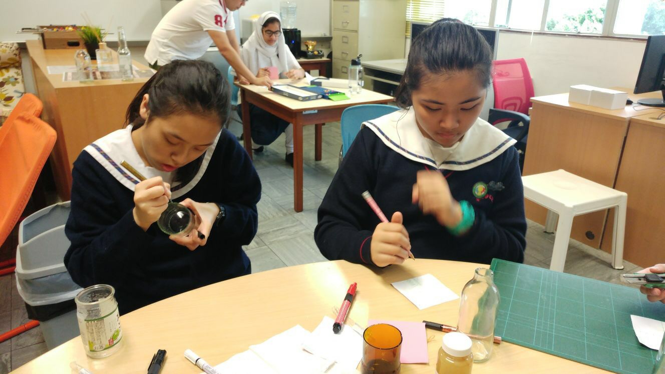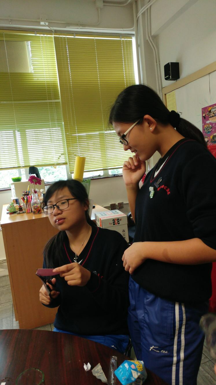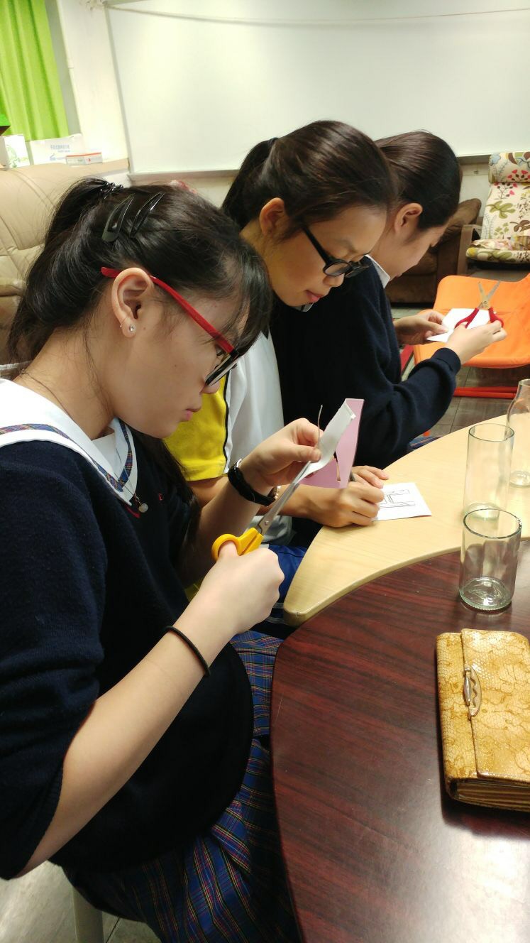 今次午間活動的主題是玻璃磨砂製作。當同學們知道原來自己也可以在玻璃器皿上作磨砂裝飾,他們全都顯得躍躍欲試。第一步先選擇玻璃器皿,然後於顏色膠貼上設計心儀的圖案,接著將圖案挑通,再將膠貼貼上玻璃器皿,為了磨砂效果更好,需要小心翼翼的貼上去,有同學貼得不好,他們互相幫忙,更手把手的教他如何做得更好。最後於玻璃上塗上蝕刻漿,十多分鐘後各同學便有屬於自己的製成品。通過活動,輔導組旨在讓同學保持對周遭事物的興趣,加強生活的動力。