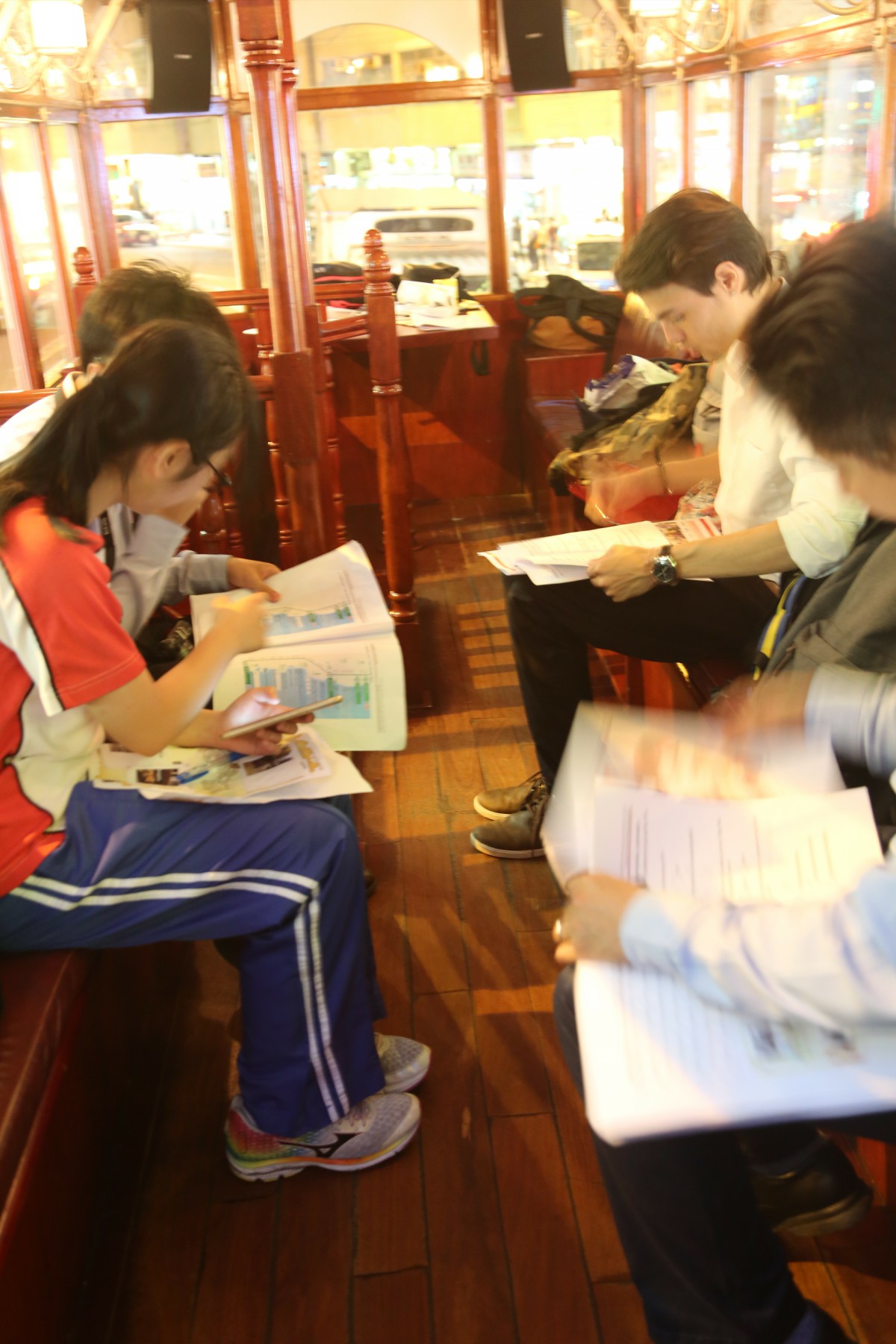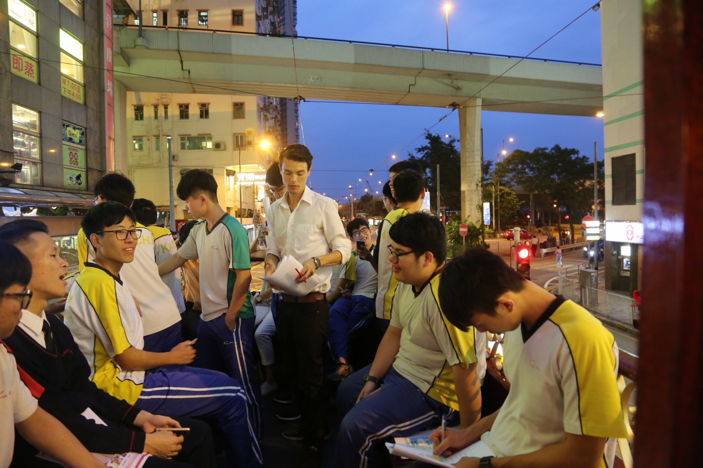 On 19 May, a big group of form 5 students hopped onto a unique 1920s style open-top tram to explore Hong Kong Island between day and night in an action-oriented English tour. The native English teacher in the tour allowed our student participants to savour the impressive street views and at the same time, to know the authentic local tales in English. Students were also asked to join a competition in which they needed to complete a few different tasks to check out the parts of the tram, the tram stations, landmarks as well as the history along the tram route. The journey in this heritage tram is well-organized between historical storytelling and amazing sightseeing of Hong Kong Island. Students found it rewarding to learn the English vocabulary and take the amazing photos.