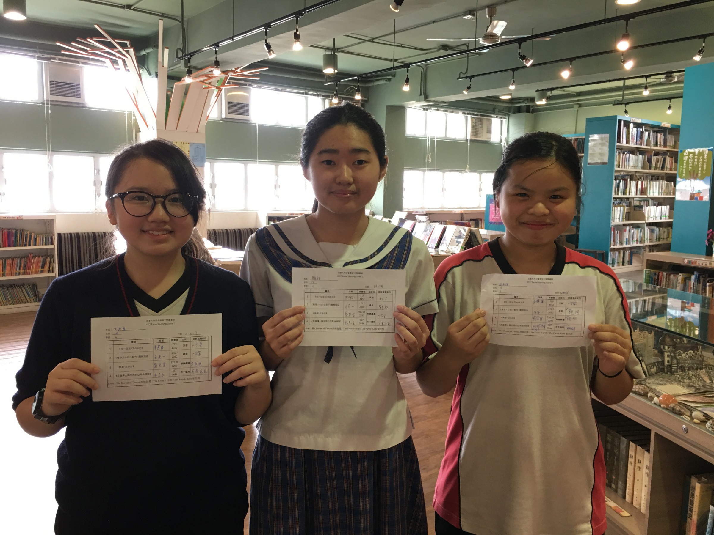 同學按著不同遊戲紙的圖書分類號,就可按圖索驥,尋找指定圖書,更要翻開內頁的寶藏紙,如:荊棘的冠冕、十字架等的圖片,並填上答案!答中有獎,不但可獲KC Passport蓋印,更有抽獎機會,抽中可獲嘉智書券!喜歡閱讀的同學,當然不會放過這次大好機會!