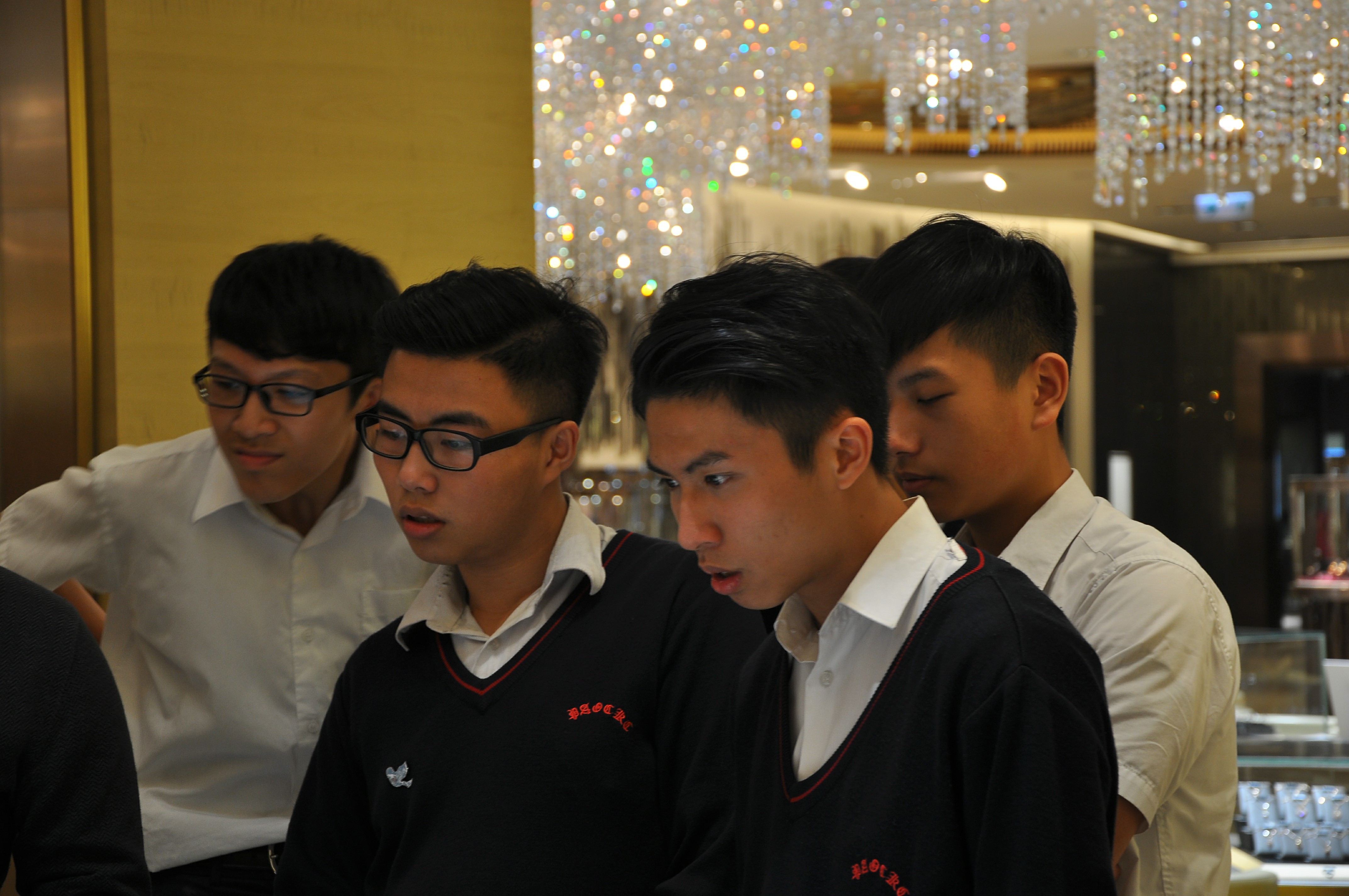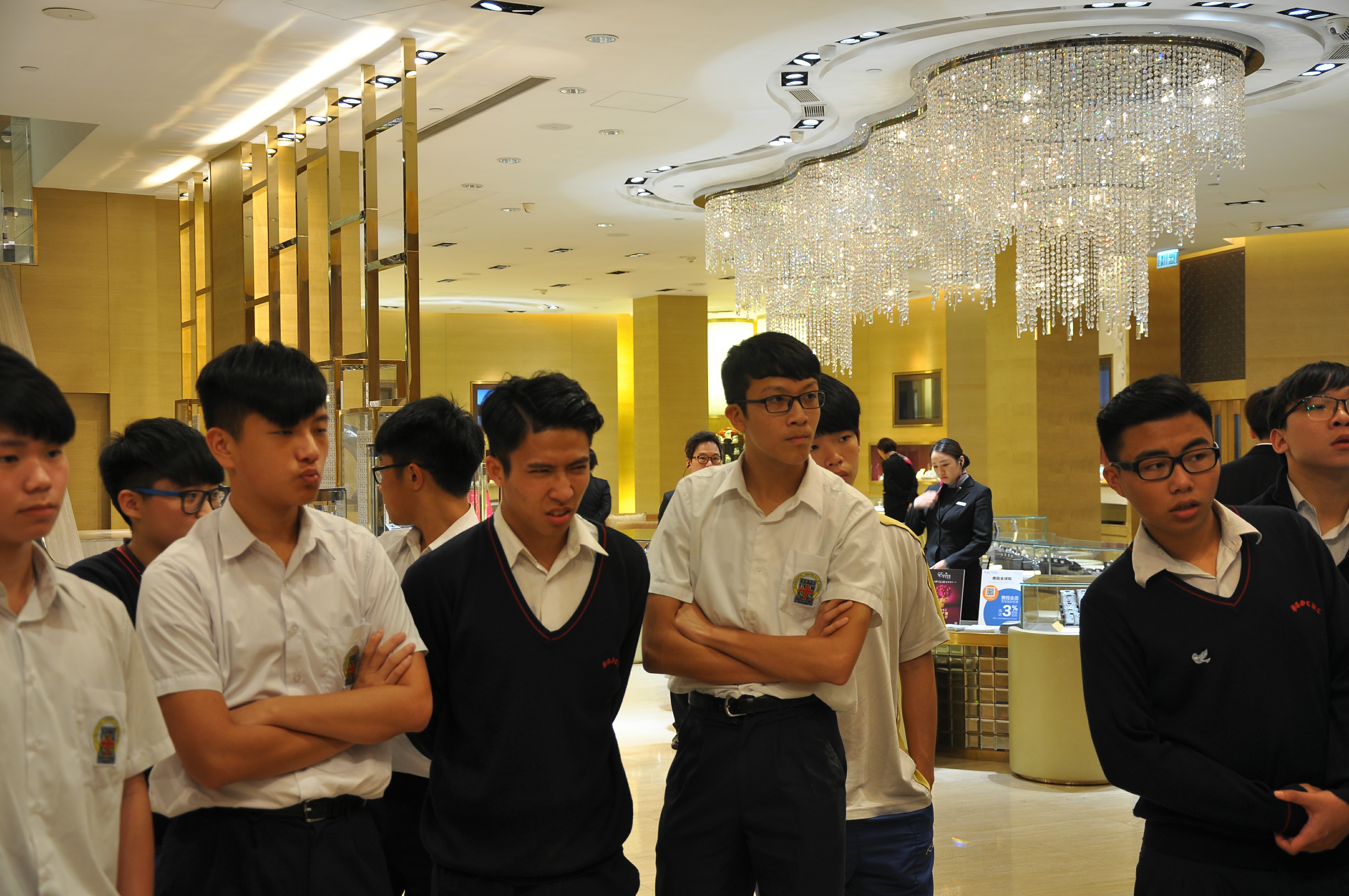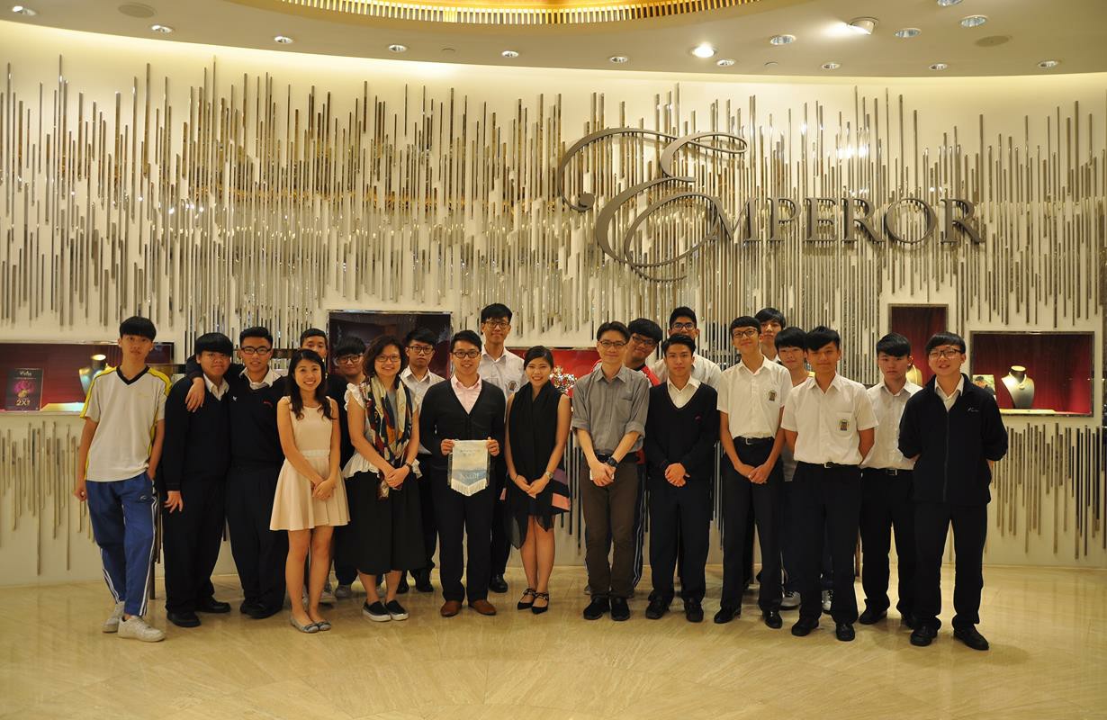 首先安排簡單的講座,為同學介紹英皇集團涉及不同業務,包括娛樂、傳媒、地產、摶彩和珠寶等。及後帶領同學參觀店鋪,店內設有金器、翡翠、鑽飾的各個專門展示區。最後人事部職員講解鐘錶珠寶零售業的前景、入職要求和晉升機會等,希望同學可以積極裝備自己,在未來日子抓緊機遇,走出自己的康莊大道。