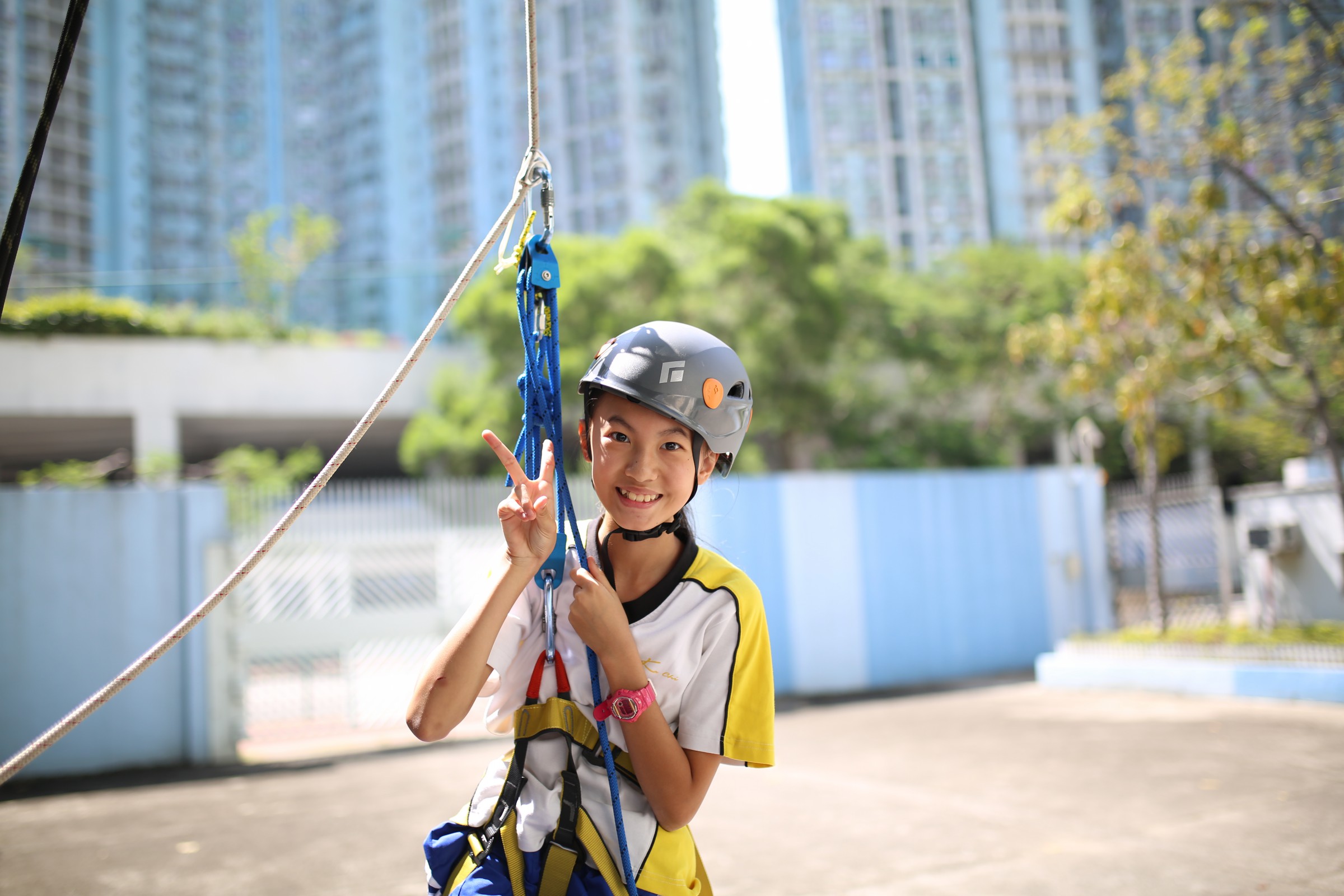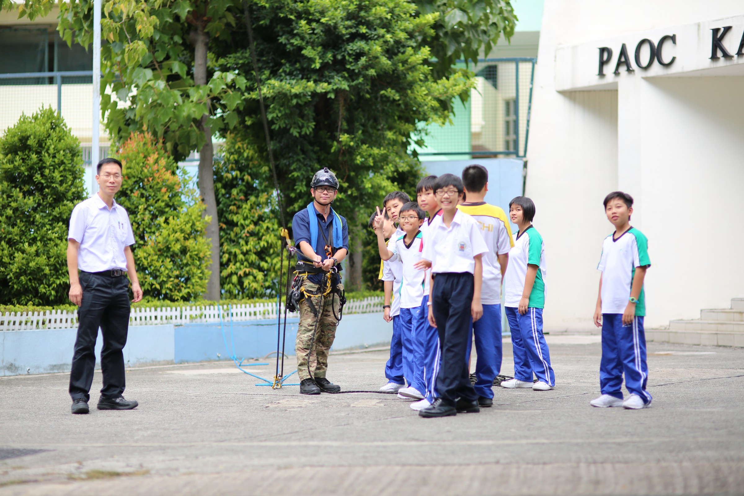 科學領域與童軍合辦STEM活動 - 《滑輪系統知多少》,為提高學生對科學的興趣,今天中一級科學堂走出課室,利用滑輪系統教授學生簡單的物理機械知識,學生運用不同的滑輪組合系統將同學由地面升高,親身體驗不同的滑輪組合帶來不同的動能。