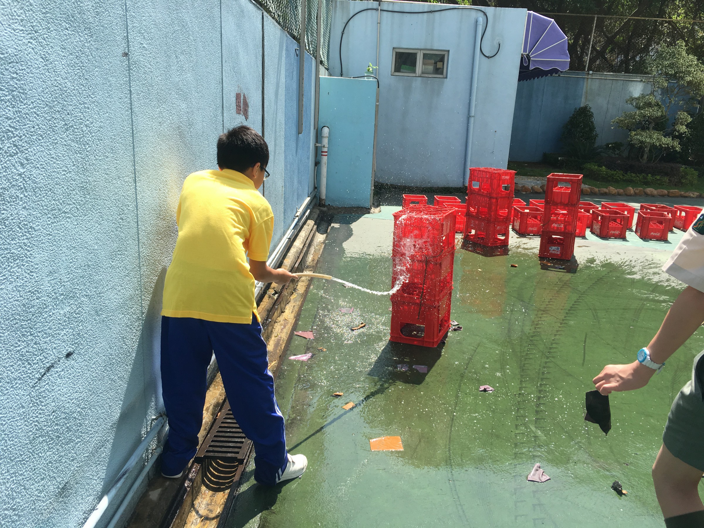 今天童軍集會,一群童軍清洗及翻新活動物資為旅團服務,過後進行一年一度的水戰,各人都手執水彈對準目標拋擲過去,