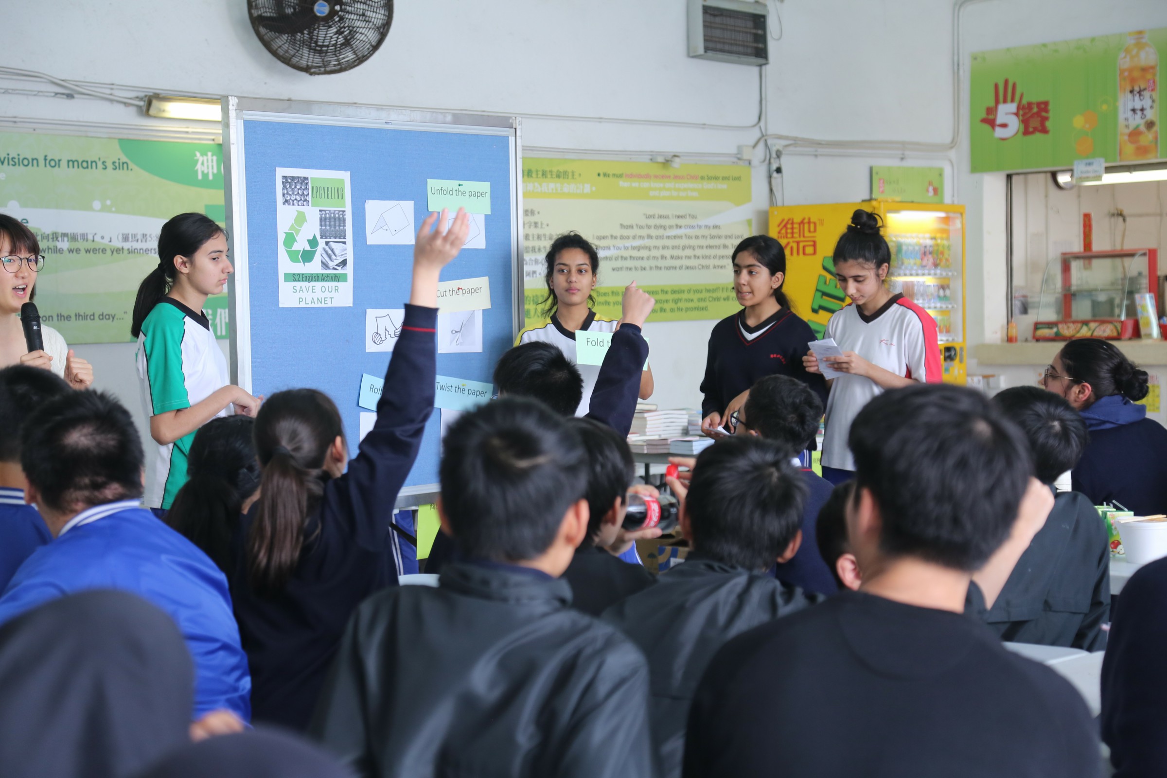 Having the topic ‘Upcycling’ in the lunchtime activity on 28 February in 2018 was the highlight for our form 2 students. It is also viewed as an extension of our form 2 English curriculum as they have been learning the concept of upcycling, a way to make useful things like new furniture or objects out of old and unwanted material, in the unit Saving Our Planet. This unique experience challenged our students’ thinking and gave them an amazing memory in learning English.