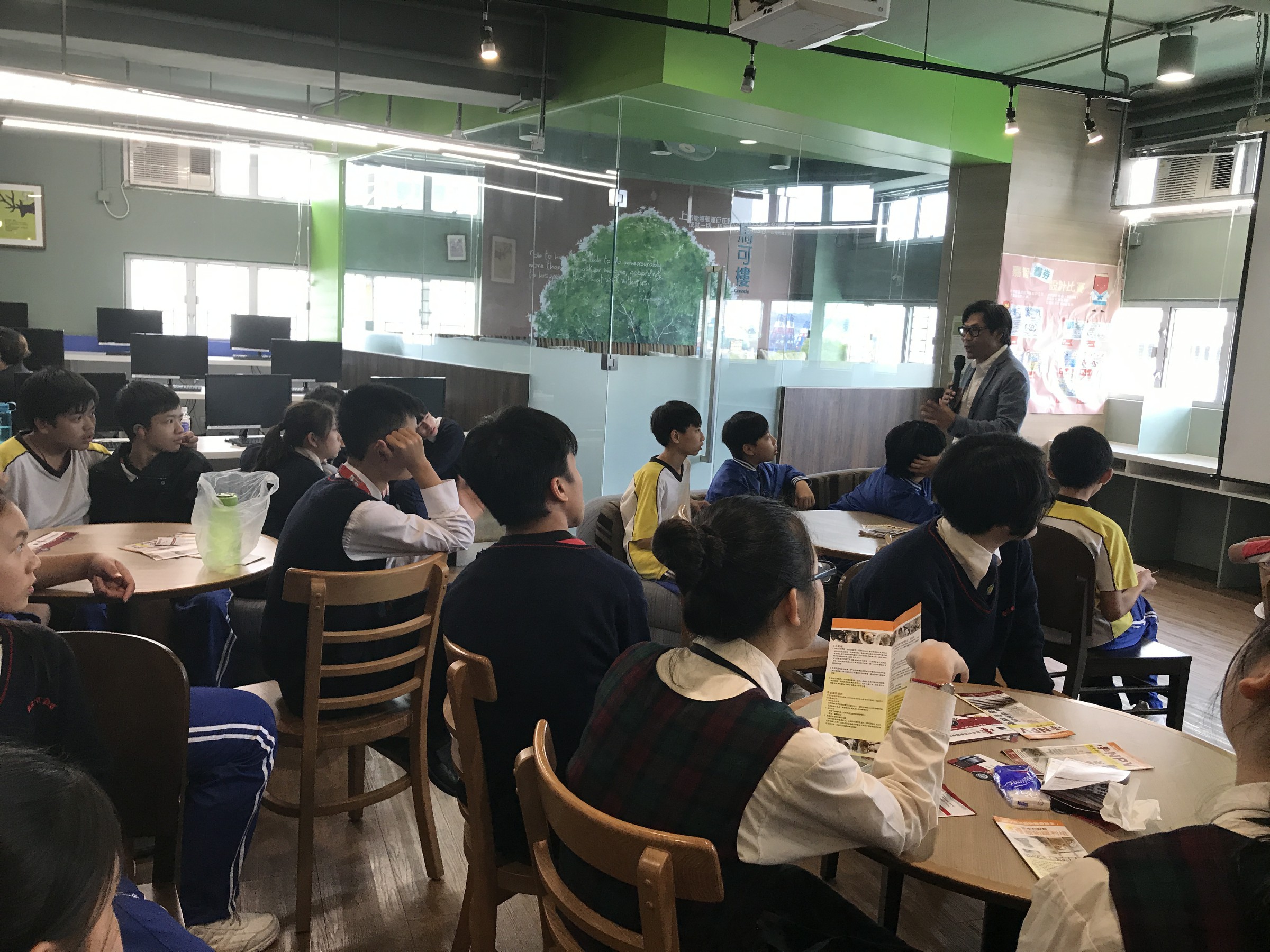 今天午膳時間,圖書館舉行一個名為《讓我好好活下去》的讀書分享會。這次讀書分享會,好高興邀請到非牟利獸醫協會創辦人麥志豪先生到校分享《讓我們好好活下去》這一本書,書中紀錄的十二個拯救動物的動人故事,分享社區動物堅強活下去的精神,當中提醒我們每個人要好好珍惜生命之外,不論在家飼養的寵物,甚至街上的動物,我們都要珍惜牠們的生命,除此之外,還可以近距離與故事主人翁接觸!