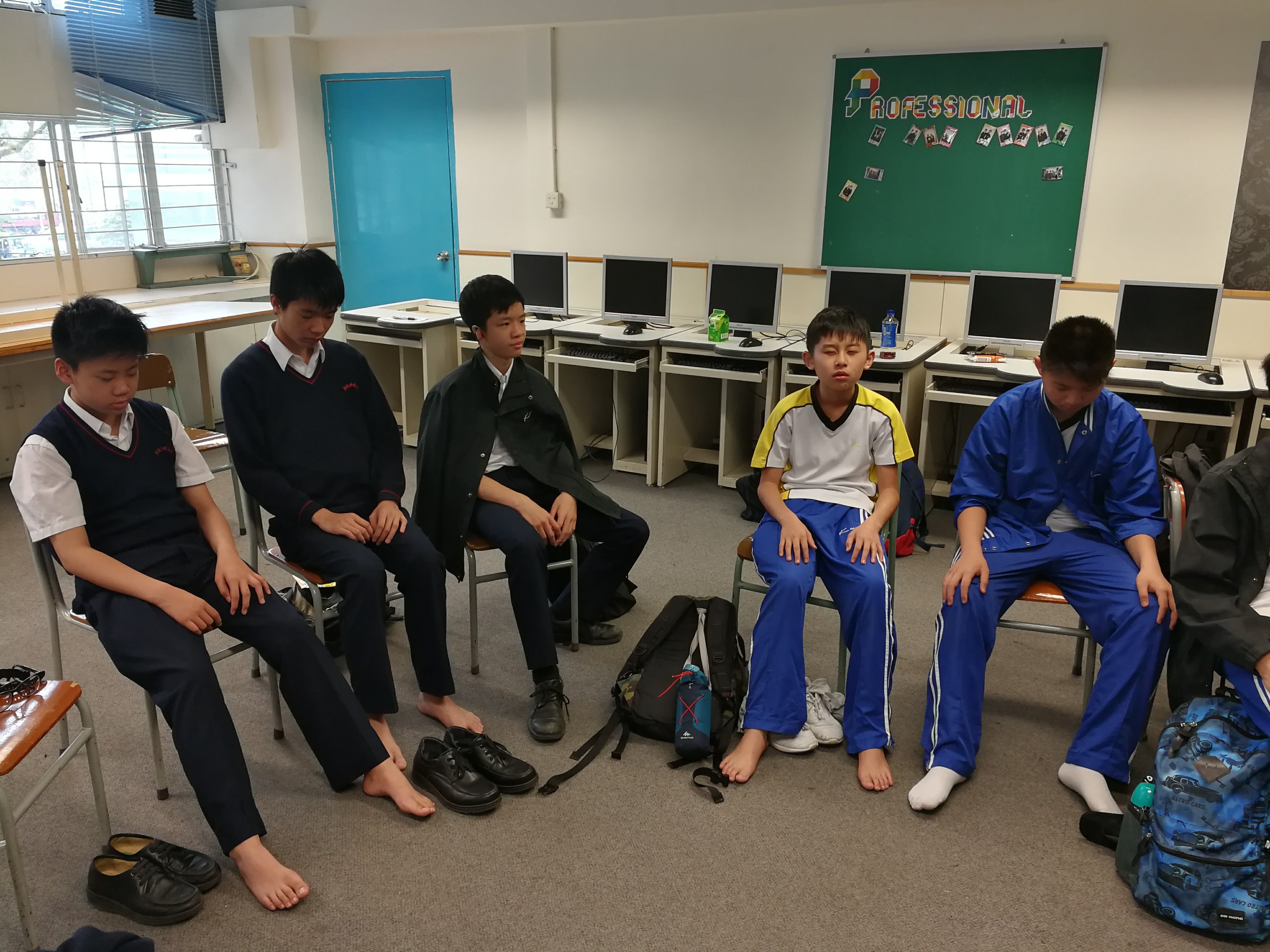 好心情大使的小組訓練已進入第三節,除了互動的遊戲訓練,這次也加入了靜觀(Mindfulness)訓練。透過靜觀練習,同學能更清晰及全面地觀察自己的身體、思想、 情緒及行為的狀態。從同學們專注和認真的表情可見,他們也十分享受「靜觀」的過程,也能夠從中更了解自己的狀態。