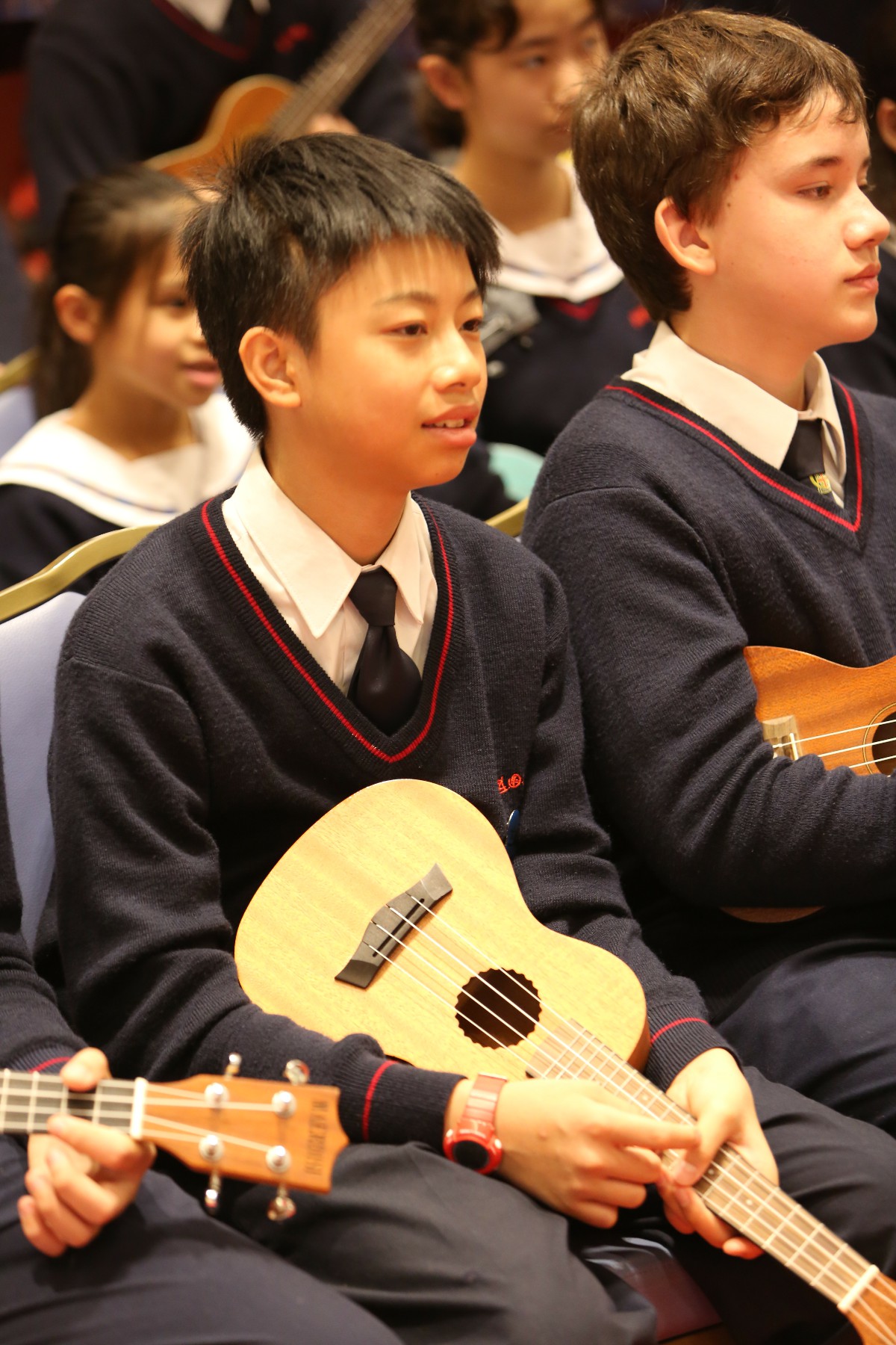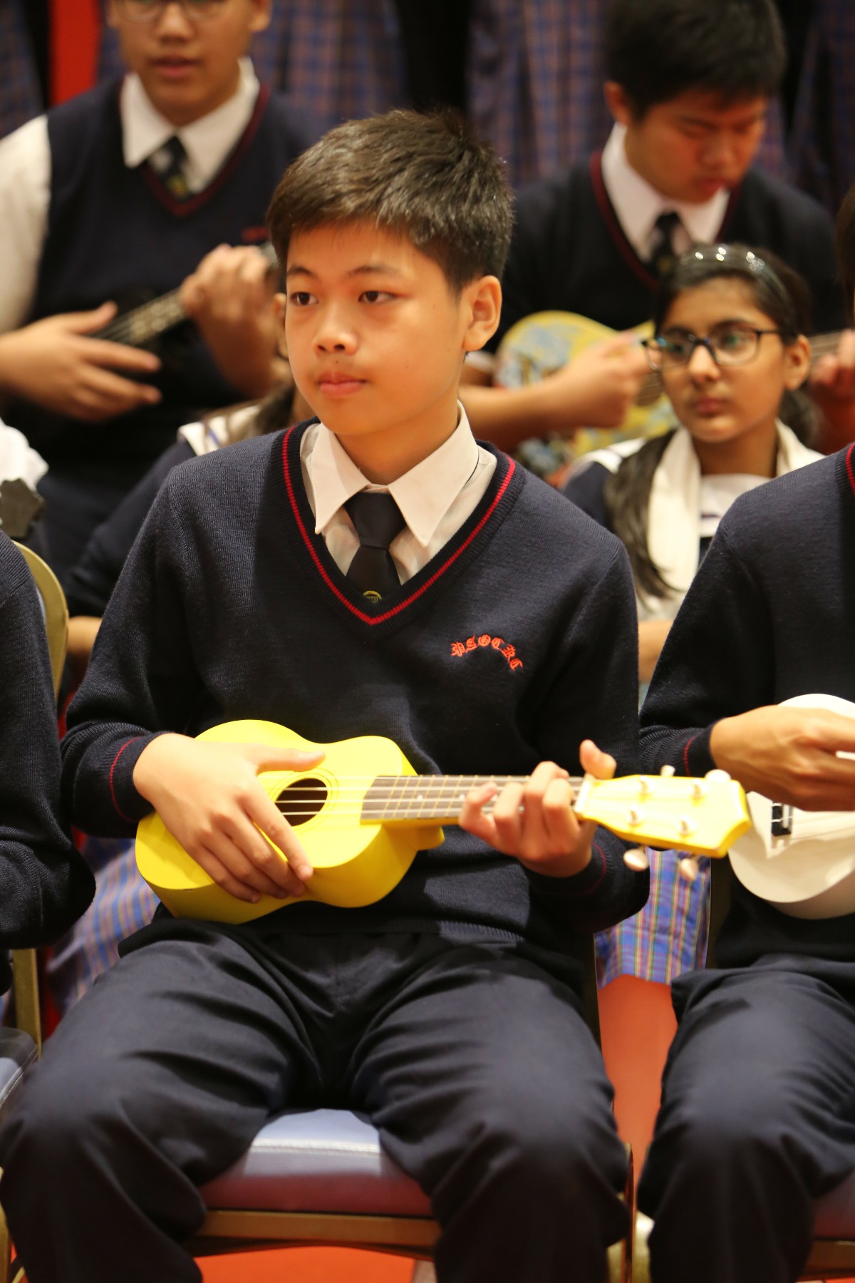本校組成50位中一至中三的學生,以小結他唱奏出四首BEYOND歌曲,同學在之前需要有多次一起在午膳時間練習,