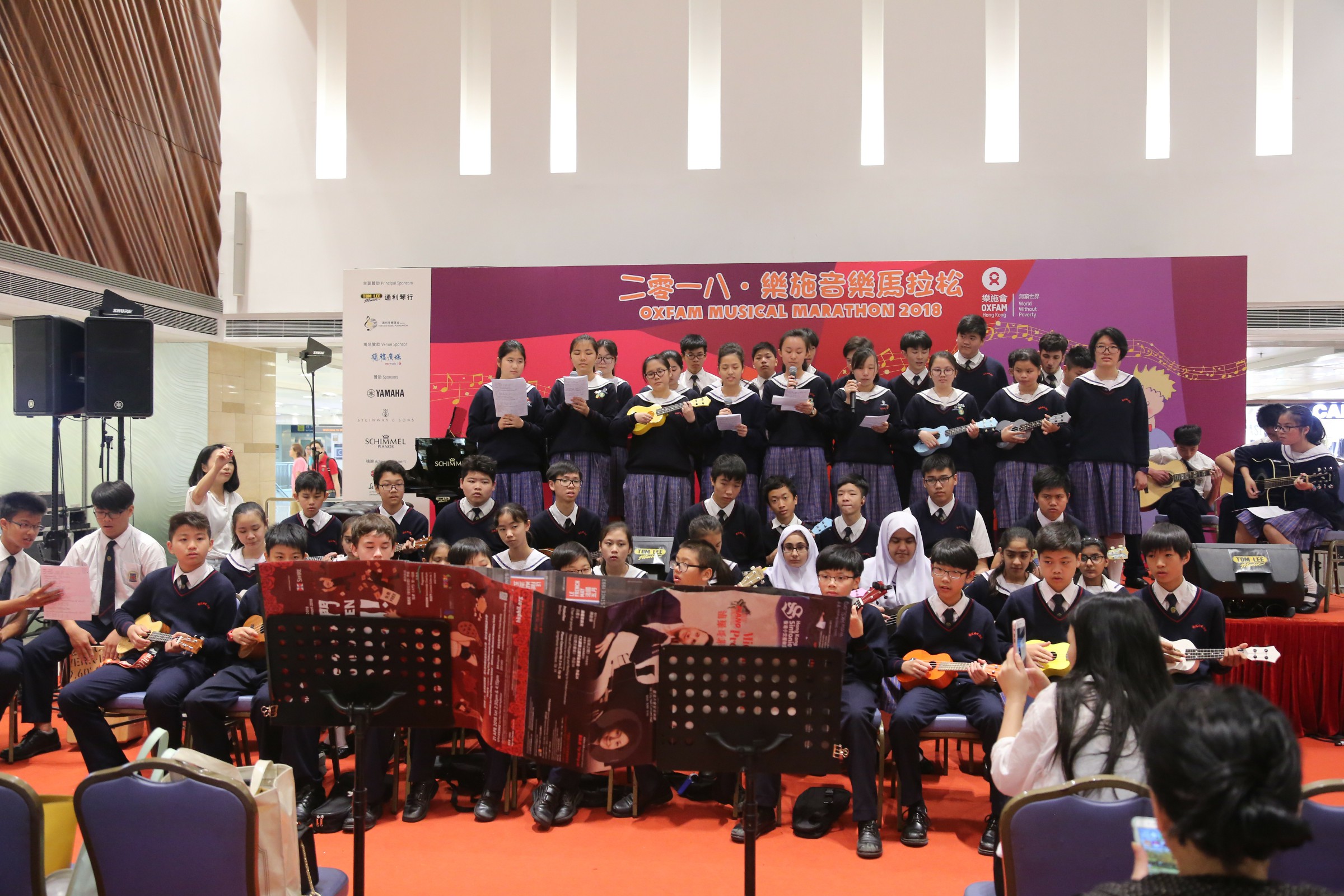 本校參加由樂施會主辦的「樂施音樂馬拉松」,於2018年4月22日(星期日)在九龍灣德福商場舉行。「樂施音樂馬拉松」
