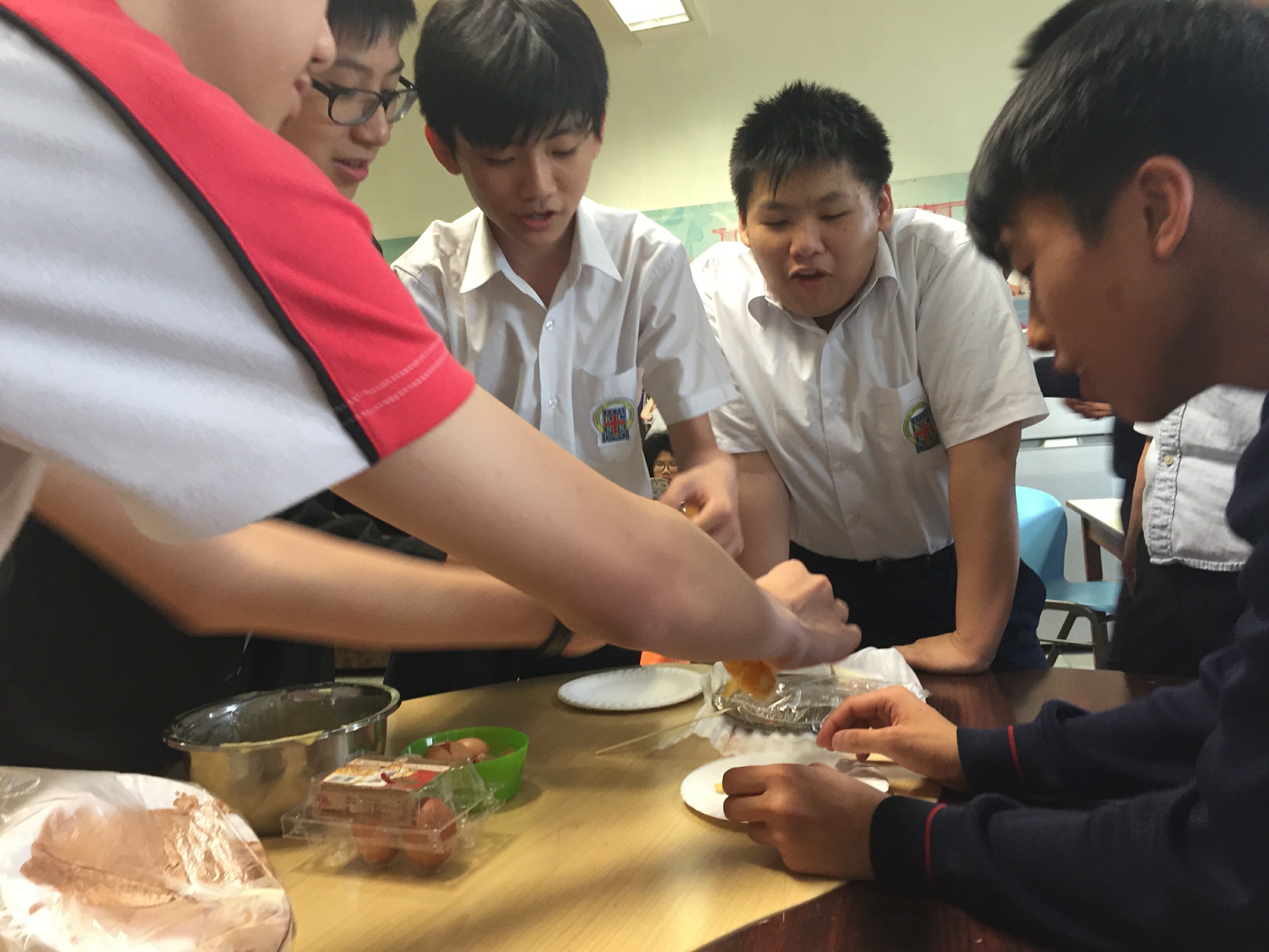是日午間活動,社工與同學一同製作雪糕窩夫。過程中,同學細心觀察,動手一步一步完成。製成品出爐,