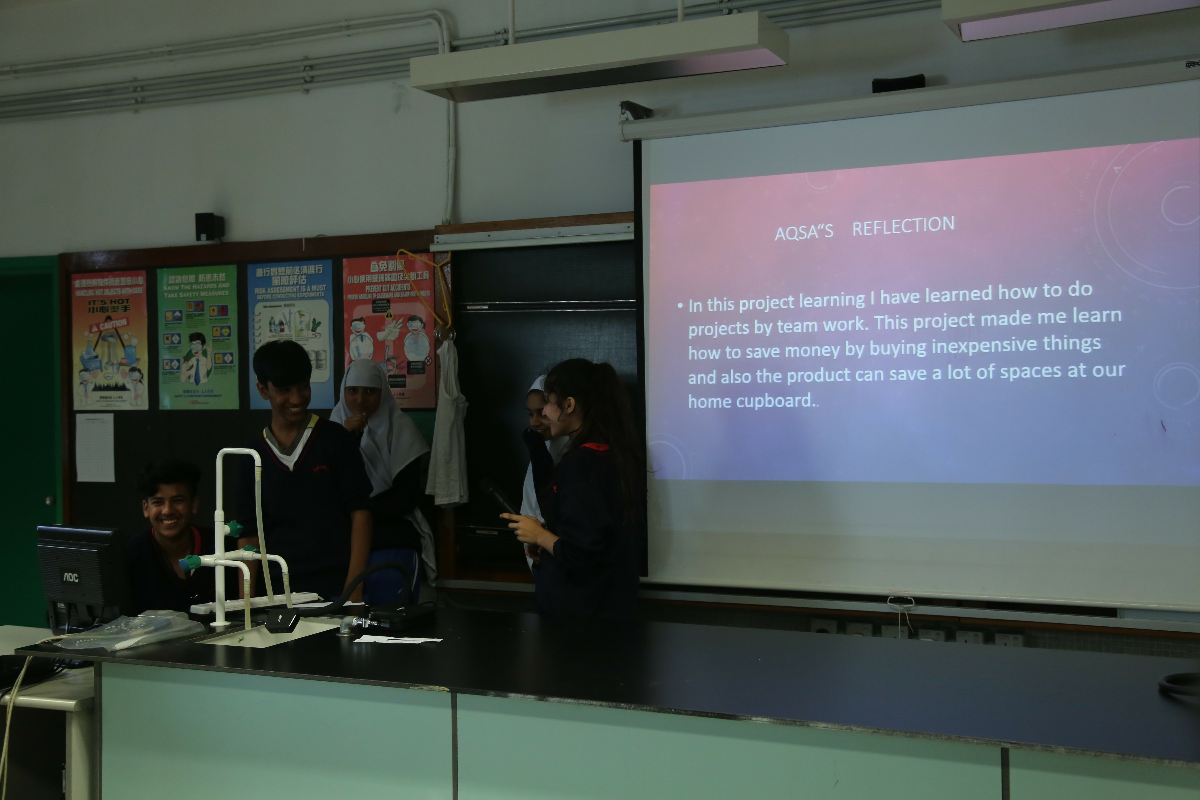 中二級專題研習以科學發明品為題,透過老師對學生悉心的指導,學生皆能發揮共同協作、溝通、解決問題能力,