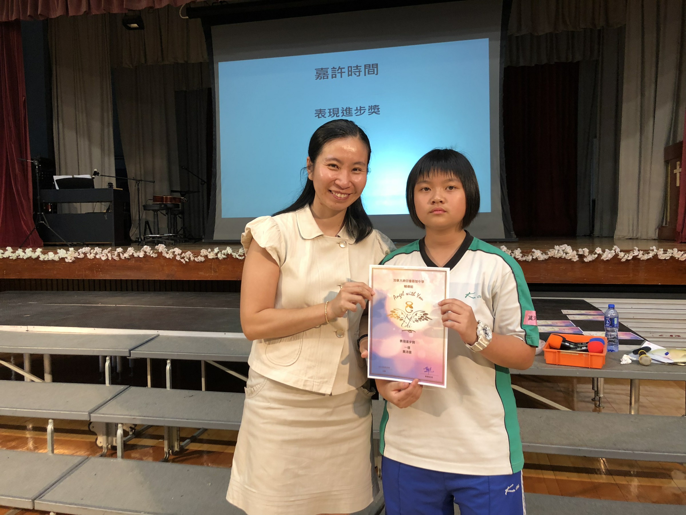 終於來到本學年最後一次的愛回家畢業禮,中一及中二同學向大家示範「大笑瑜伽操」,又教授大家放鬆神經的方法,更以唱歌去展示愛回家精神「天使在左右」。最後,我們更送上畢業保溫水樽作紀念,喻意大家有一個溫暖的中學生活,喜歡同學,喜歡老師,喜歡學校,真正的做到愛回「嘉」。