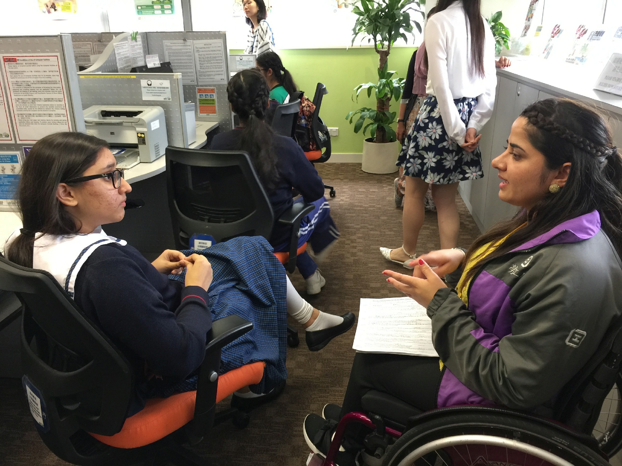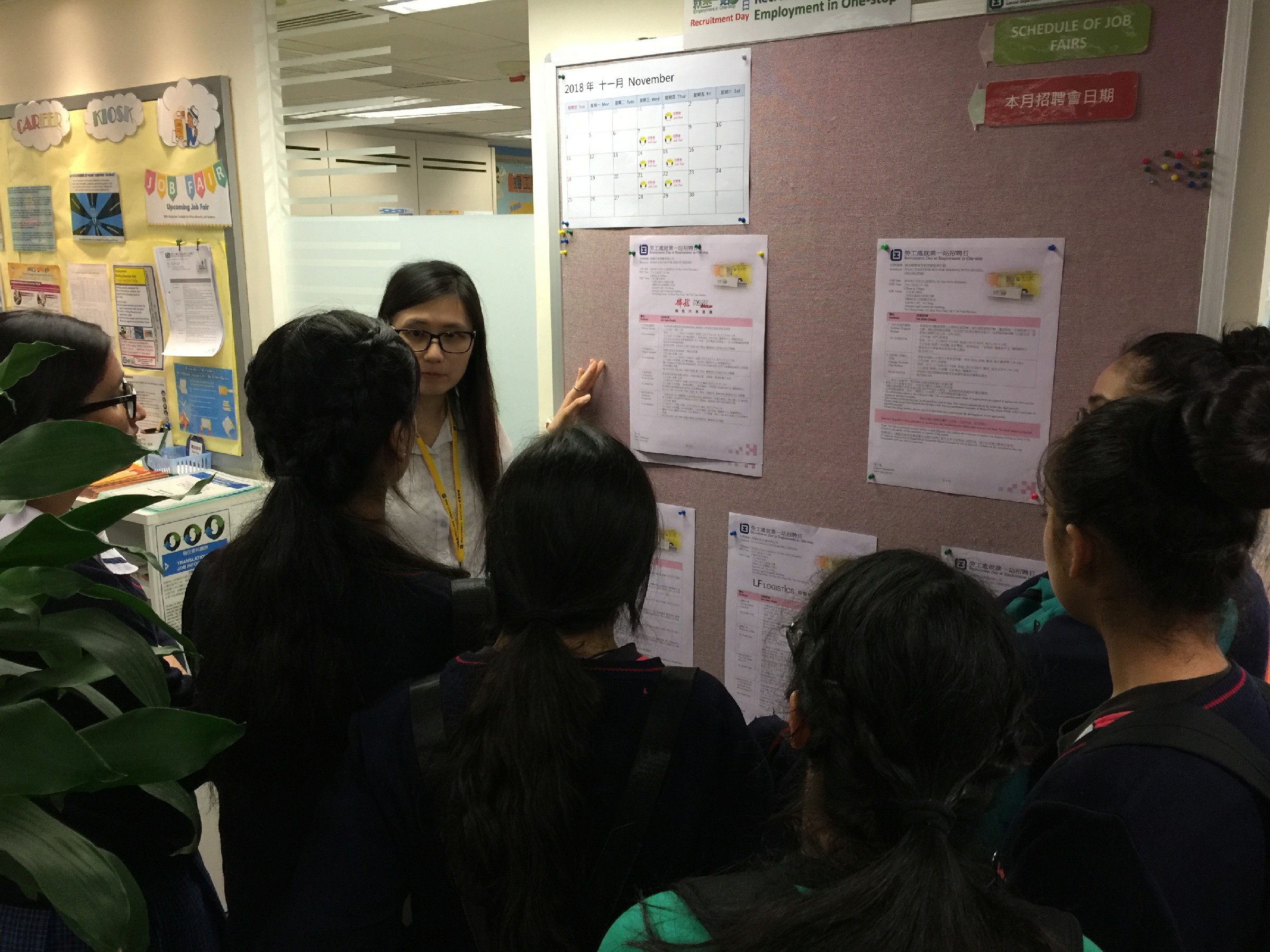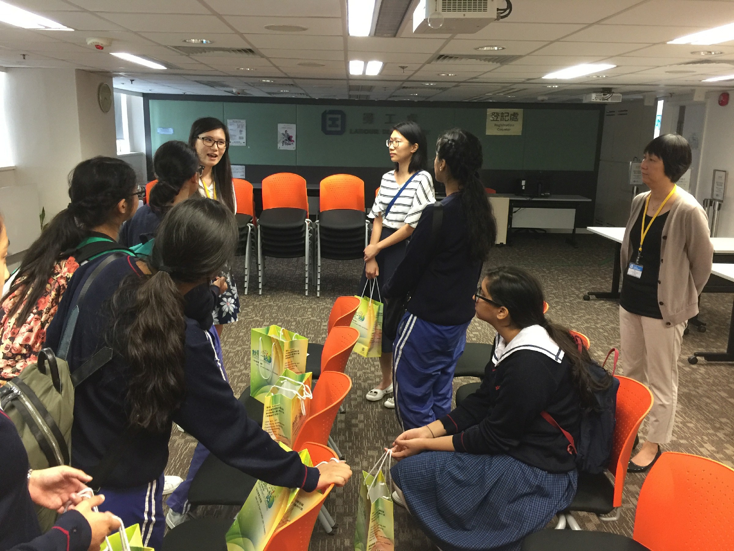為了令非華語同學了解各項升學就業途徑, 本校與元朗大會堂合作, 安排一系列生涯規劃活動, 今次安排參觀天水圍政府綜合大樓勞工處, 當中除了勞工處職員介紹大樓內各項設施, 如何運用中心資源, 如幫助尋找工作、各類政府資助申請、了解勞工權益等, 其中更有同種族的勞工大使作接待講解, 同學十分有親切感, 將來同學畢業後可自行到有關中心, 尋找協助, 踏進社會工作階梯。