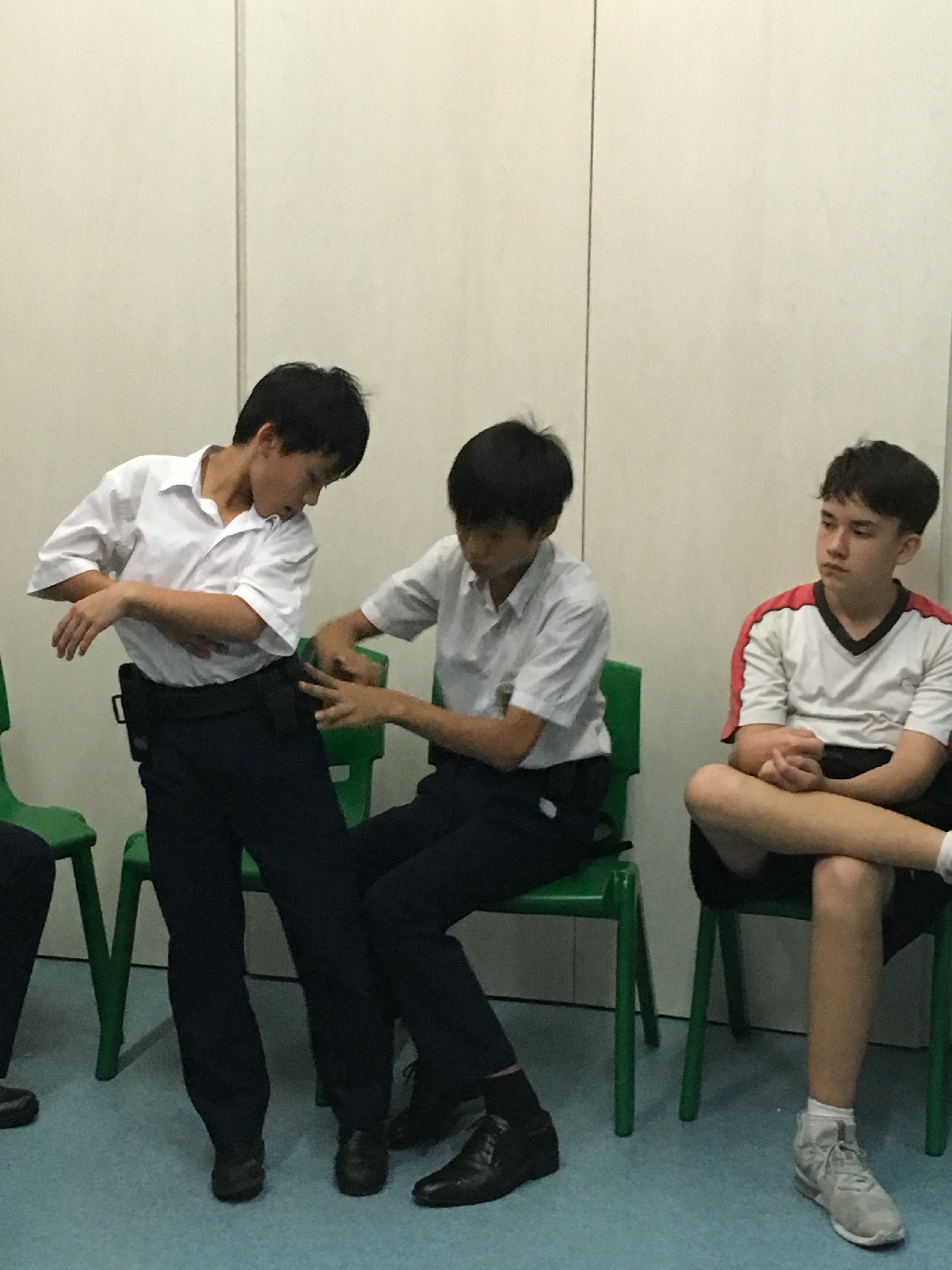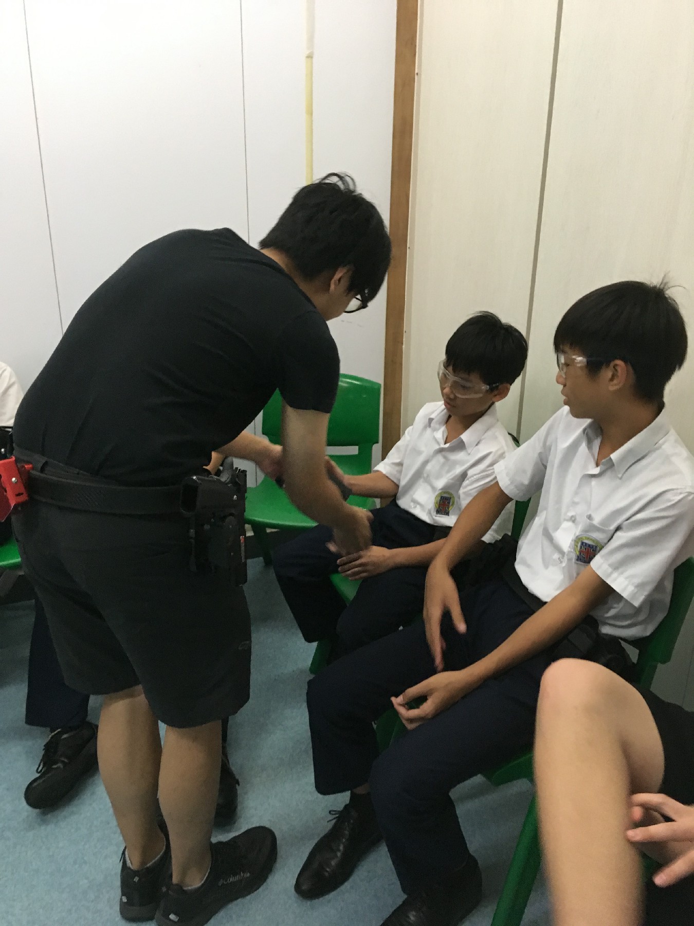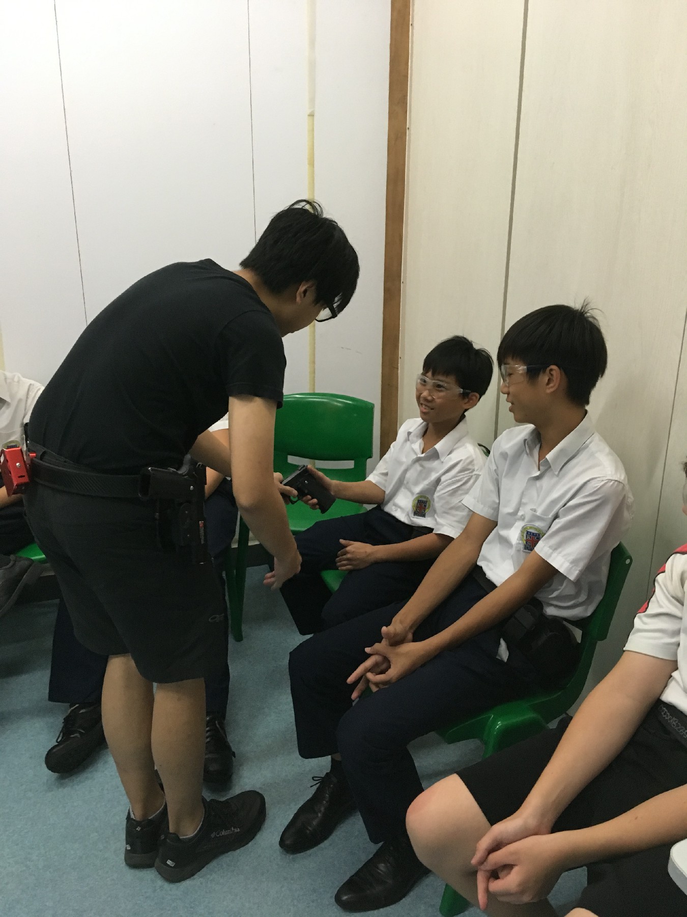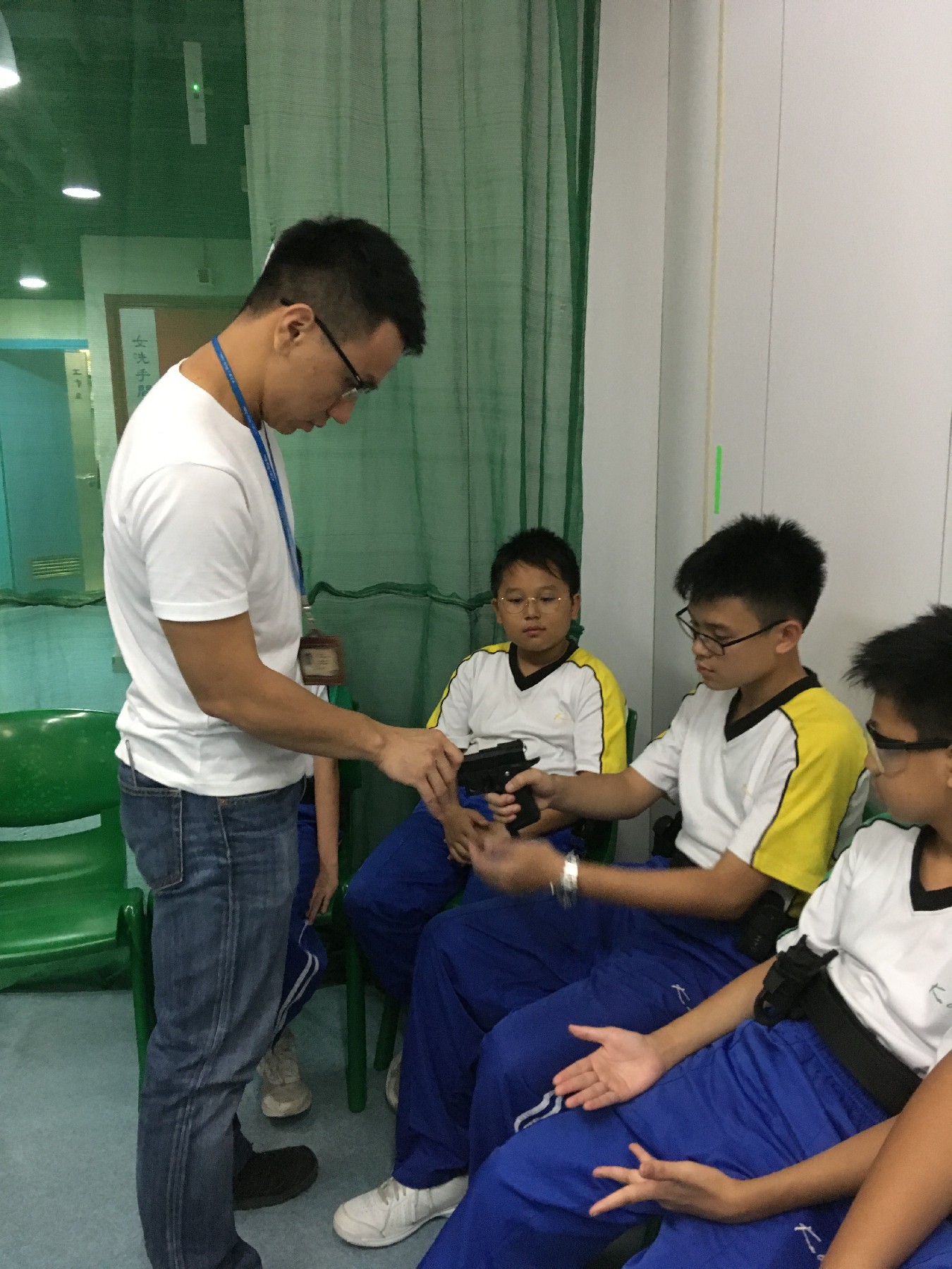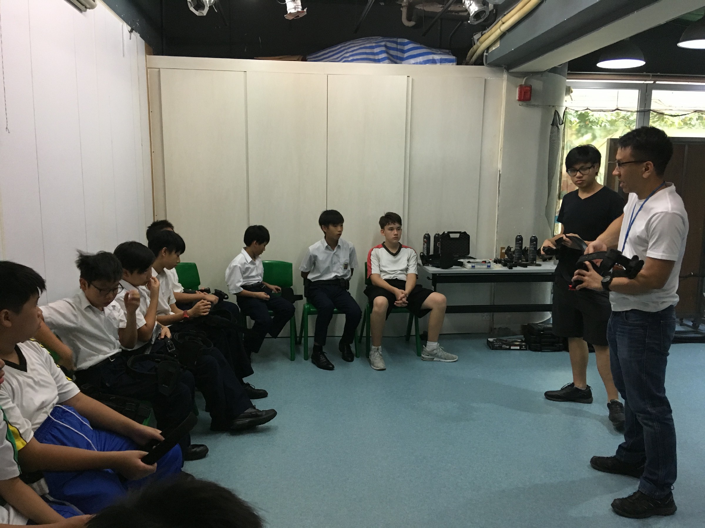 同學練習強弱手射擊  嘗試為彈夾充氣充彈 並為自己訂立命中目標 加強紀律聽從射擊指令 簡單體能訓練加強