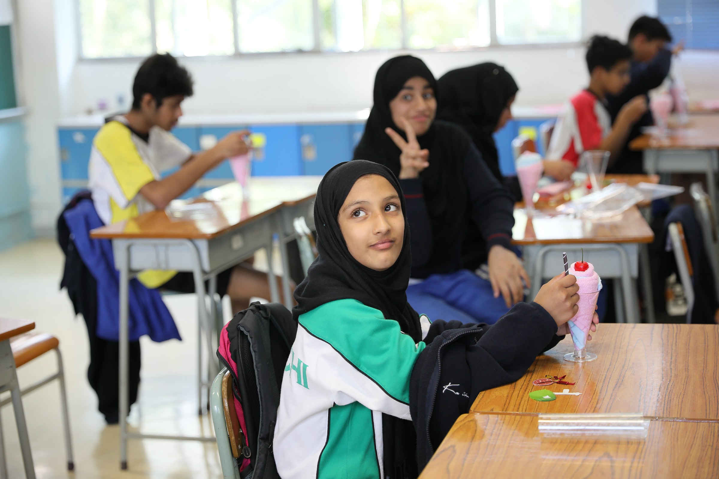 利用手帕及各項材料,製作成車厘子雪糕杯,再寫下道謝說話在感謝咭上,準備在家長日當天,在家長與老師面談時,