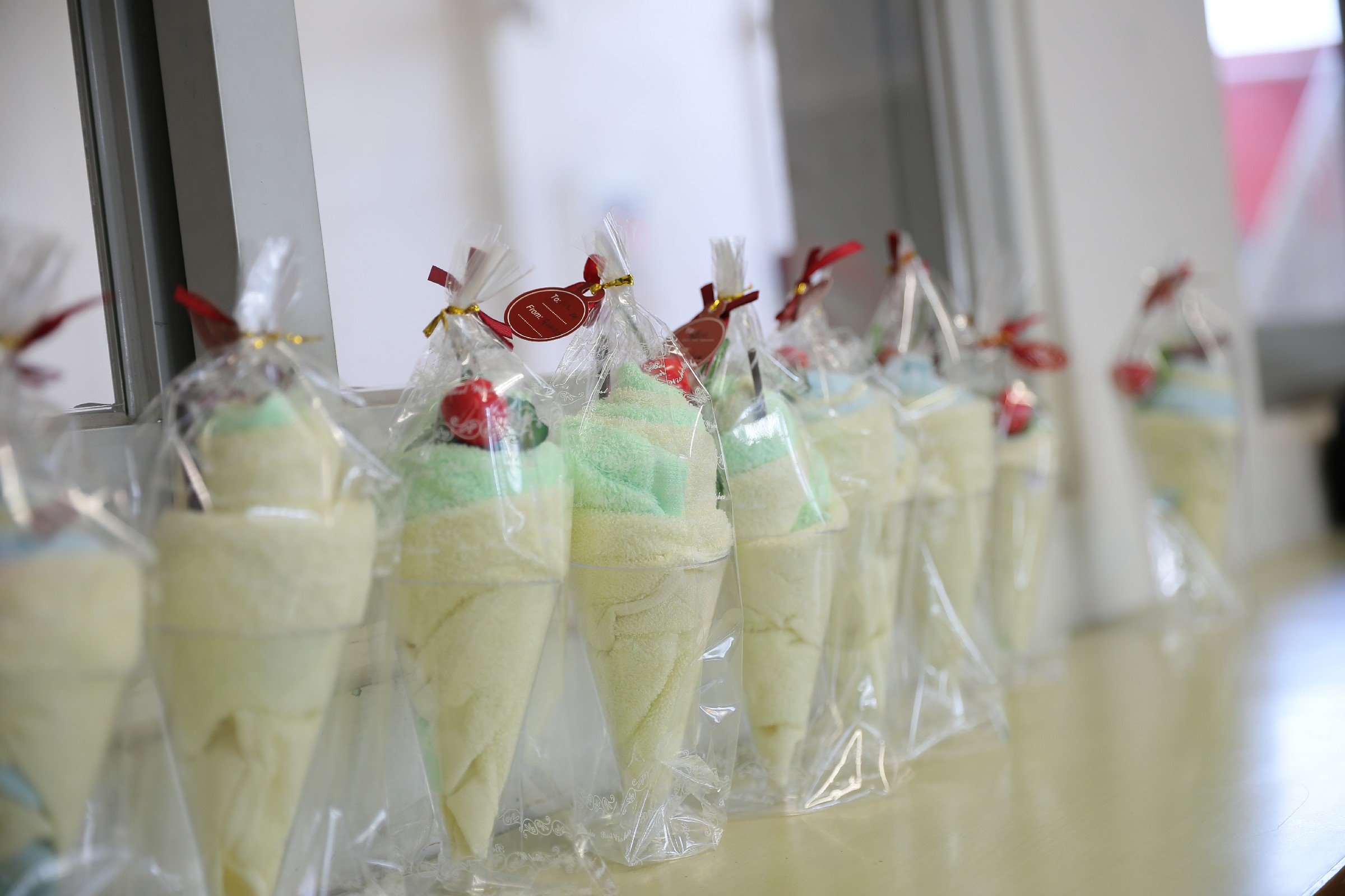 利用手帕及各項材料,製作成車厘子雪糕杯,再寫下道謝說話在感謝咭上,準備在家長日當天,在家長與老師面談時,