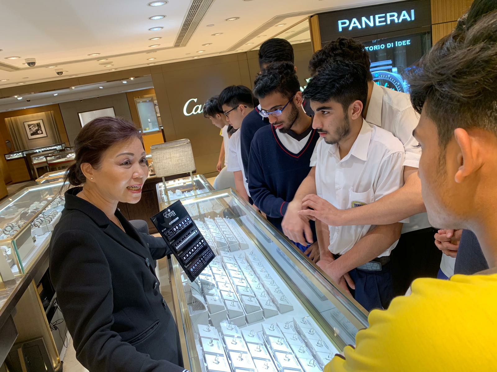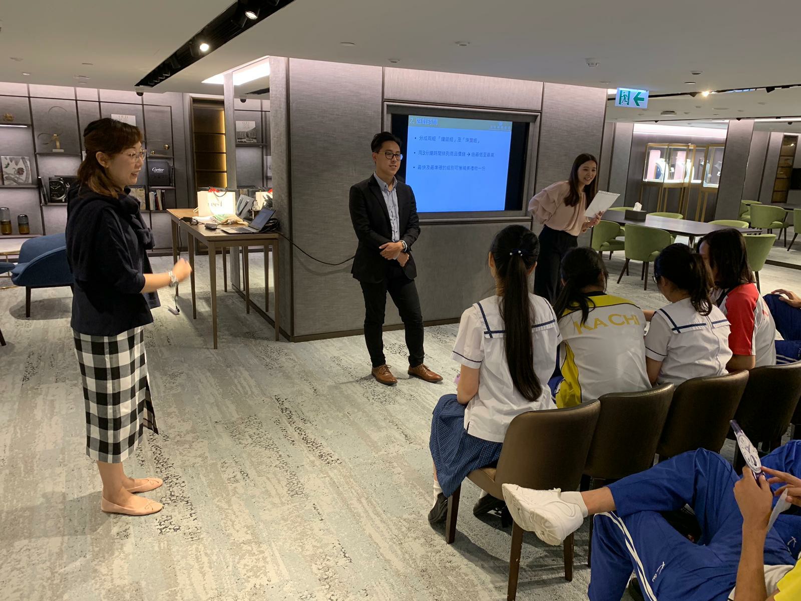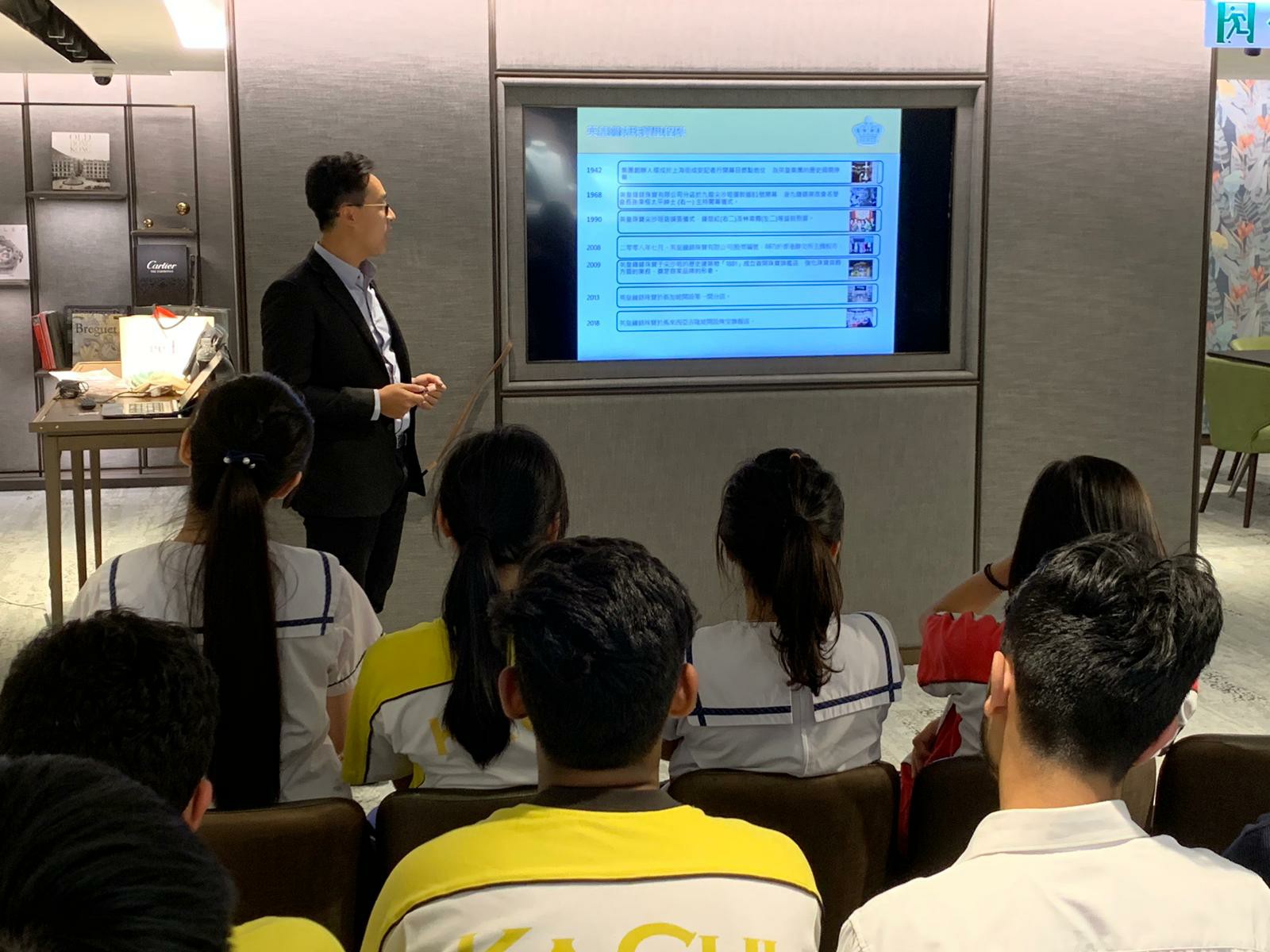 本校與英皇珠寶集團為合作伙伴,帶領中五級學生前往中環英皇鐘錶珠寶門店參觀,由市場部、人事部的英皇珠寶同事籌辦和接待。