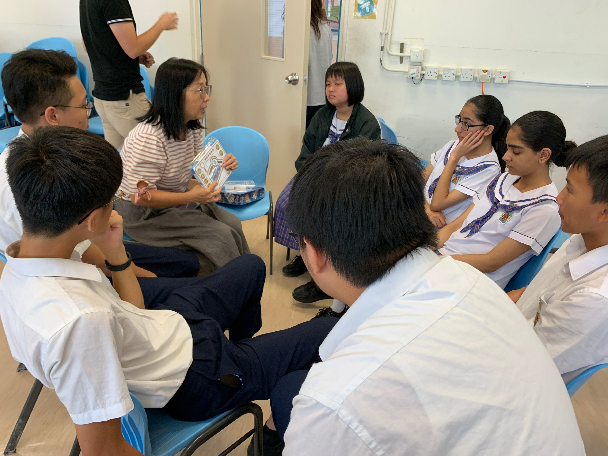 9月9日是輔導領袖生第一次培訓,當天40個輔生與各級級輔老師一起共享午餐,彼此交流,建立關係。之後,各級級輔老師分別與自己級別的輔生訂規矩和計劃全年活動,凝聚同行精神。最後,社工更以遊戲方式讓學生領會服務他人的精神。