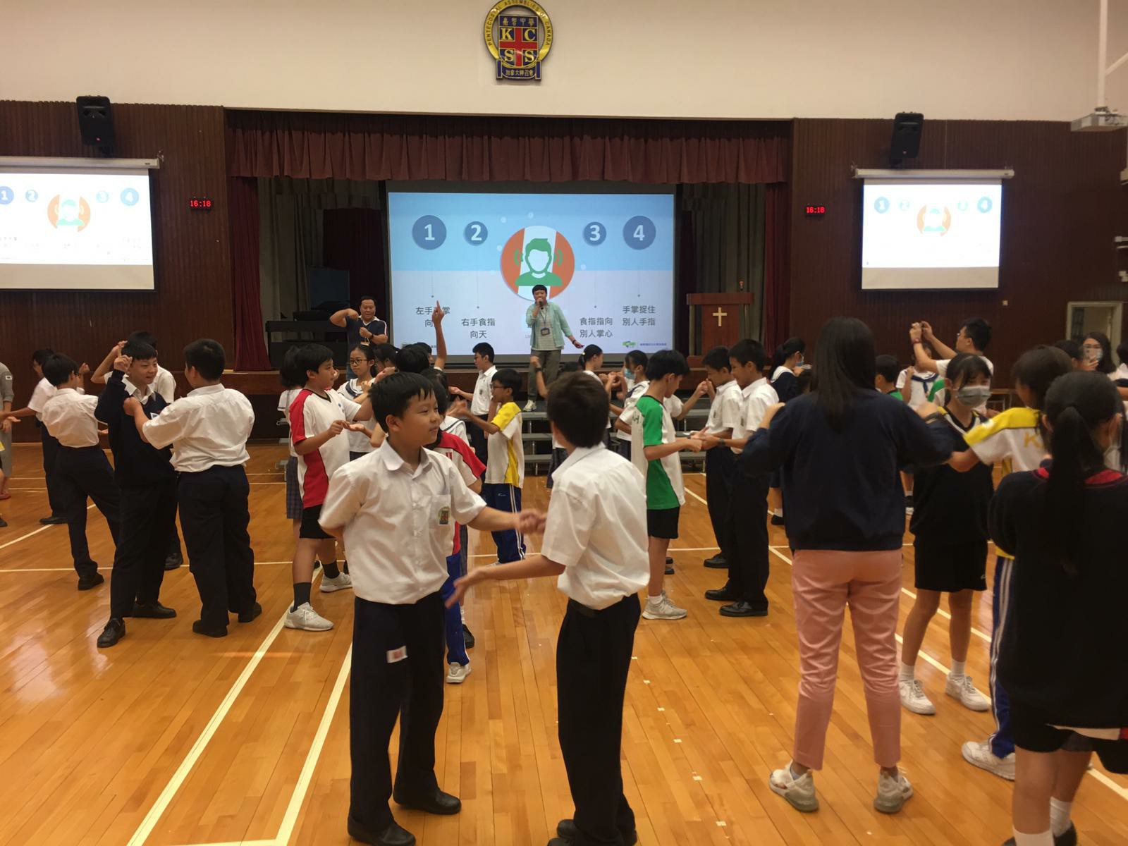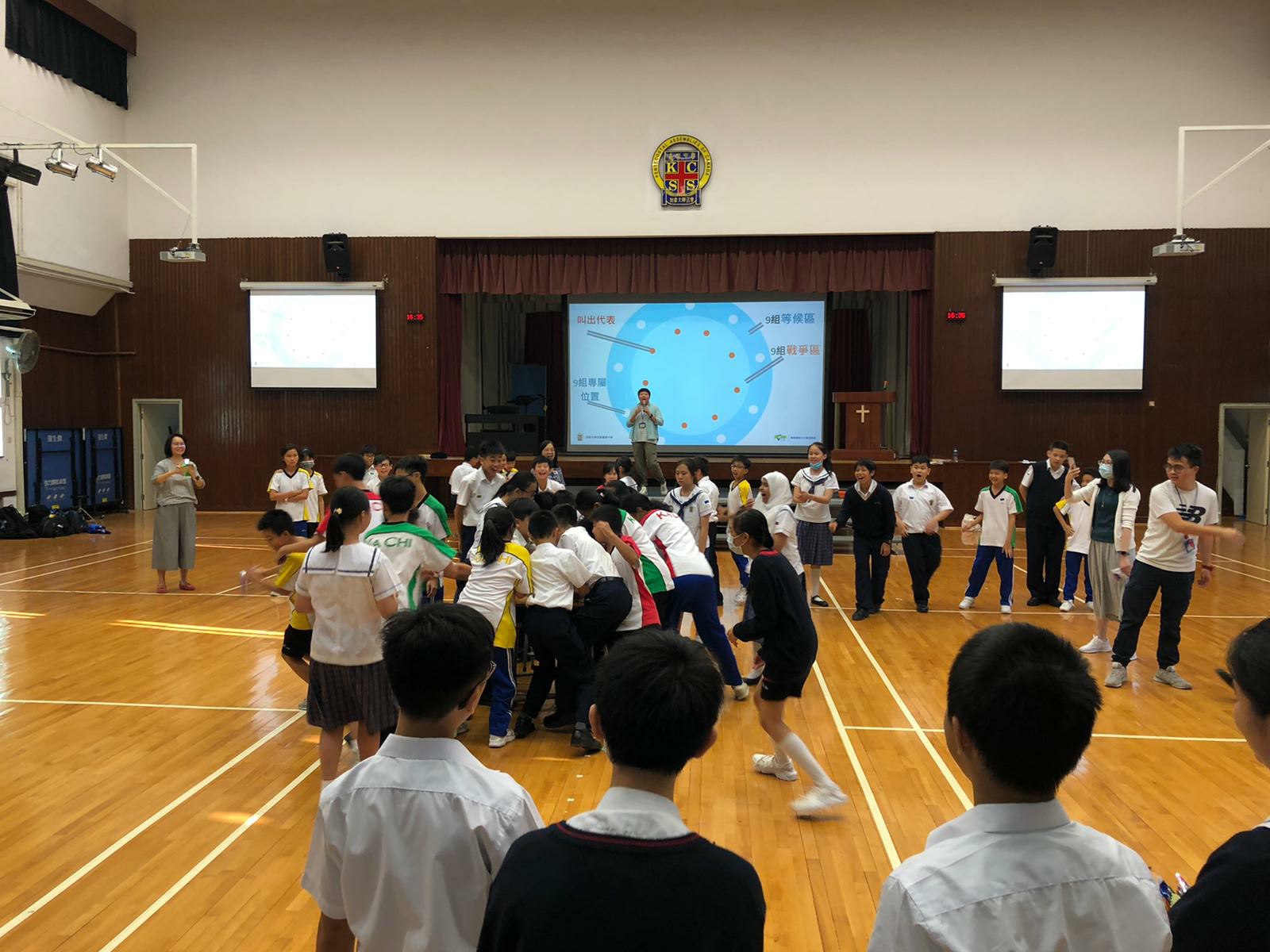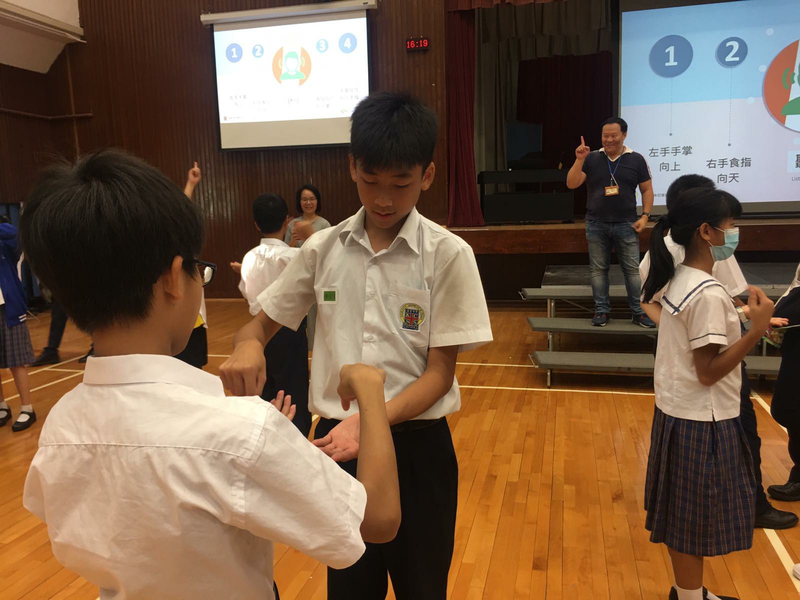 第一次「愛回家」活動以「懂得節制」為主題,活動以小組競技比賽的形式進行,學生在熱身遊戲中已經非常投入。在「九龍爭珠」活動中,九組同學更出盡渾身解數,在戰區設法拿到戰利品和隊友分享,現場氣氛熾熱緊張。另外在「左右紅藍綠」的活動中,同學需根據指令,全組人做相同的動作,過程中更有不少歡樂的場面出現。