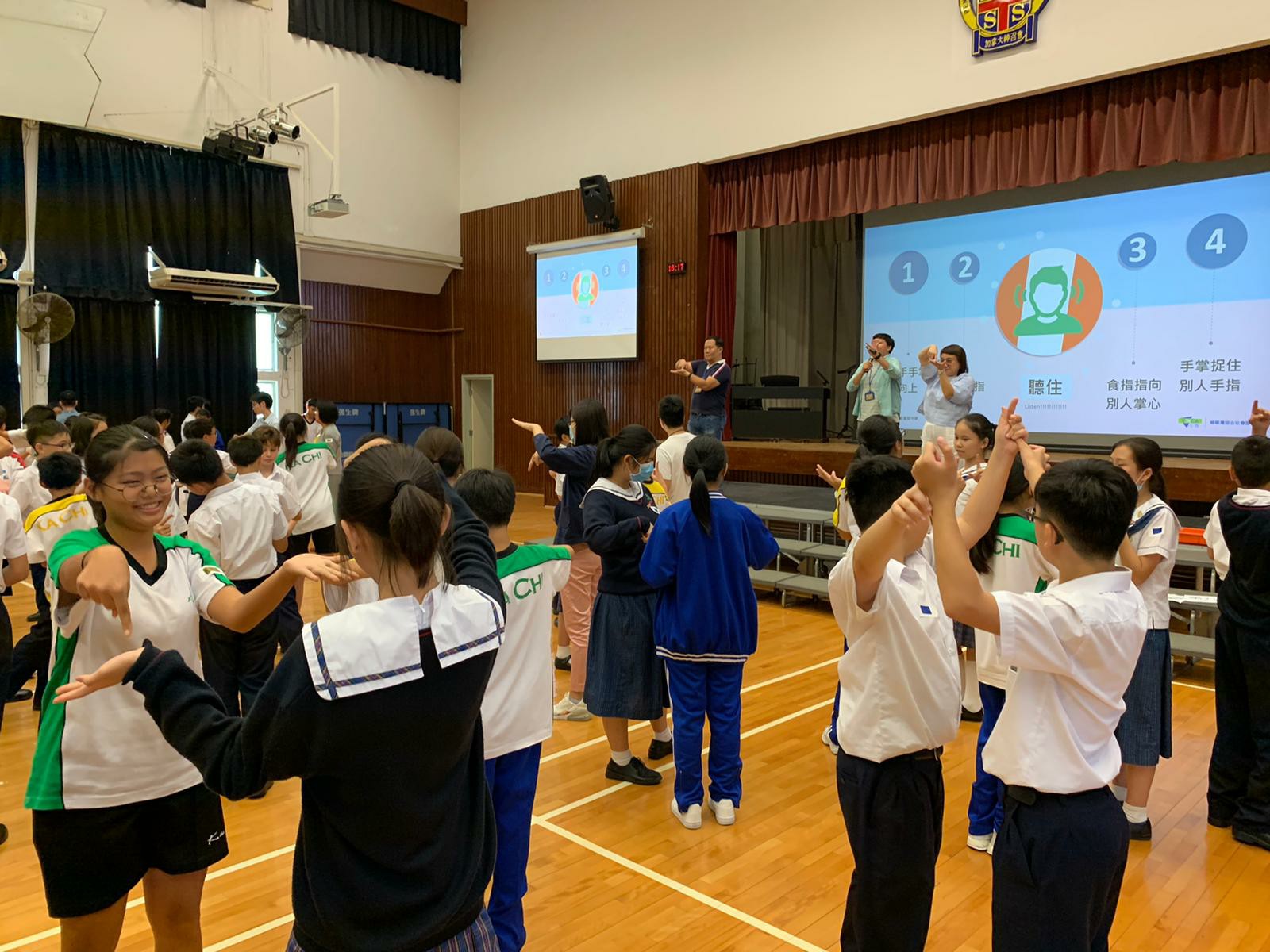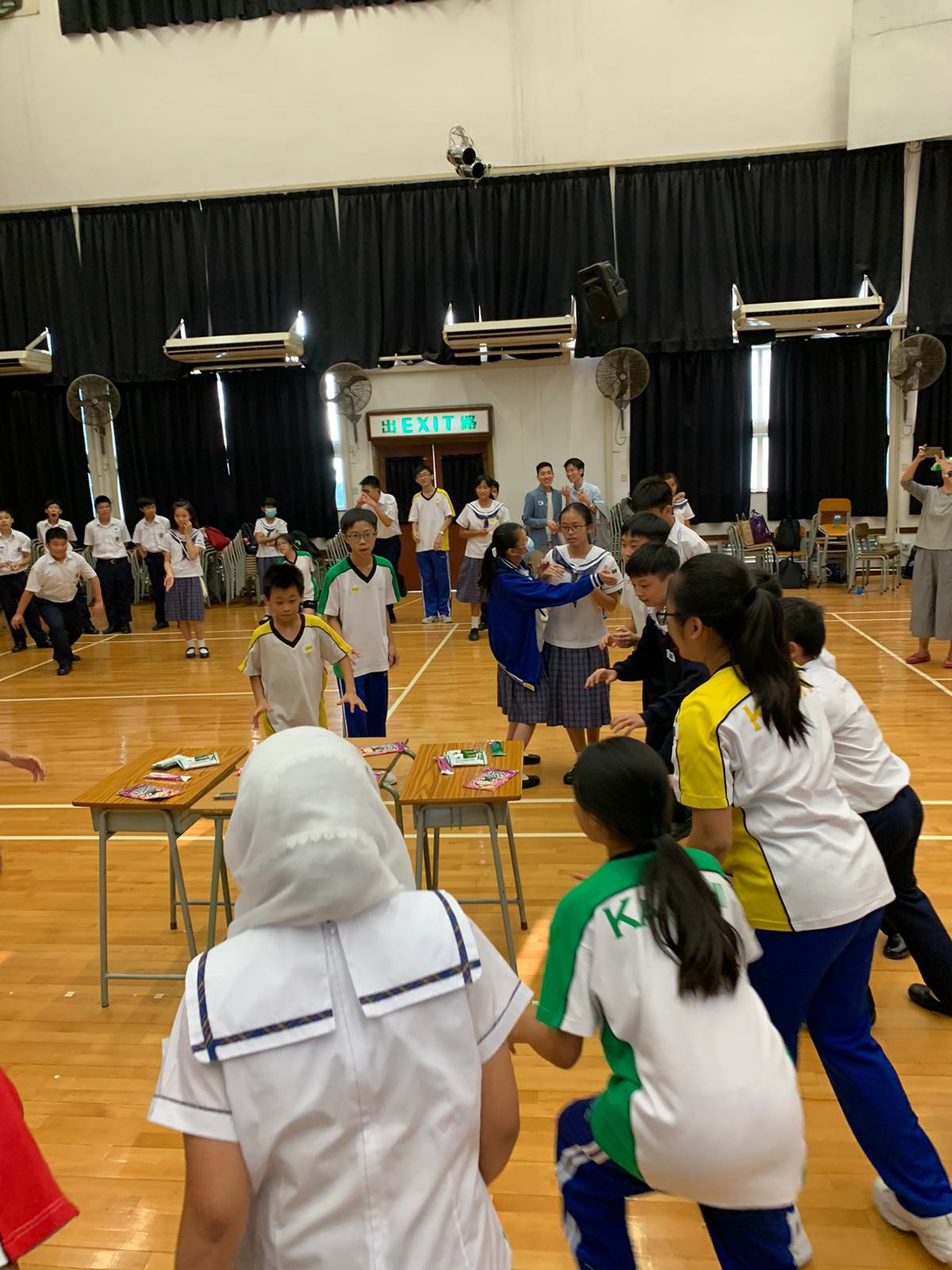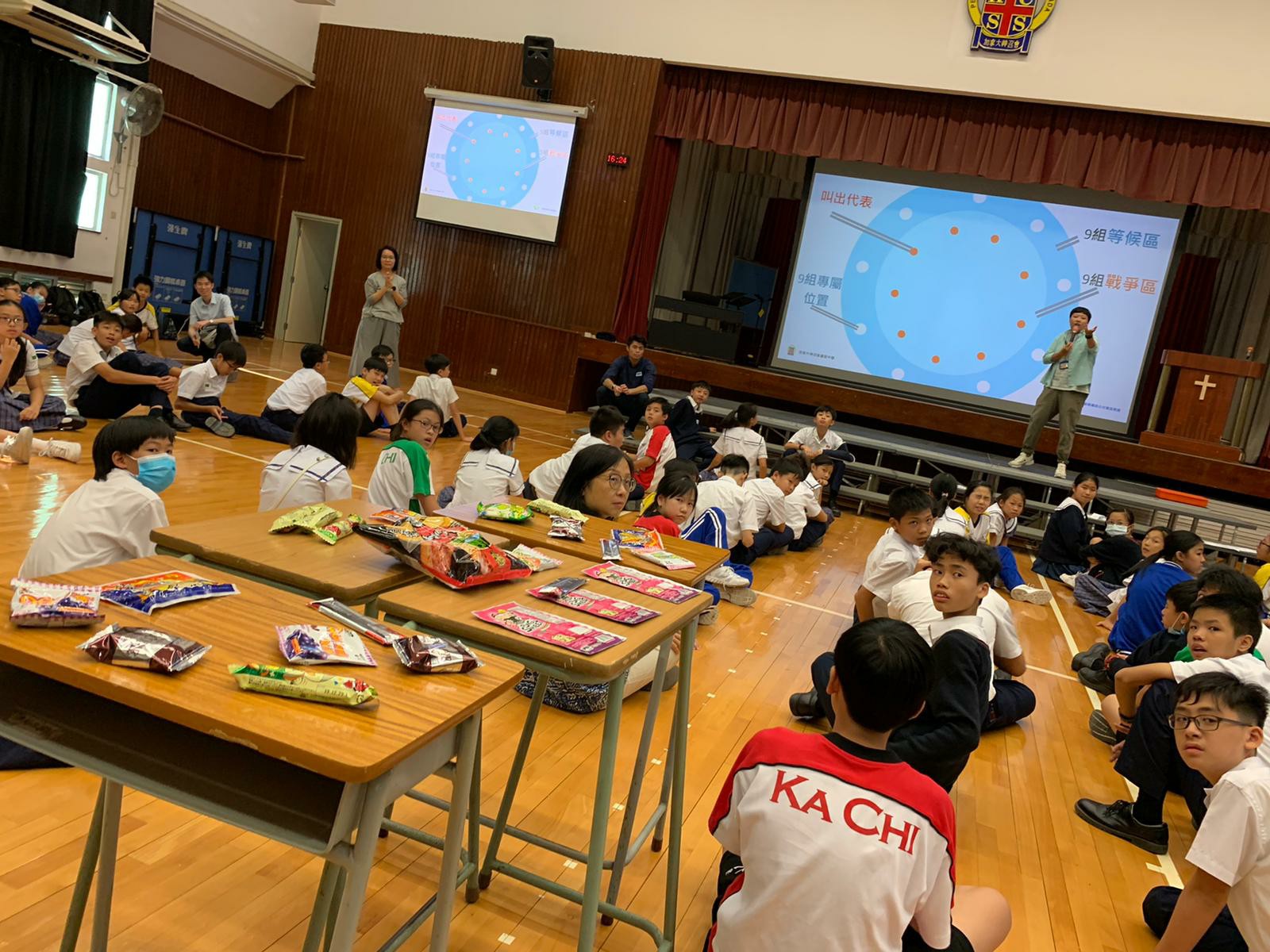第一次「愛回家」活動以「懂得節制」為主題,活動以小組競技比賽的形式進行,學生在熱身遊戲中已經非常投入。在「九龍爭珠」活動中,九組同學更出盡渾身解數,在戰區設法拿到戰利品和隊友分享,現場氣氛熾熱緊張。另外在「左右紅藍綠」的活動中,同學需根據指令,全組人做相同的動作,過程中更有不少歡樂的場面出現。