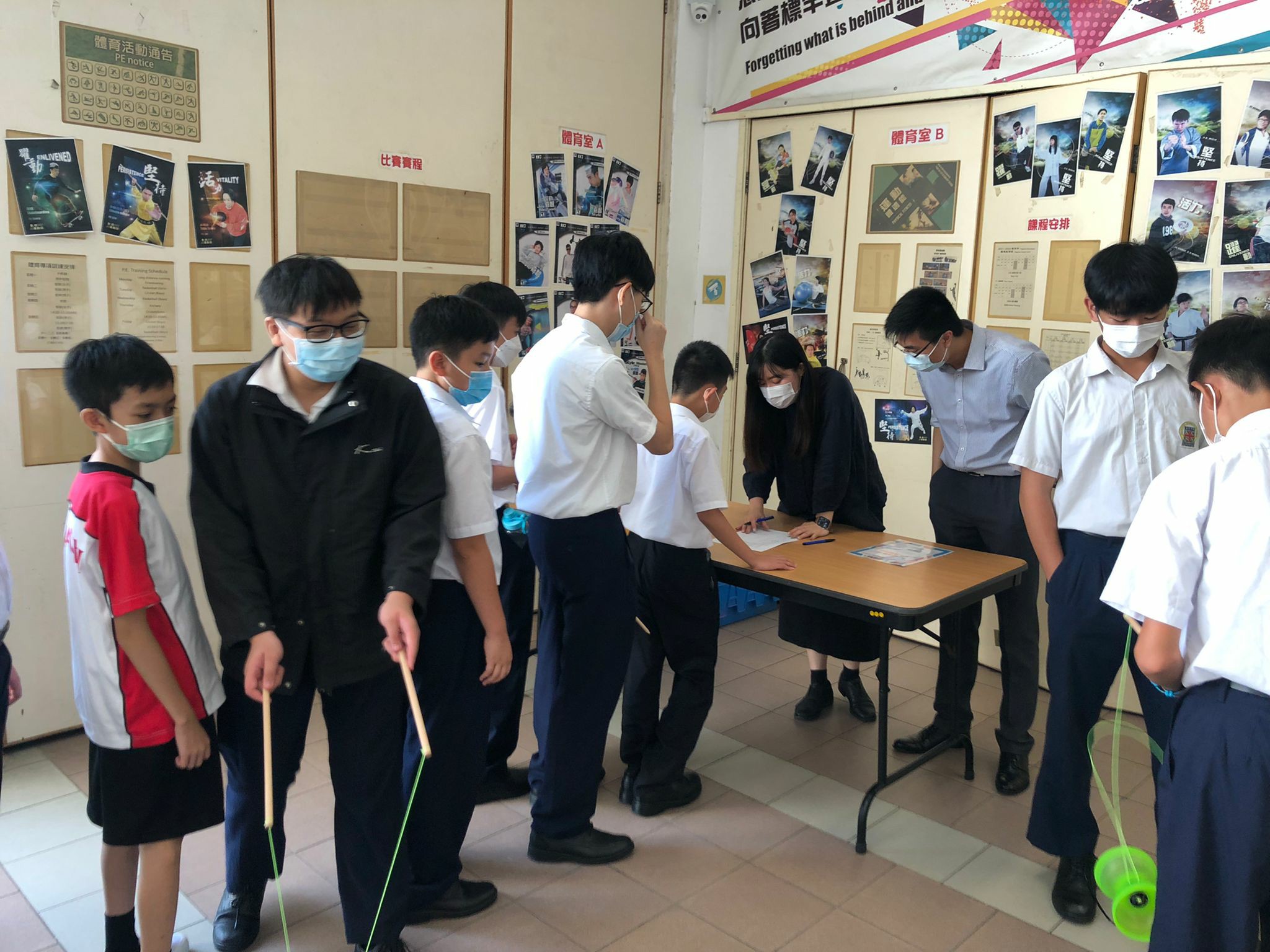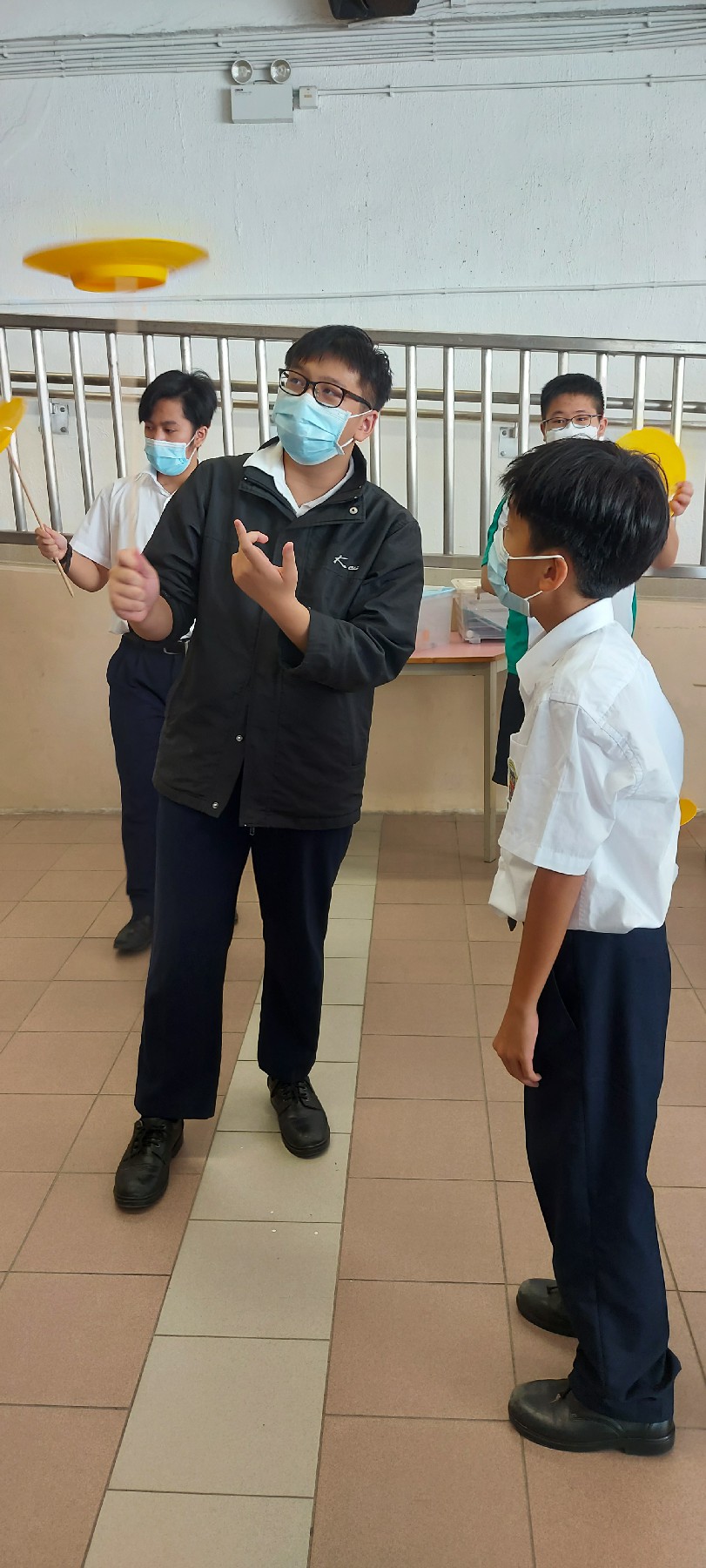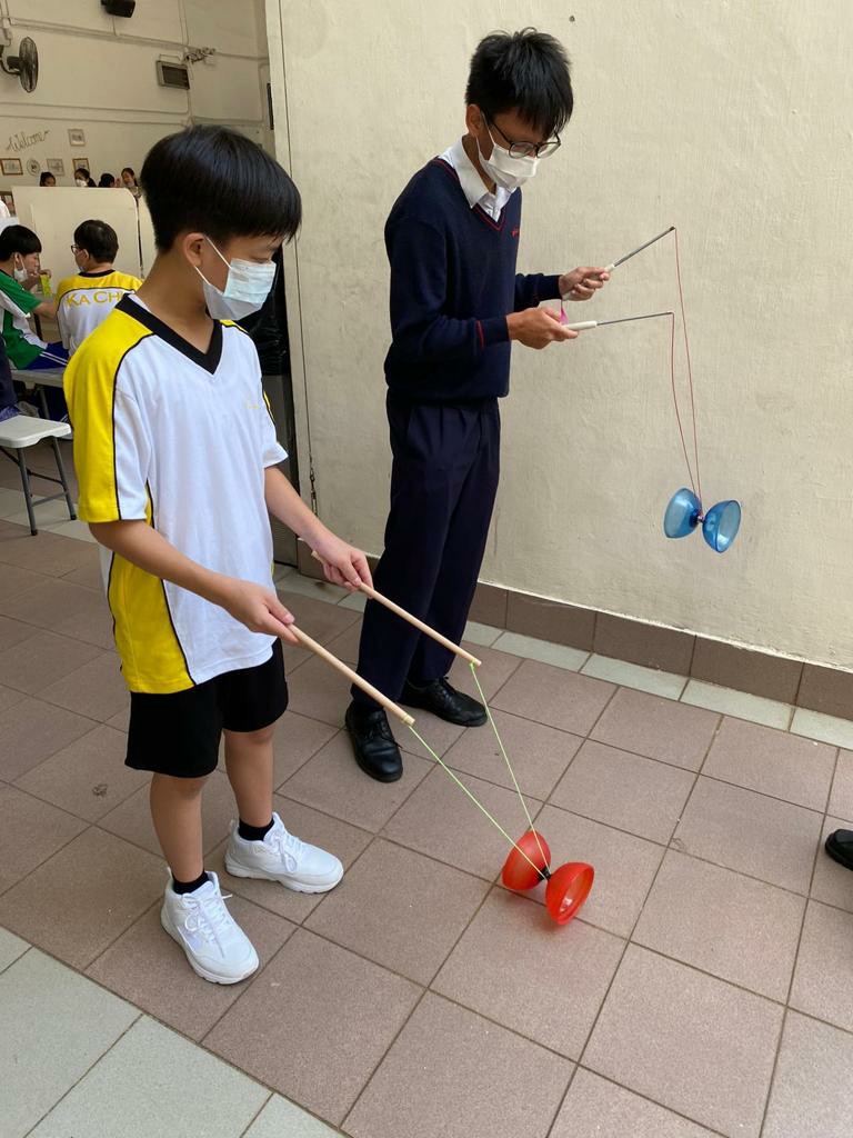 小息鐘聲一響,大批同學蜂擁而上到小食部聚集,為什麼呢?原來輔導組在小息安排了雜耍攤位遊戲,同學只要完成挑戰,就能夠贏得豐富獎品,幾位雜耍大使師兄,無微不至地教導初中同學,幫助他們完成挑戰。兩個小息的時間很快就過去,同學都對活動依依不捨,希望可以再有類似活動,活動在歡樂的氣氛中結束。