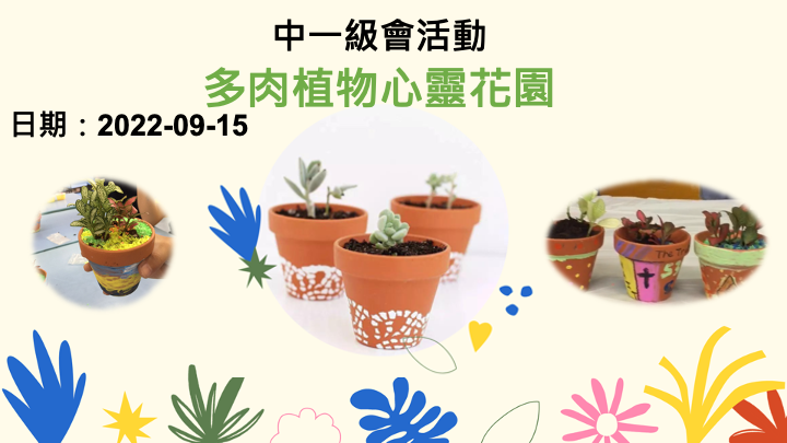 中一級會舉行「多肉植物心靈花園」活動,讓中一同學親手栽種及裝飾多肉植物盆栽,體驗種植樂趣。