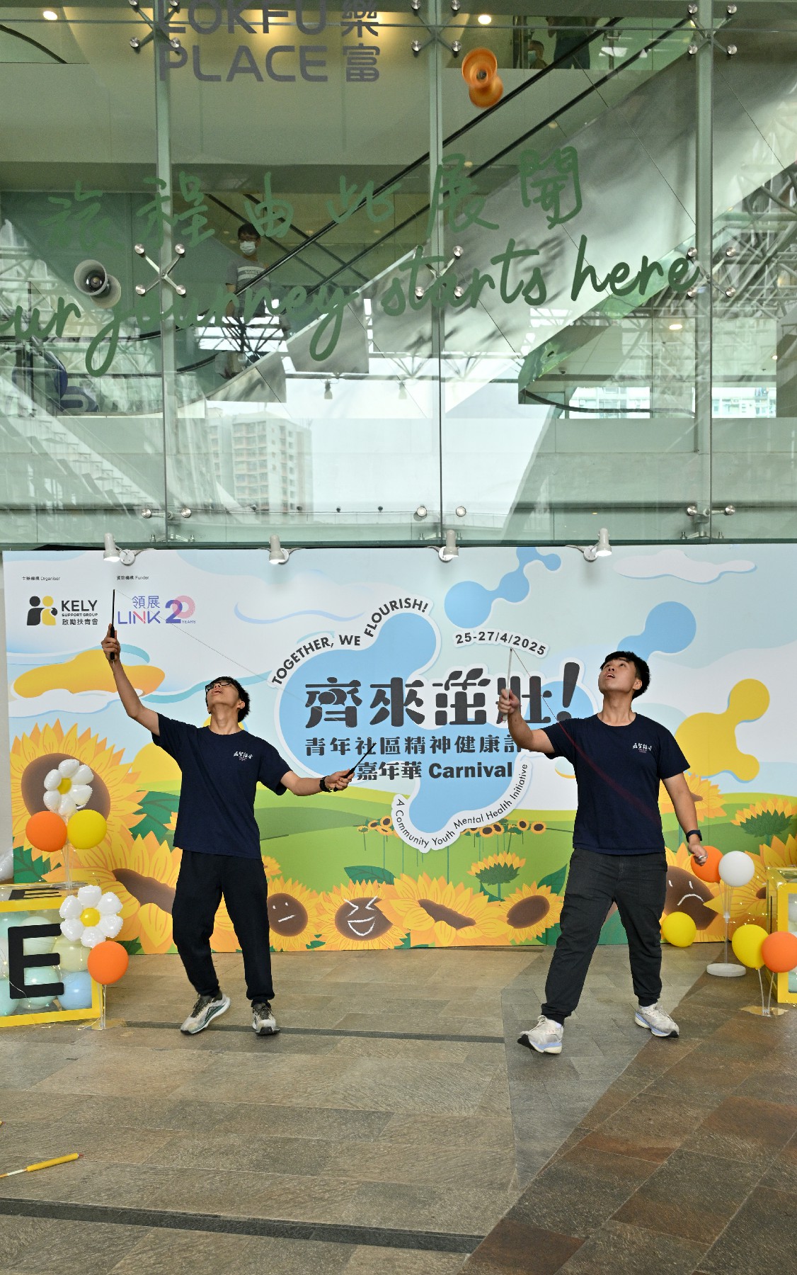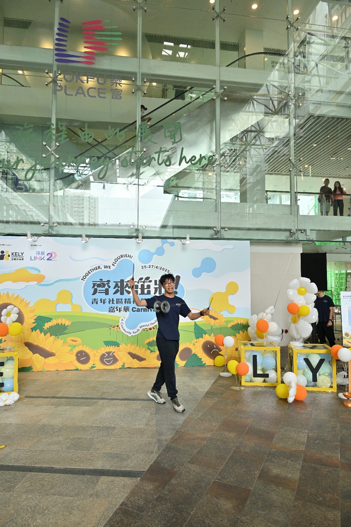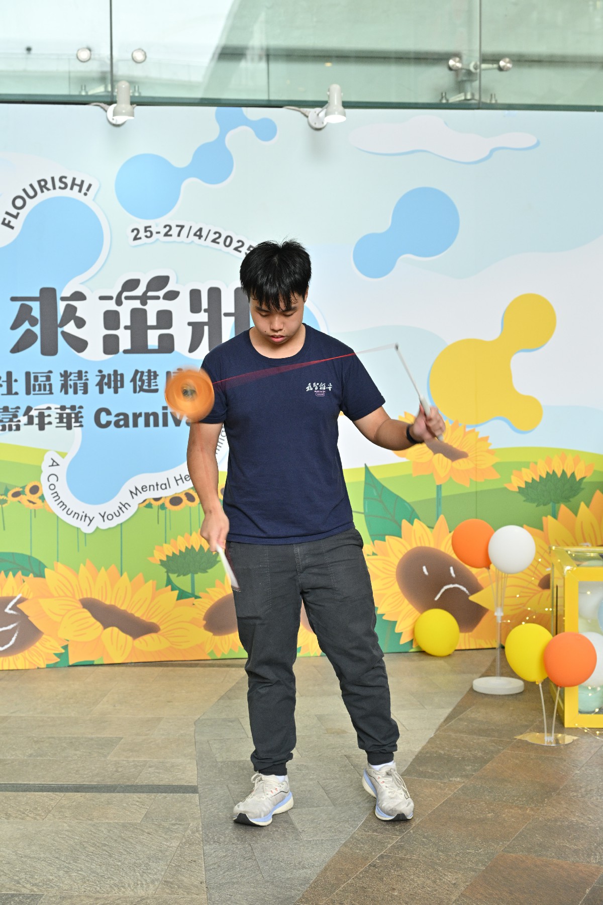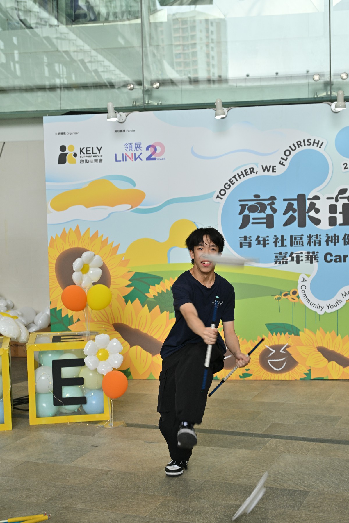 輔導組雜耍隊受啟勵扶青會邀請,為社區人士進行雜耍表演及雜耍體驗攤位,在活動司儀的介紹下,嘉智中學雜耍成員穿著整齊隊服,慢慢步入觀眾眼前,表演中充滿活力和創意,贏得了現場觀眾的熱烈掌聲。