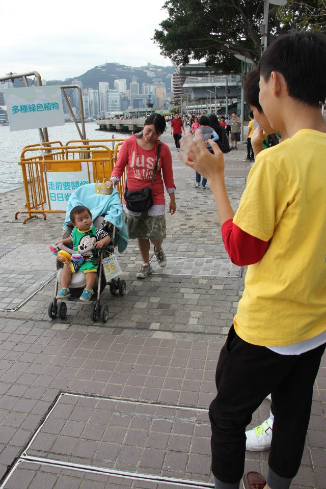 當天早上九時,七百部嬰兒車陸陸續續地齊聚於星光大道,場面十分壯觀。本校義工隊有幸參與這項有意義的活動。活動開始前,各位爸爸媽媽首先進行熱身操,整裝待發。隨著「砰」的一聲槍響,爸爸媽媽們推著嬰兒車往起點出發,女同學們拿著啦啦球,站成兩列為參加者加油打氣。男同學則舉著環保標示語的牌子在終點等候着參加者。大家都玩得開心又投入。