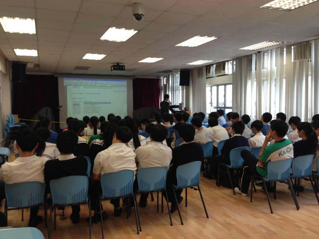 今天,他特意回到母校為中五及中六的理科同學分享他的讀書心得及大學生活。希望本校的理科同學能積極學習,向著大學進發。