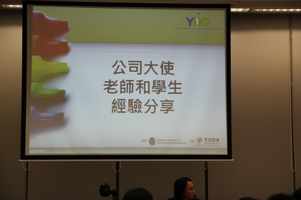 本校參加了2014年度青年企業家發展局的「商校家長計劃」,與第建服公司結連成合作伙伴,派出公司大使蒞臨本校,舉辦六次工作坊,學生表現優異,投入認真,故奪取兩個獎項,分別為「最佳合作商校伙伴」及即場「最佳演繹」,學生被邀請於2014年7月09日在九龍塘教育局作分享介紹該計劃,當日有50多位出席者,包括青年發展局董事、各公司大使及學校老師。當天由中四愛班沙力同學、田新華同學、畢艾美同學、古可恩同學及兩位老師出席分享,簡介商校計劃及分享感受,同學表現鎮定自如,獲得在場嘉賓及老師讚賞。
