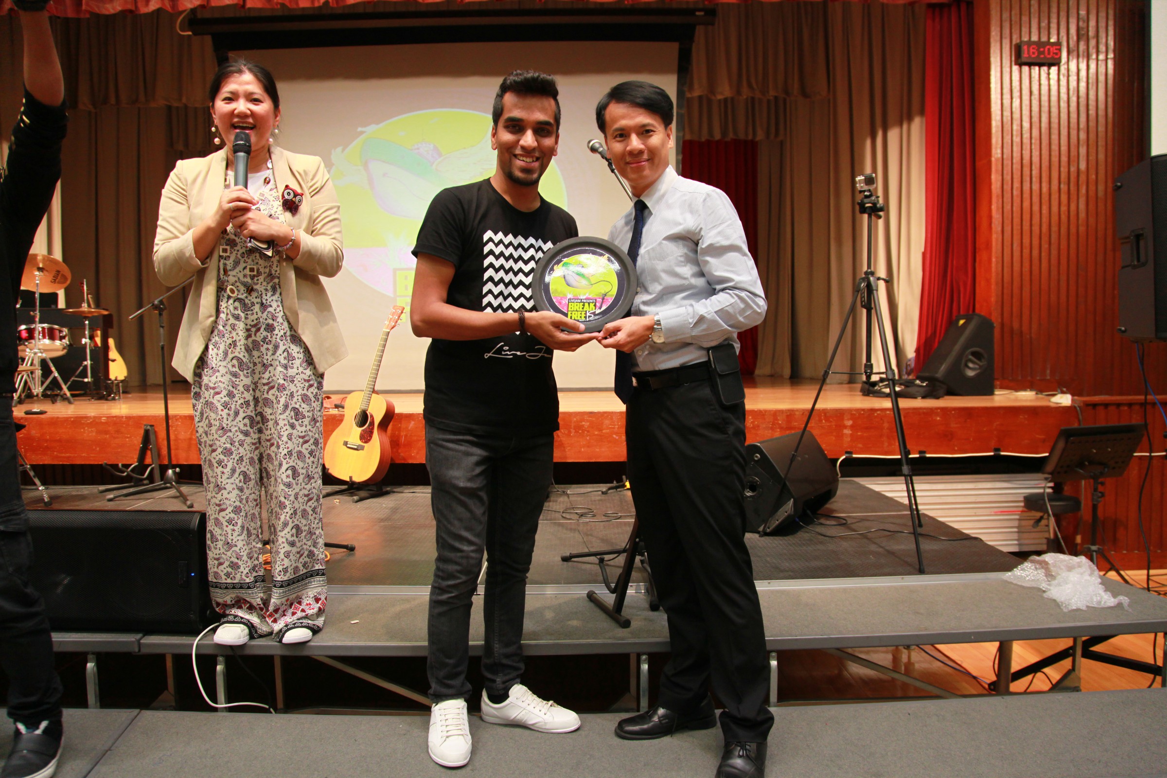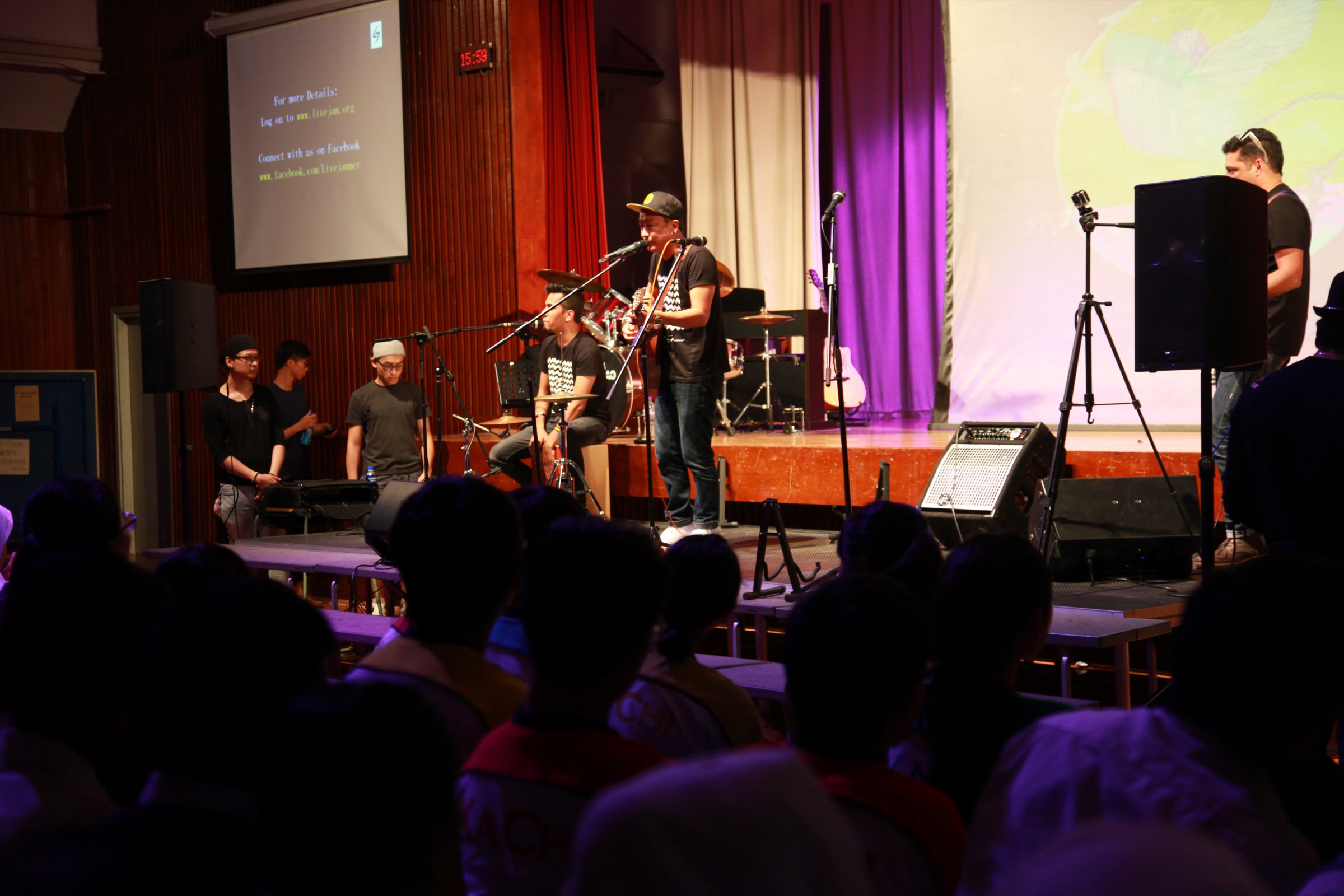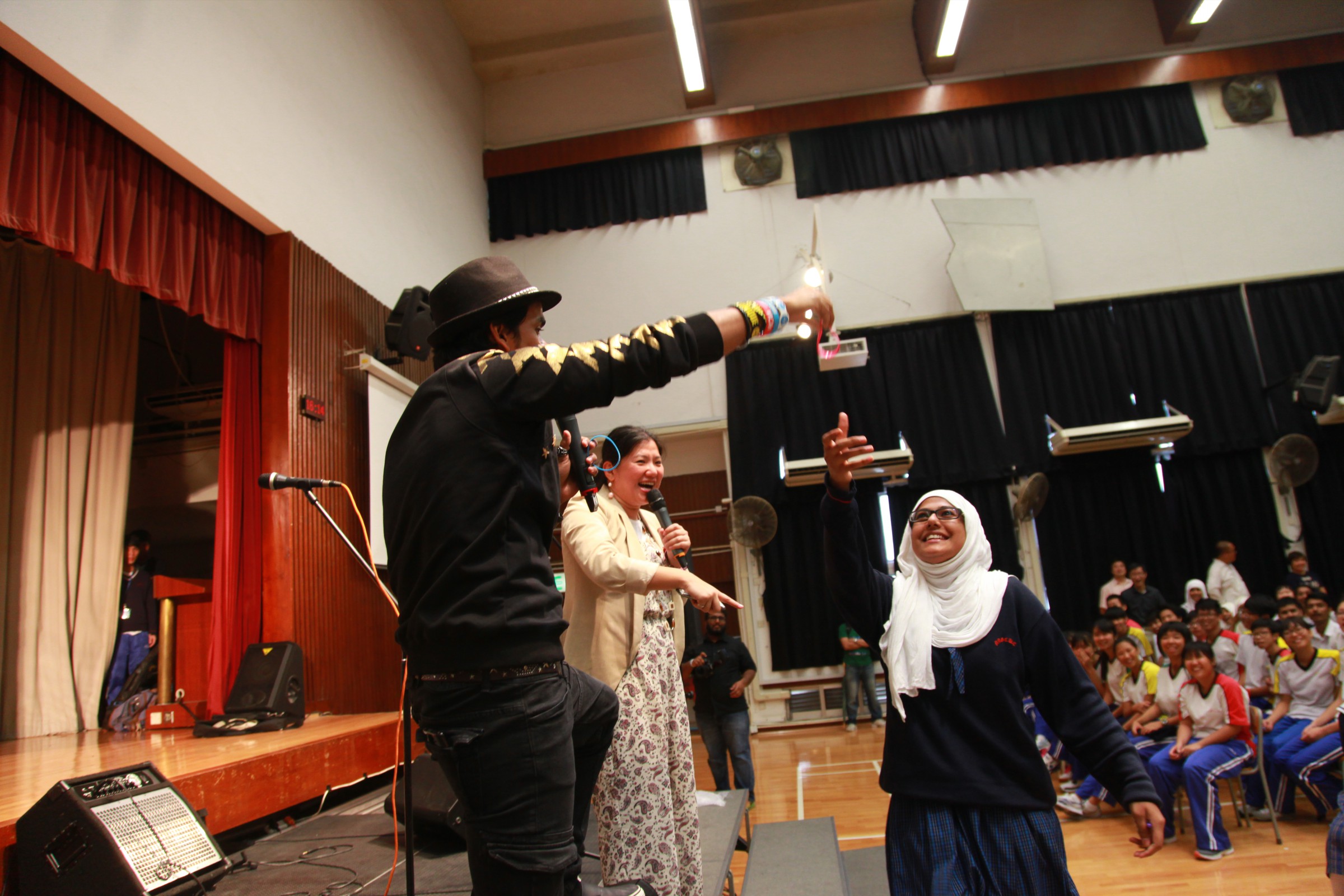 台上的表演者與嘉智的學生打成一片,主音Alobo用他的音樂造詣感染學生,一同在神的恩典下唱歌跳舞。一位弟兄更分享到少時的不快經歷,讓他遇上神,相信神愛他只因「I am who I am」,更鼓勵嘉智的同學多禱告。