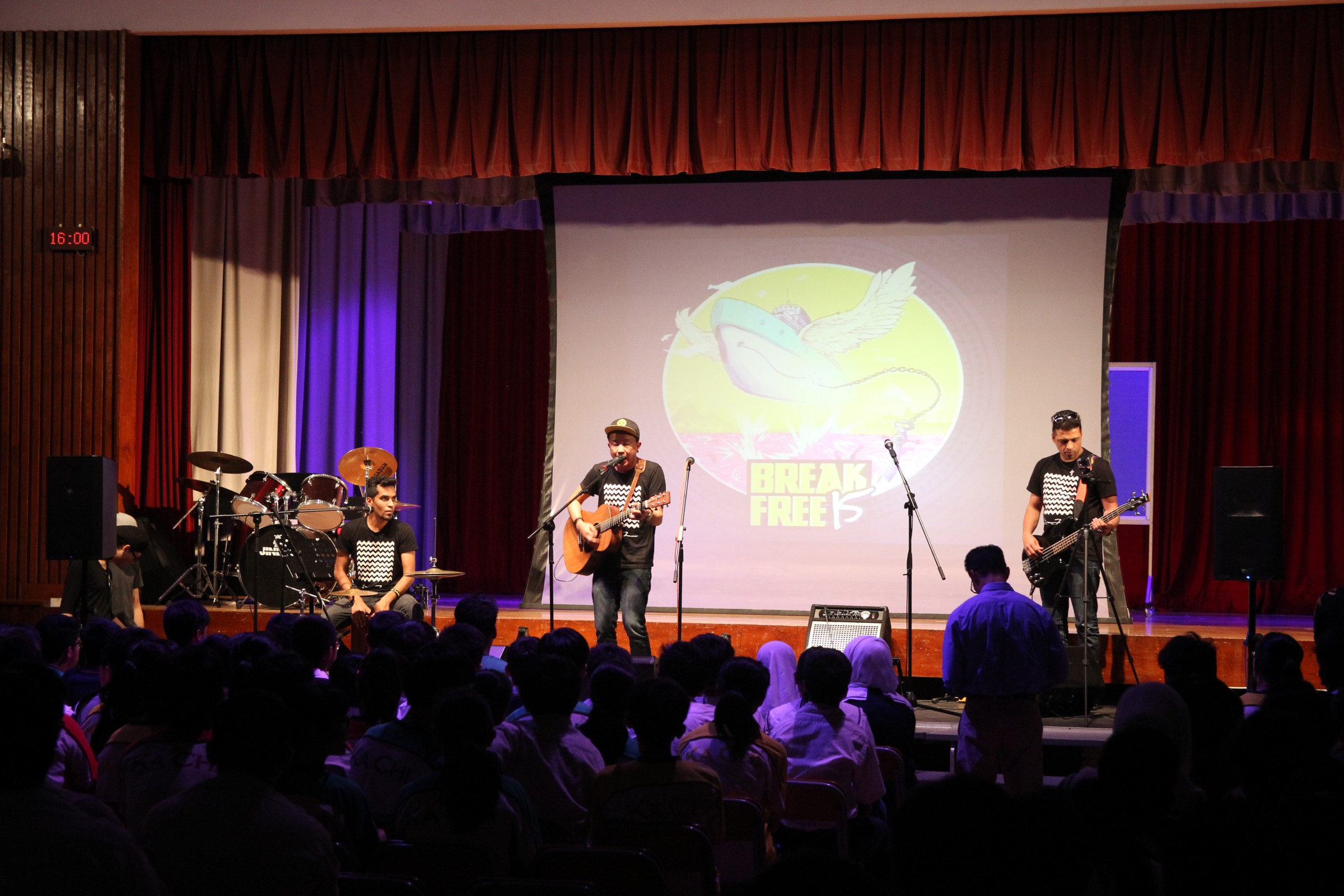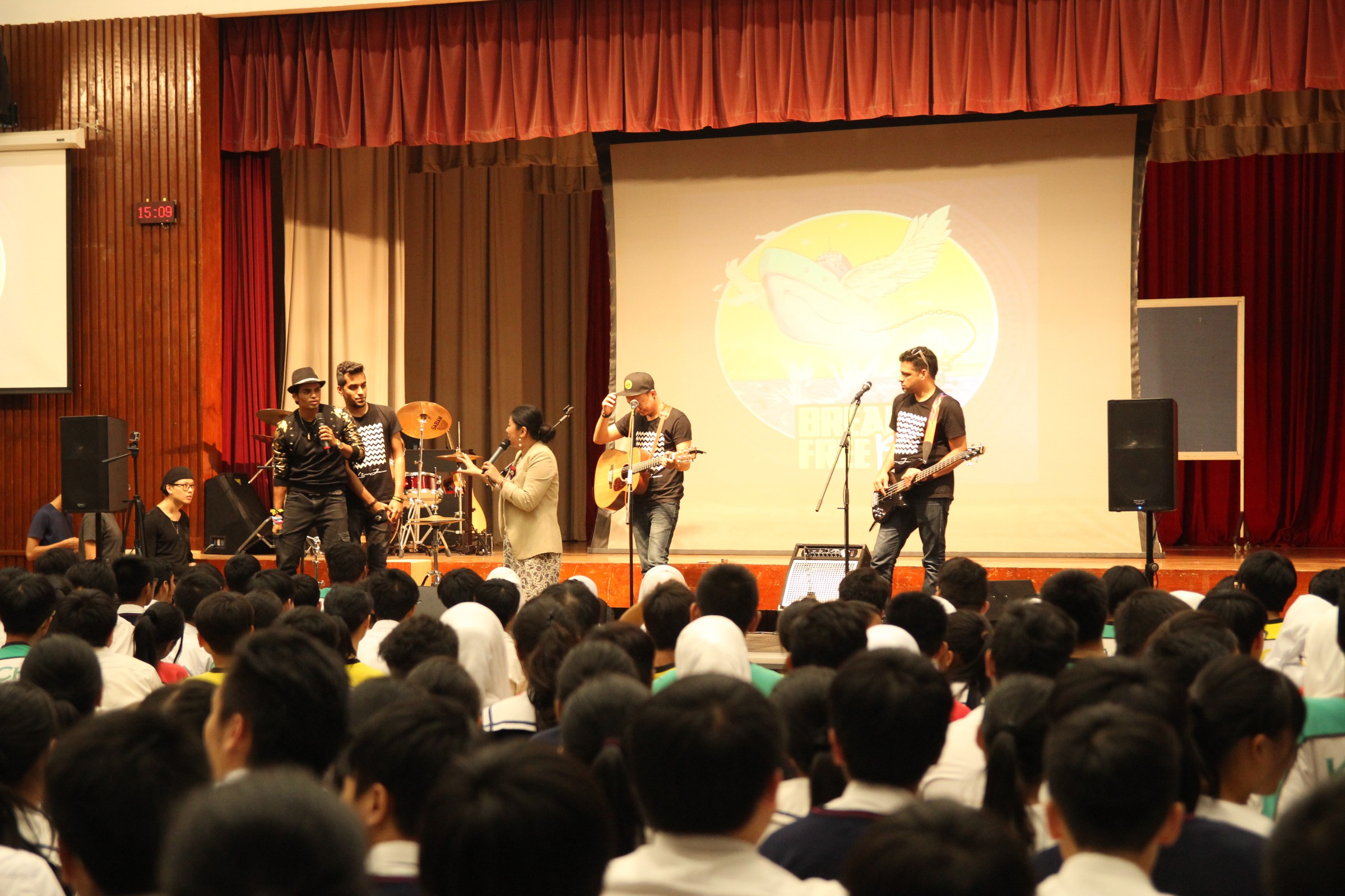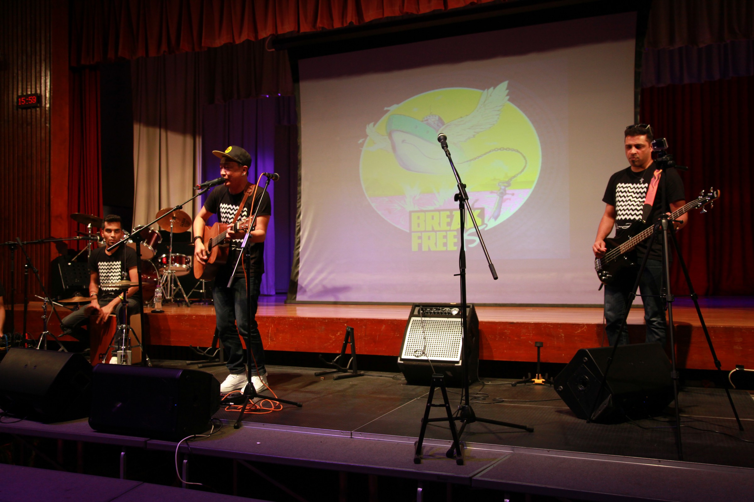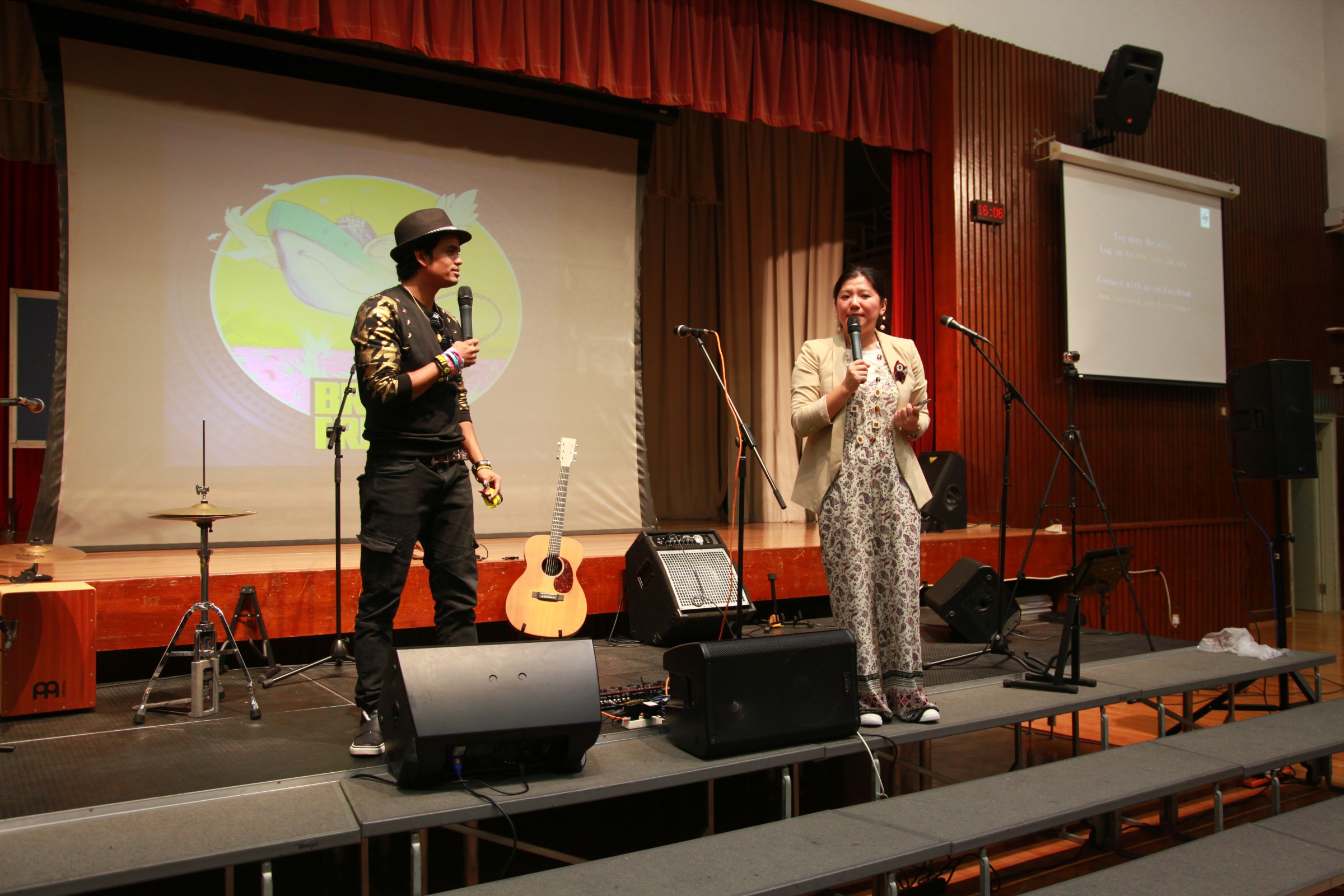台上的表演者與嘉智的學生打成一片,主音Alobo用他的音樂造詣感染學生,一同在神的恩典下唱歌跳舞。一位弟兄更分享到少時的不快經歷,讓他遇上神,相信神愛他只因「I am who I am」,更鼓勵嘉智的同學多禱告。