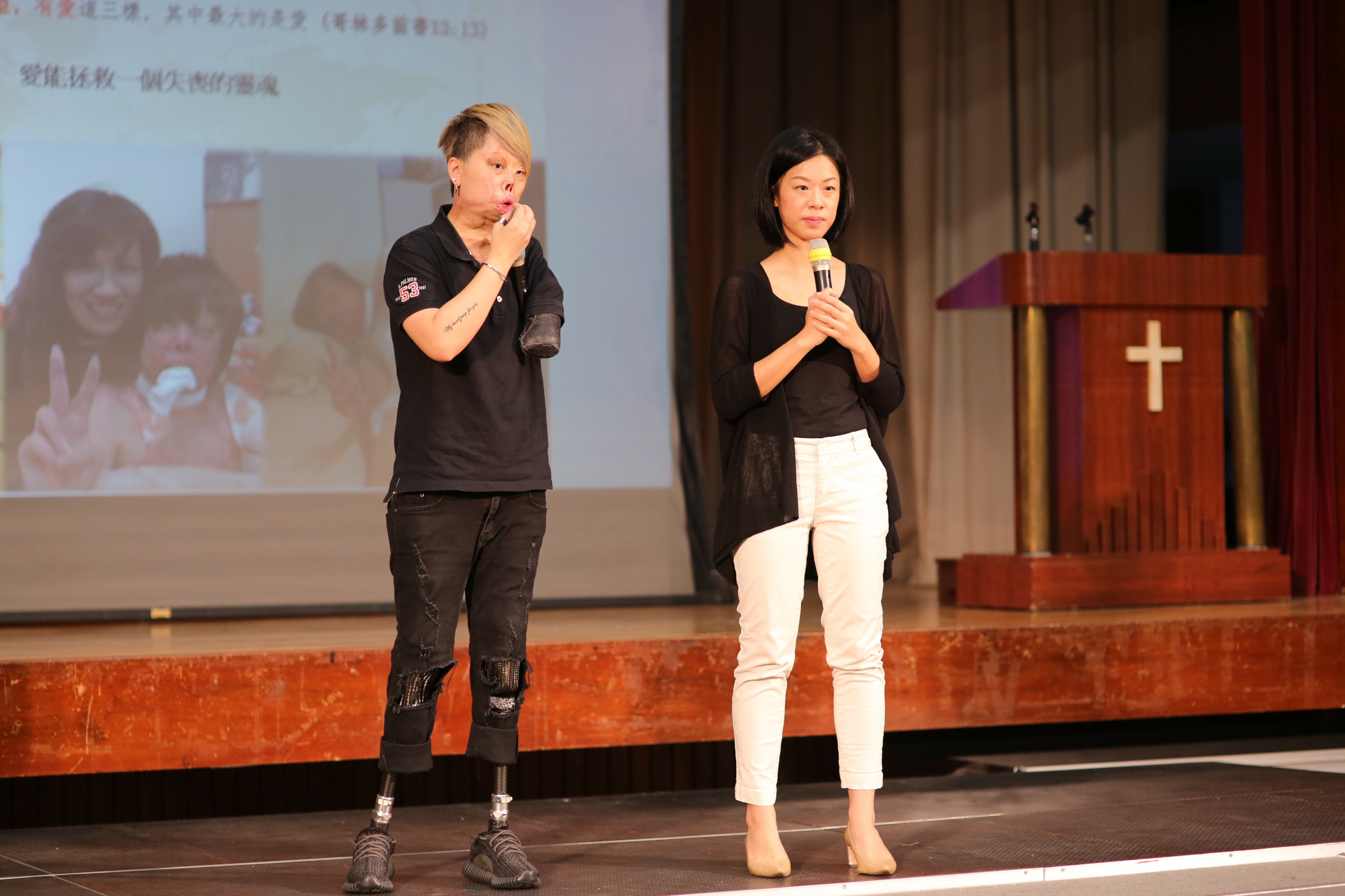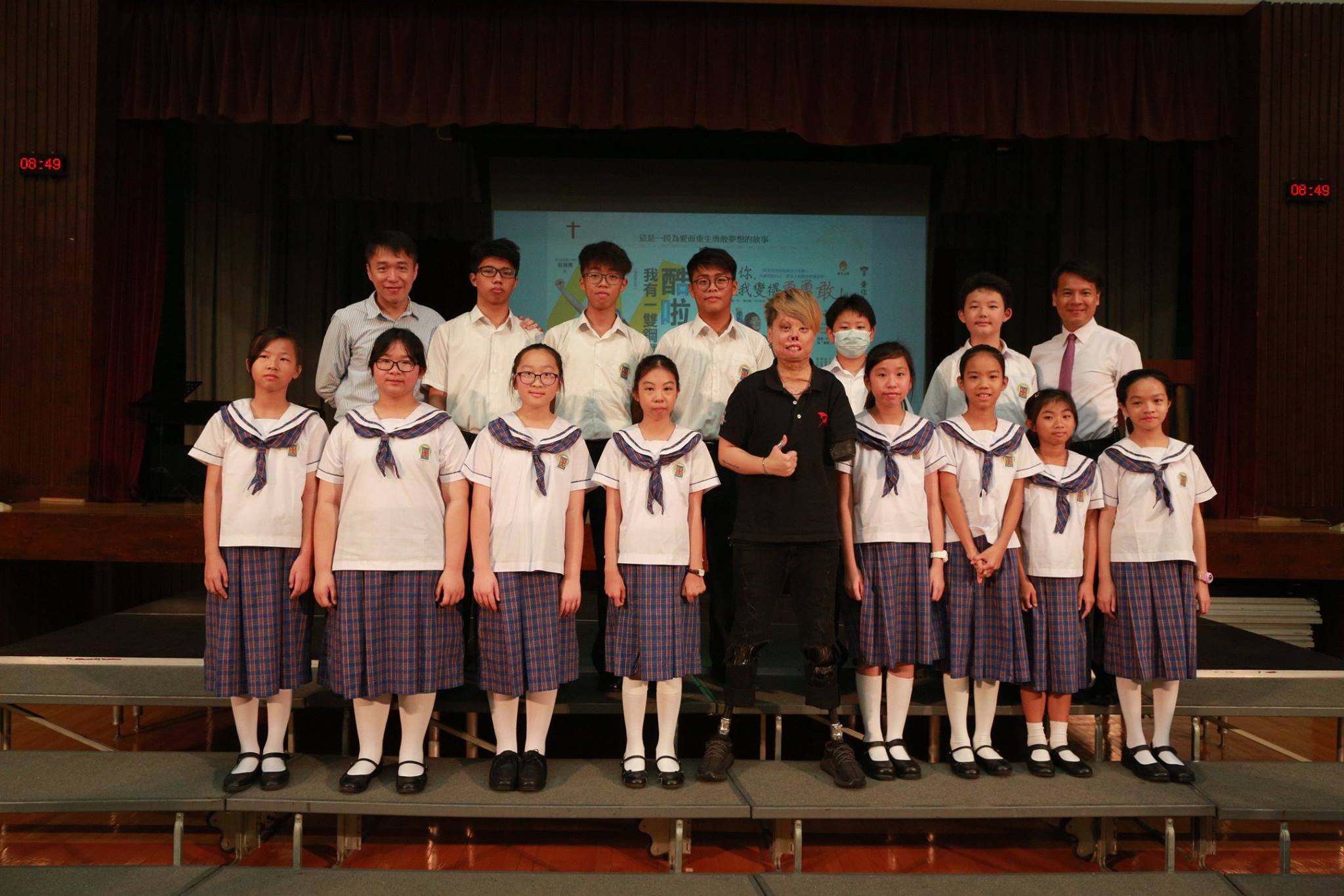 本校在9月24日早上舉行特別週會,特別邀請了台灣少女莊雅菁分享生命見證,雅菁分享自己13歲時在車禍中被火燒了個多小時後,不但毀容,為保命更要切去失去雙腳及左手,變成獨臂少女,她曾不斷尋死,直至三年前發現母親患癌,又相信耶穌基督的慈愛和恩典,明白自己是獨特的及不一樣,以拼豆公仔來賺錢養家,終變得堅強,之後她無懼身體殘障,更登上台灣第二高峰3886公尺的雪山,明白自己可以以生命影響生命,其堅毅精神不單感動很多台灣人,更激勵本校的同學,最後有十多位學生決志信主,感謝主。