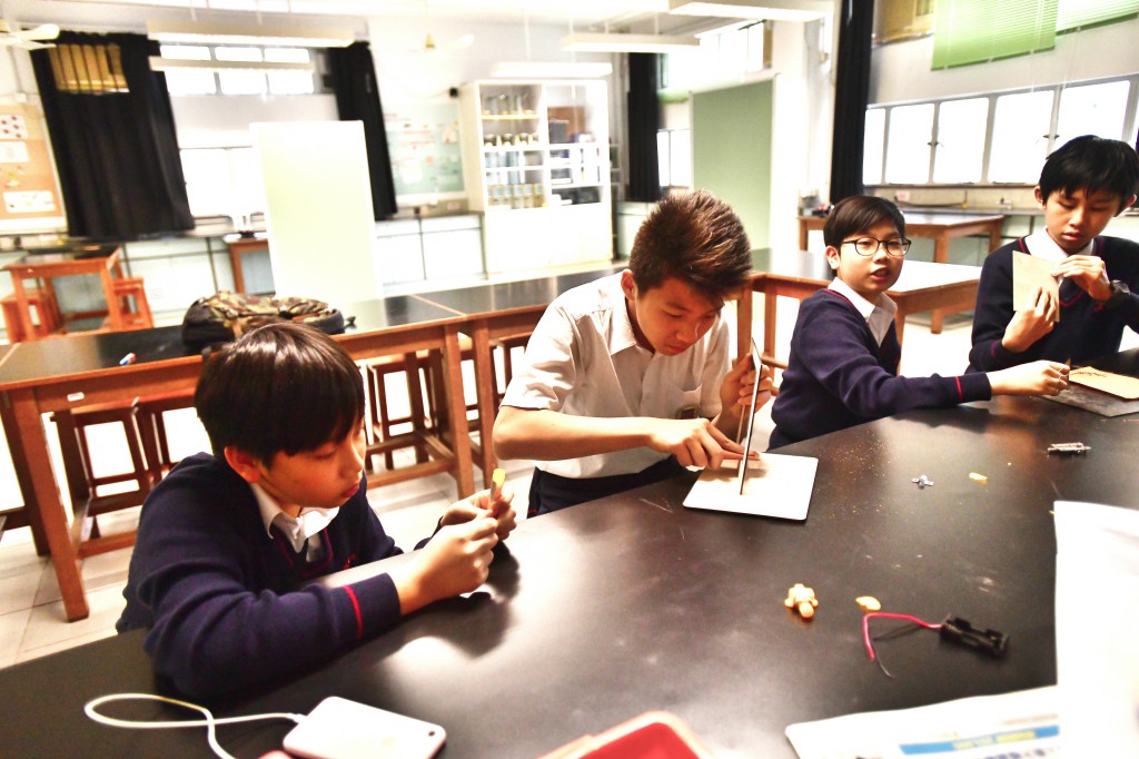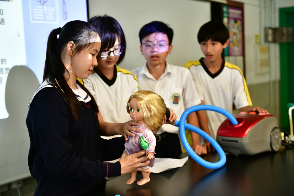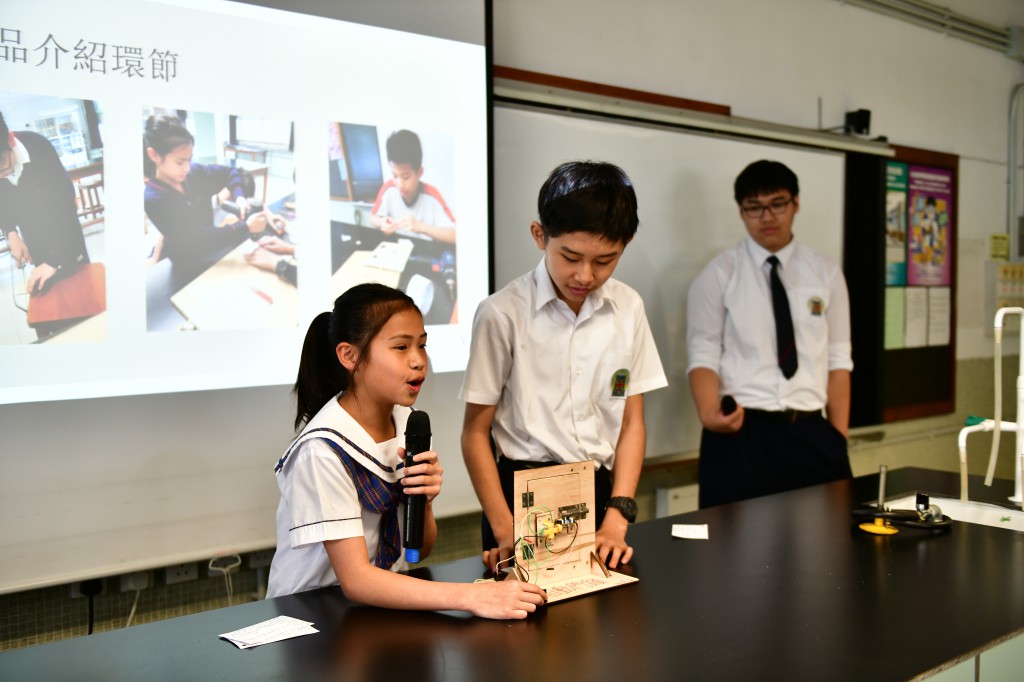 科學領域同工齊心帶領學生製作「科學發明品」,學生透過資料搜集、動手實作、反覆測試產品等學習活動,學生能從中建構相關知識和技能、從多角度思考相關問題,培養創造力及協作能力。
