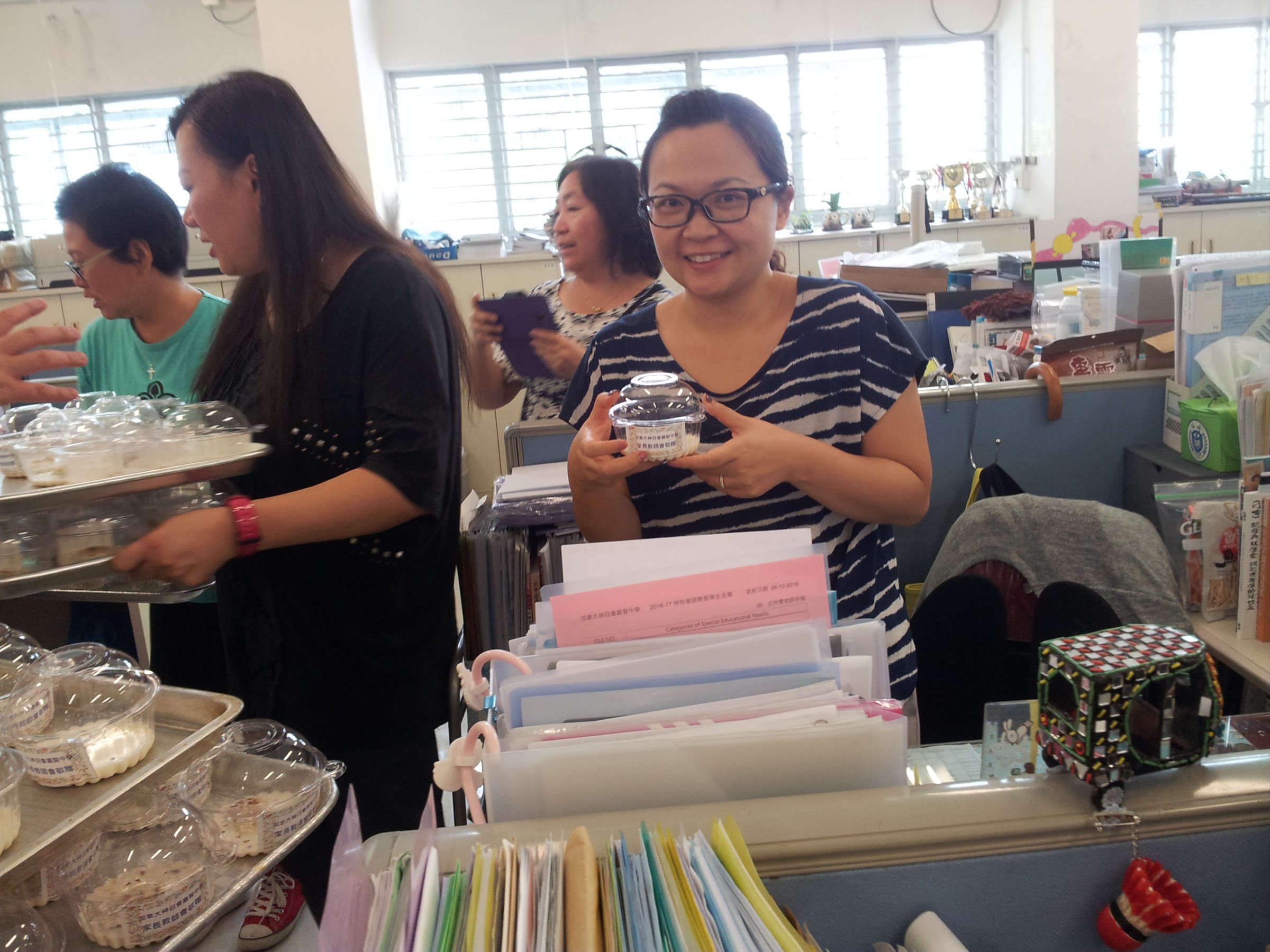 一年一度的敬師日又到了!家長們為表示對教師的敬意,今年度邀請了非華語家長Ms. Asia Farhat教導一班家教會家長義工製作巴基斯坦特色甜點──鮮奶球。義工們製作認真,並且熱情地將製作完成的鮮奶球送到教員室內每一位老師,每位收到小禮物的老師也十分開心和驚喜!雖然禮物小巧,但當中卻充滿著家長對每位老師的愛及關心!真是多謝家長們所付出的時間及愛心,讓我們每位老師及各位家長同心協力為我們的學生努力!