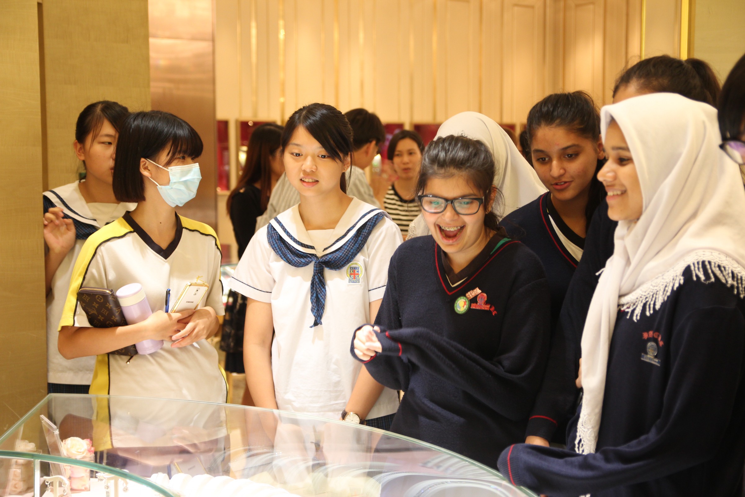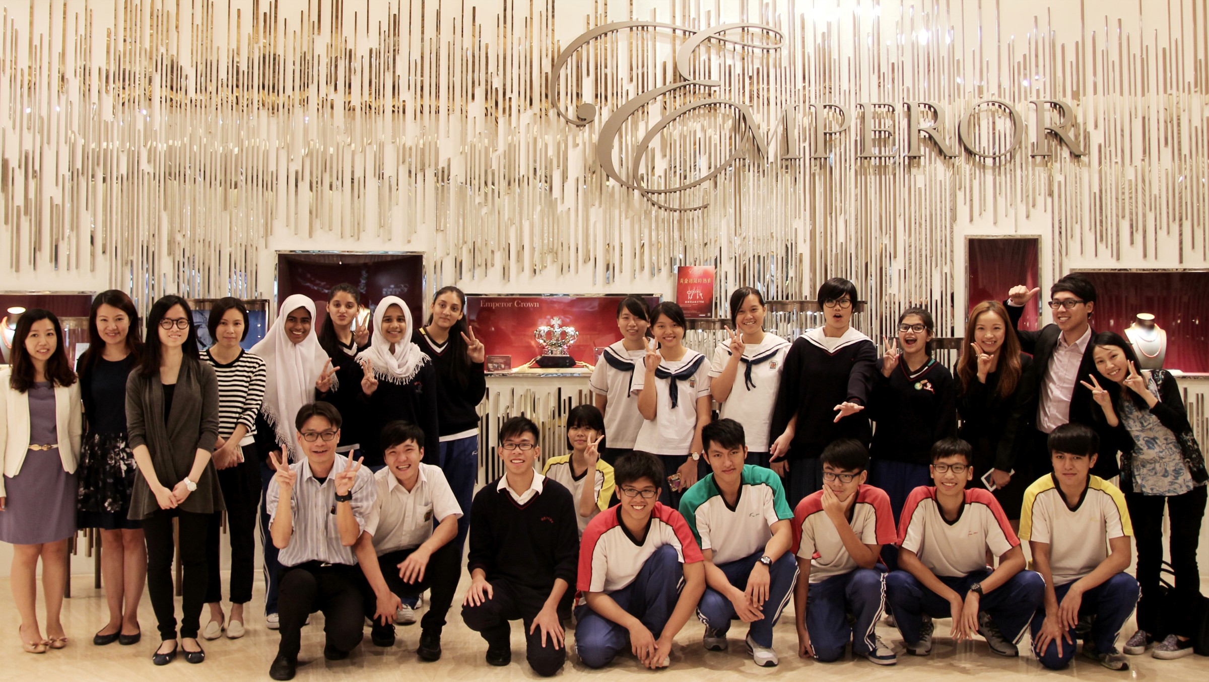 當天由梁嘉麗老師帶領中四級,企業、會計與財務概論選修科17位學生,前往尖沙咀英皇珠寶的旗艦店參觀,由高級巿場及傳播經理劉小姐、經理成小姐及其他同事籌辦和接待,及由WECAN計劃秘書處林小姐及其他同事安排。而英皇珠寶旗艦店位於廣東道2號,建築物前身是1881水警總部,現店鋪還保留了百多年前的防空洞,是香港法定古蹟,極具歷史和保育價值。
